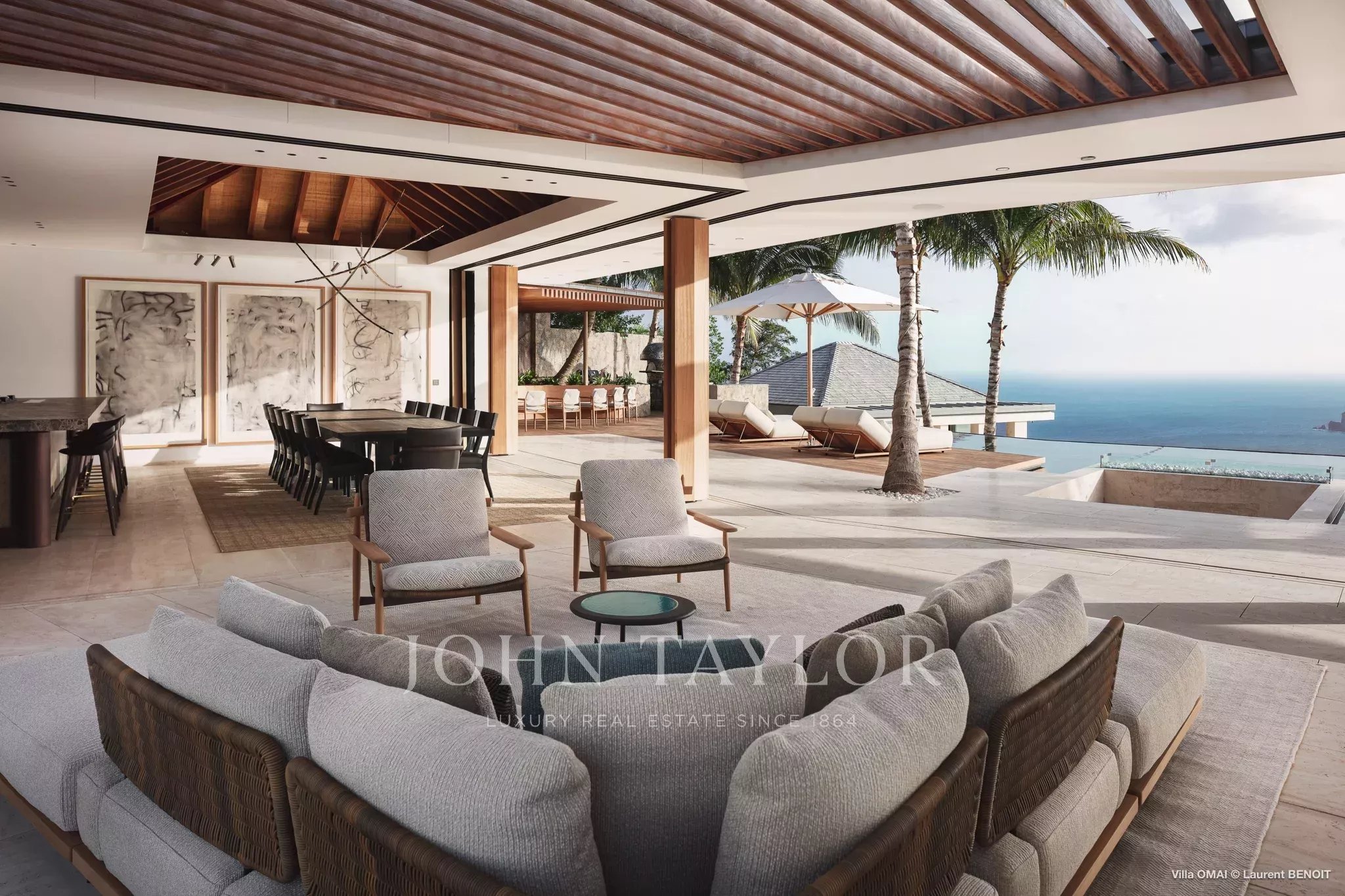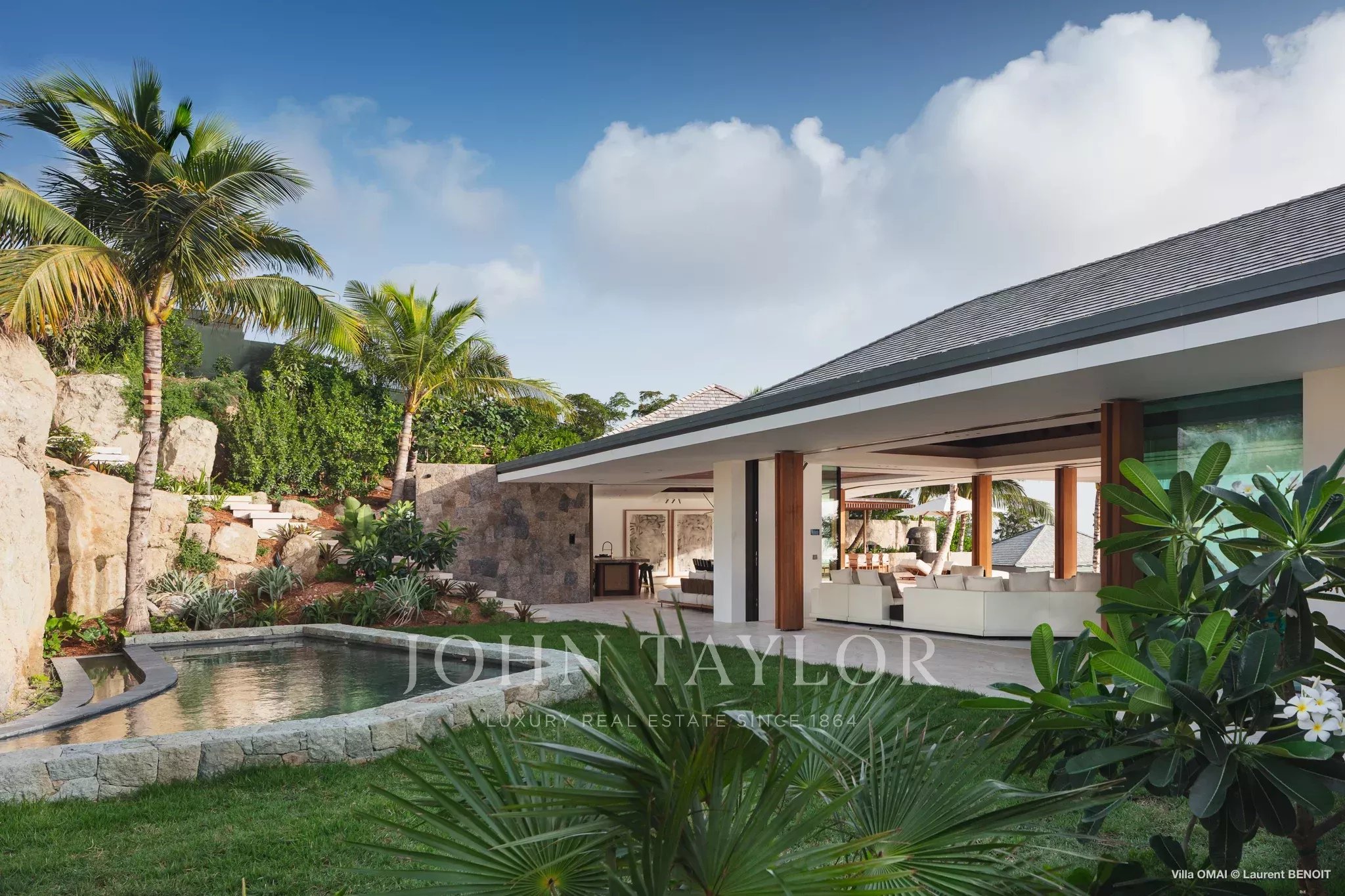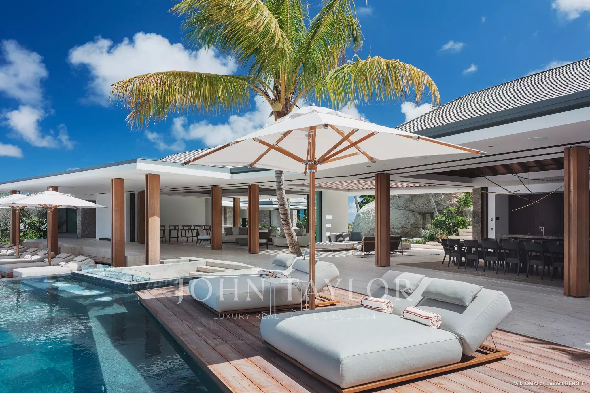 Dominant les eaux cristallines de Colombier, la Villa Omai Zilé est une propriété spectaculaire de six chambres qui incarne l’excellence du luxe contemporain à Saint-Barth. Imaginée en collaboration avec le prestigieux cabinet d’architecture SAOTA, cette demeure d’exception se distingue par ses lignes audacieuses, ses volumes impressionnants et son parfaite intégration dans le paysage naturel de l’île.