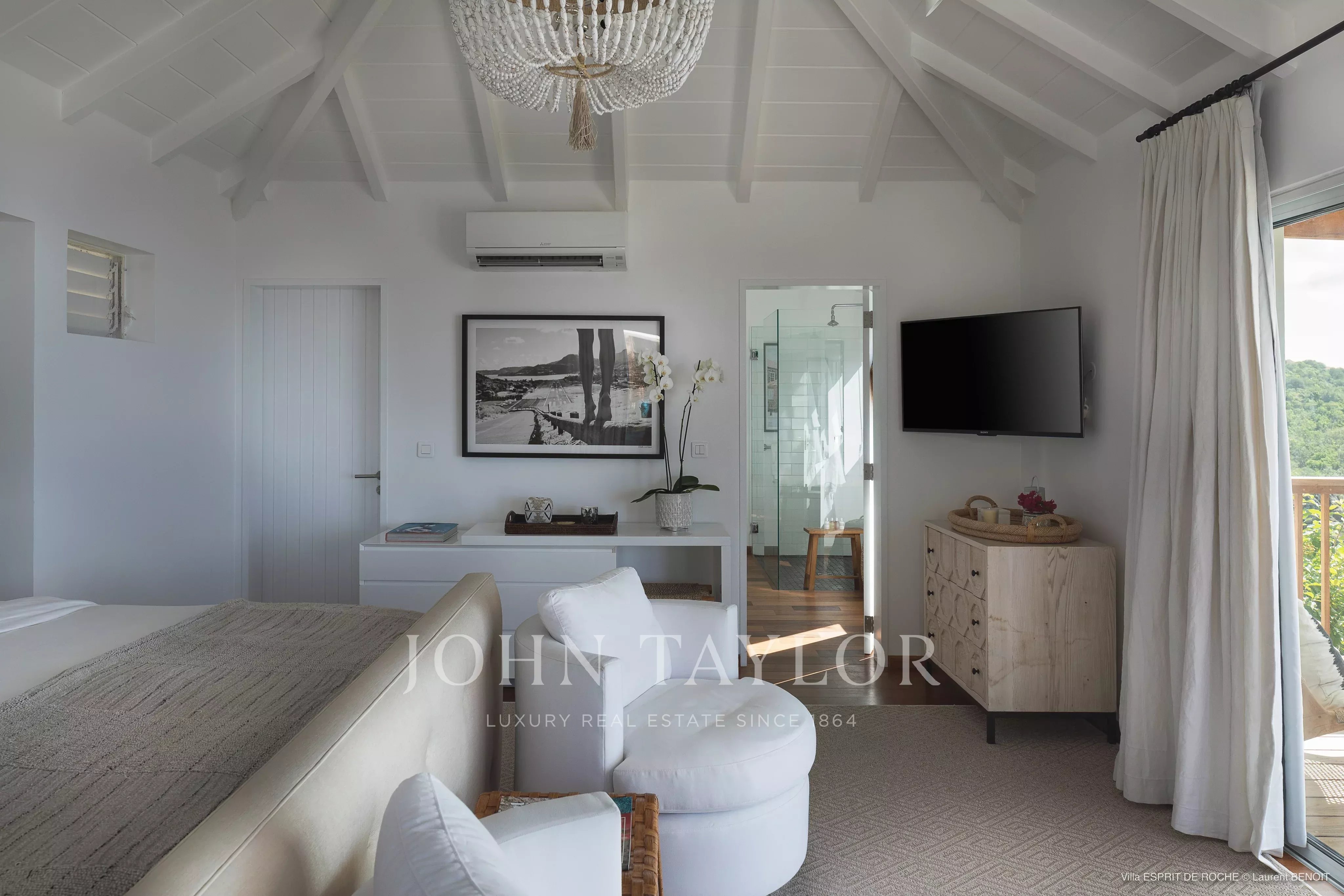 La villa ESPRIT DE ROCHE incarne une élégance rare, perchée à flanc de colline dans le quartier prisé de Colombier. Cette propriété d’exception de trois chambres, dotée d’une piscine, offre un spectacle quotidien inoubliable : des couchers de soleil embrasant l’océan à perte de vue. Nichée au cœur d’une végétation luxuriante typique de Saint-Barthélemy, elle accueille jusqu’à six hôtes en quête d’un séjour confidentiel, alliant raffinement et intimité absolue.