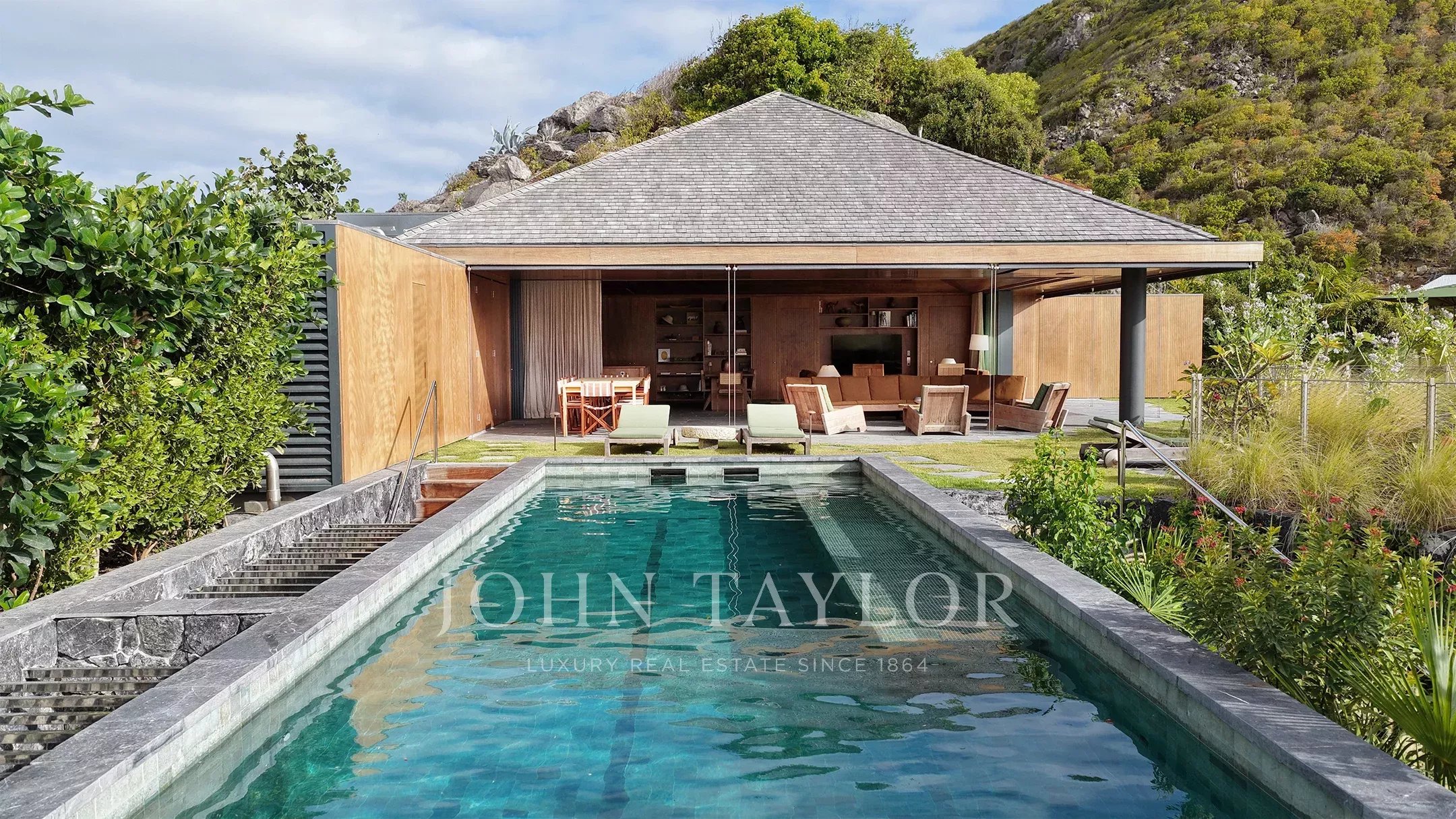 Au-delà de la piscine, le domaine dévoile une succession d’espaces dédiés à la détente : zones ensoleillées, coins ombragés ou promenades à travers les jardins. À quelques pas de Petite Anse et à proximité immédiate de la plage de Flamands, la Villa Jangali incarne une rare alliance de confidentialité, de design et de sérénité.