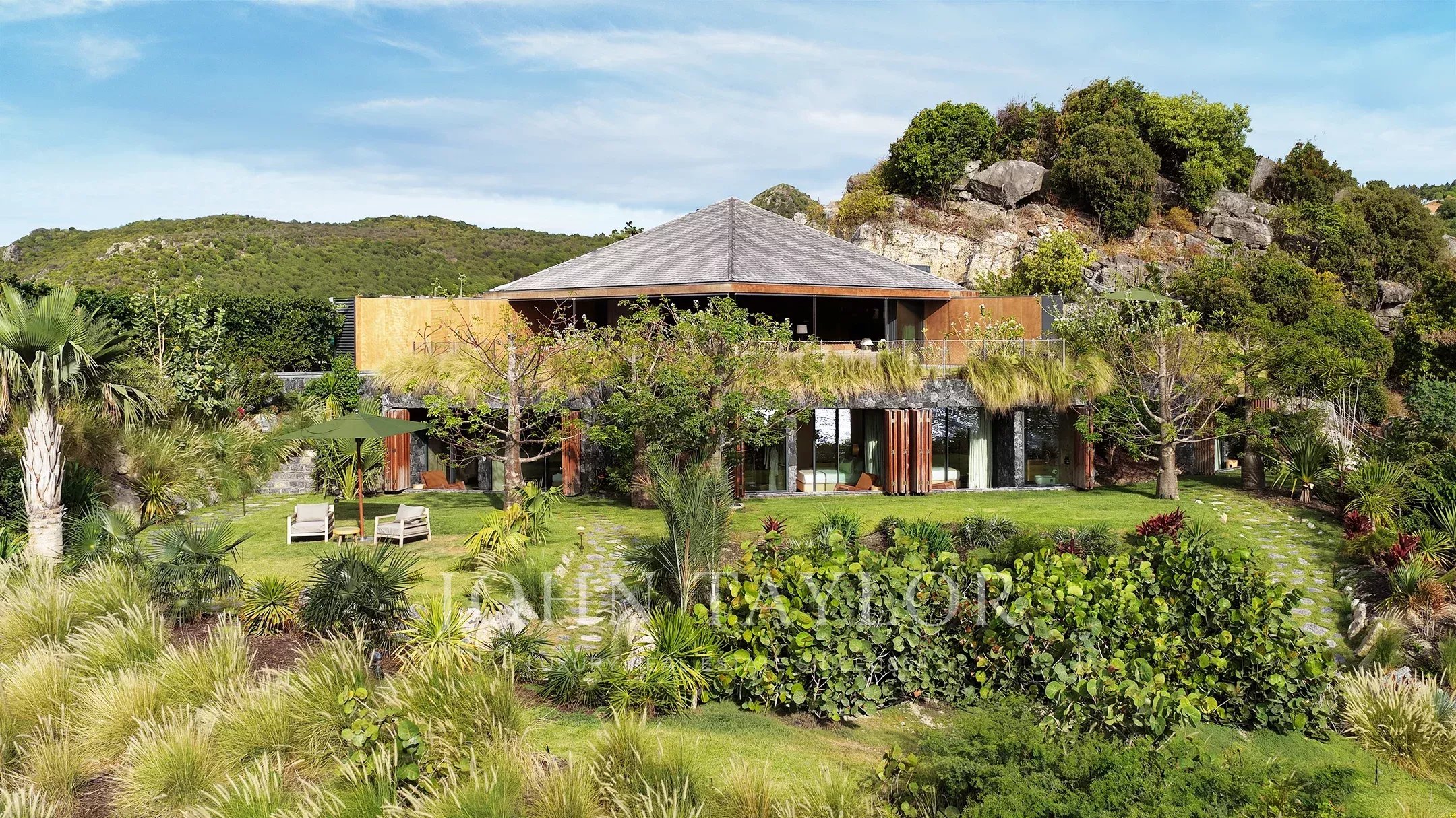 Implantée à l’extrémité de Flamands, face aux eaux paisibles de Petite Anse, la Villa Jangali est une adresse d’exception qui séduit par son architecture maîtrisée et son cadre naturel privilégié. Imaginée par l’architecte brésilien de renom Isay Weinfeld, la propriété s’étend sur un vaste domaine privé et s’intègre avec une grande justesse dans son environnement tropical. Les matières naturelles, les tonalités minérales et le bois créent une atmosphère chaleureuse et sophistiquée, où le luxe s’exprime avec discrétion.