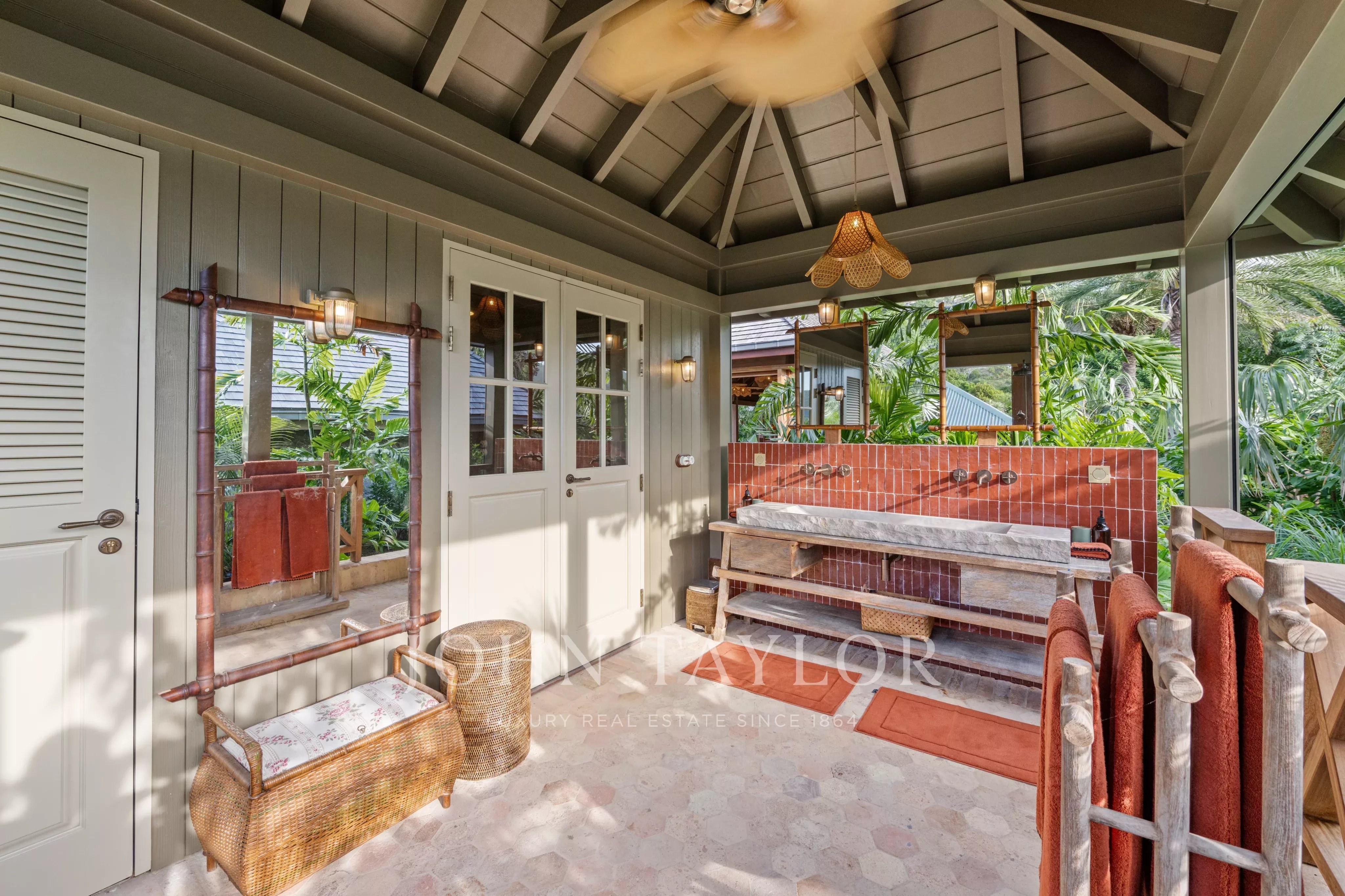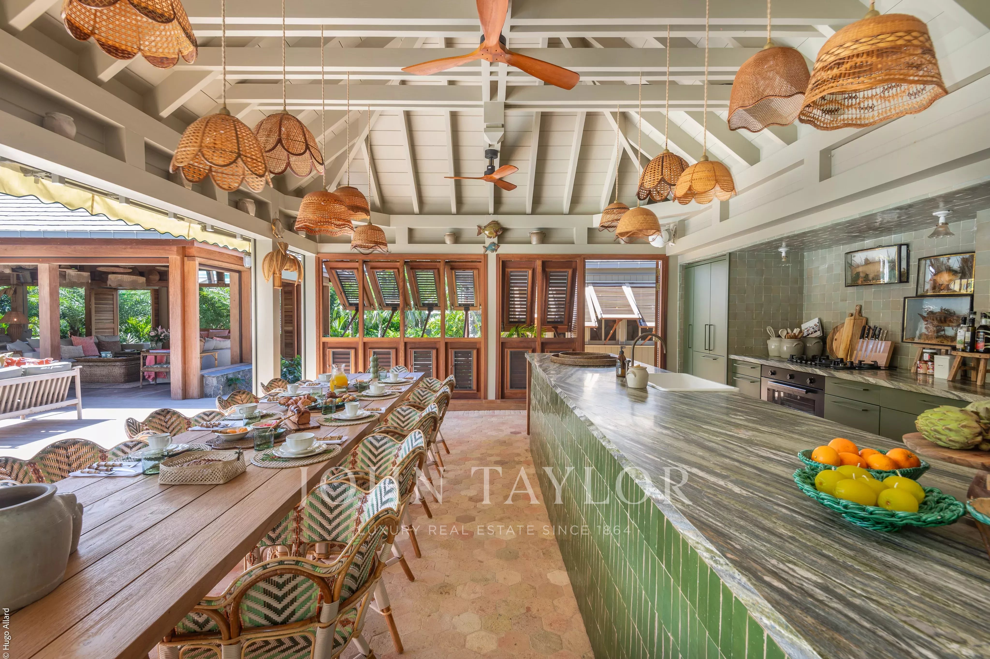 Récemment construite, la propriété revisite avec élégance l’architecture traditionnelle de Saint-Barthélemy. Les hauts plafonds en bois, les persiennes ajourées et l’organisation en bungalows indépendants créent un ensemble harmonieux, alliant authenticité locale et confort contemporain.