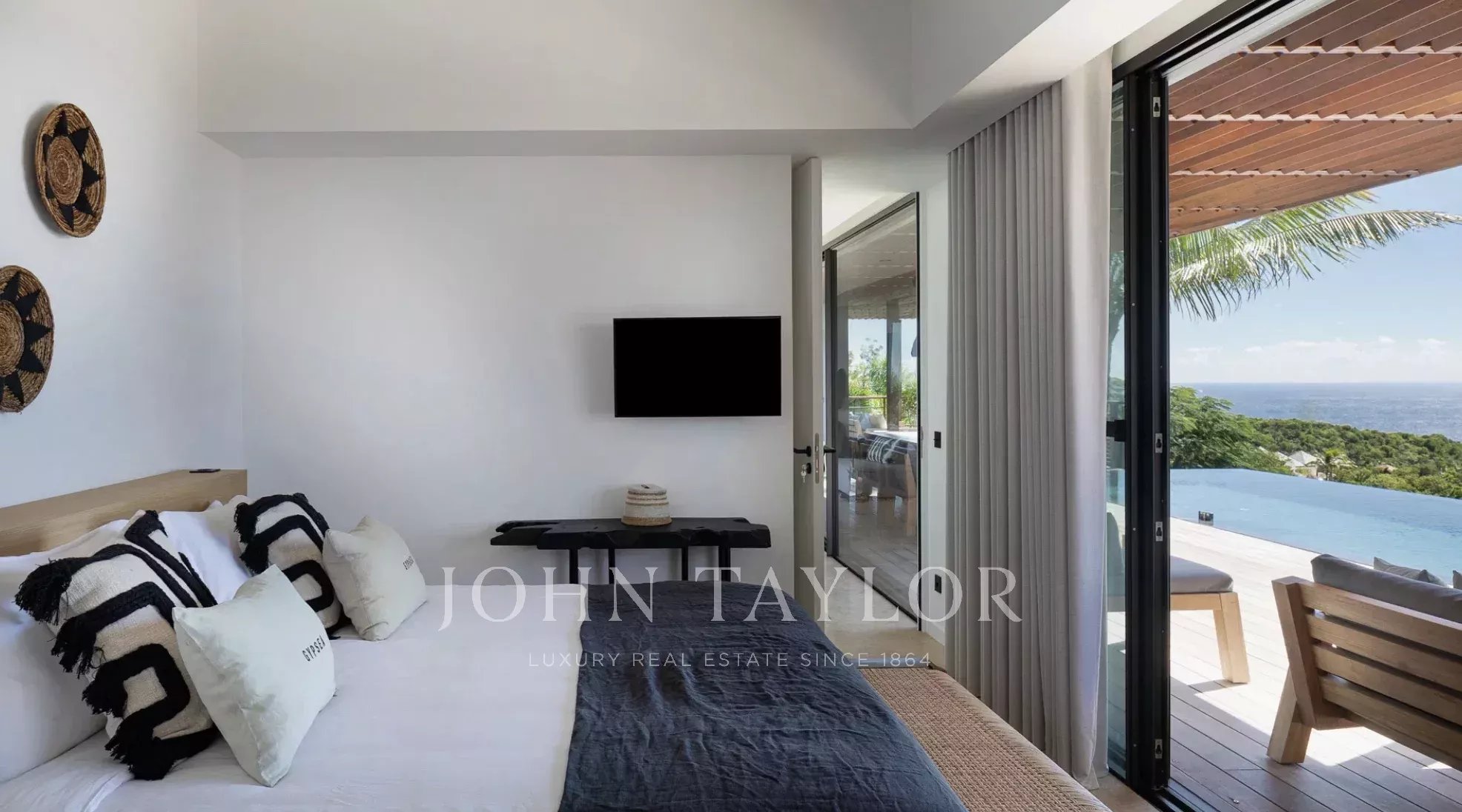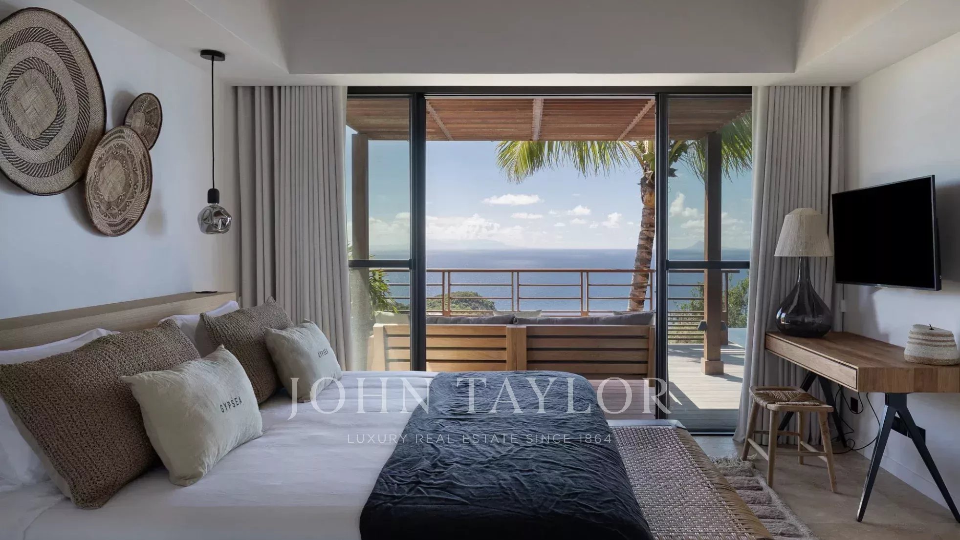 La Villa GYPSEA dispose de quatre suites climatisées, chacune avec un lit king-size, une salle de bains attenante et une vue imprenable sur l’océan ou les jardins tropicaux. Deux chambres se situent au niveau principal, une troisième au niveau inférieur, tandis que la quatrième occupe un pavillon indépendant pour davantage d’intimité. Cette suite indépendante comprend une kitchenette ainsi que sa propre piscine privative, nichée au cœur d’une végétation luxuriante. Décorées dans des nuances de taupe apaisantes et des textures élégantes, toutes les chambres s’ouvrent sur les terrasses, invitant les hôtes à savourer pleinement la sérénité et le doux rythme des Caraïbes.