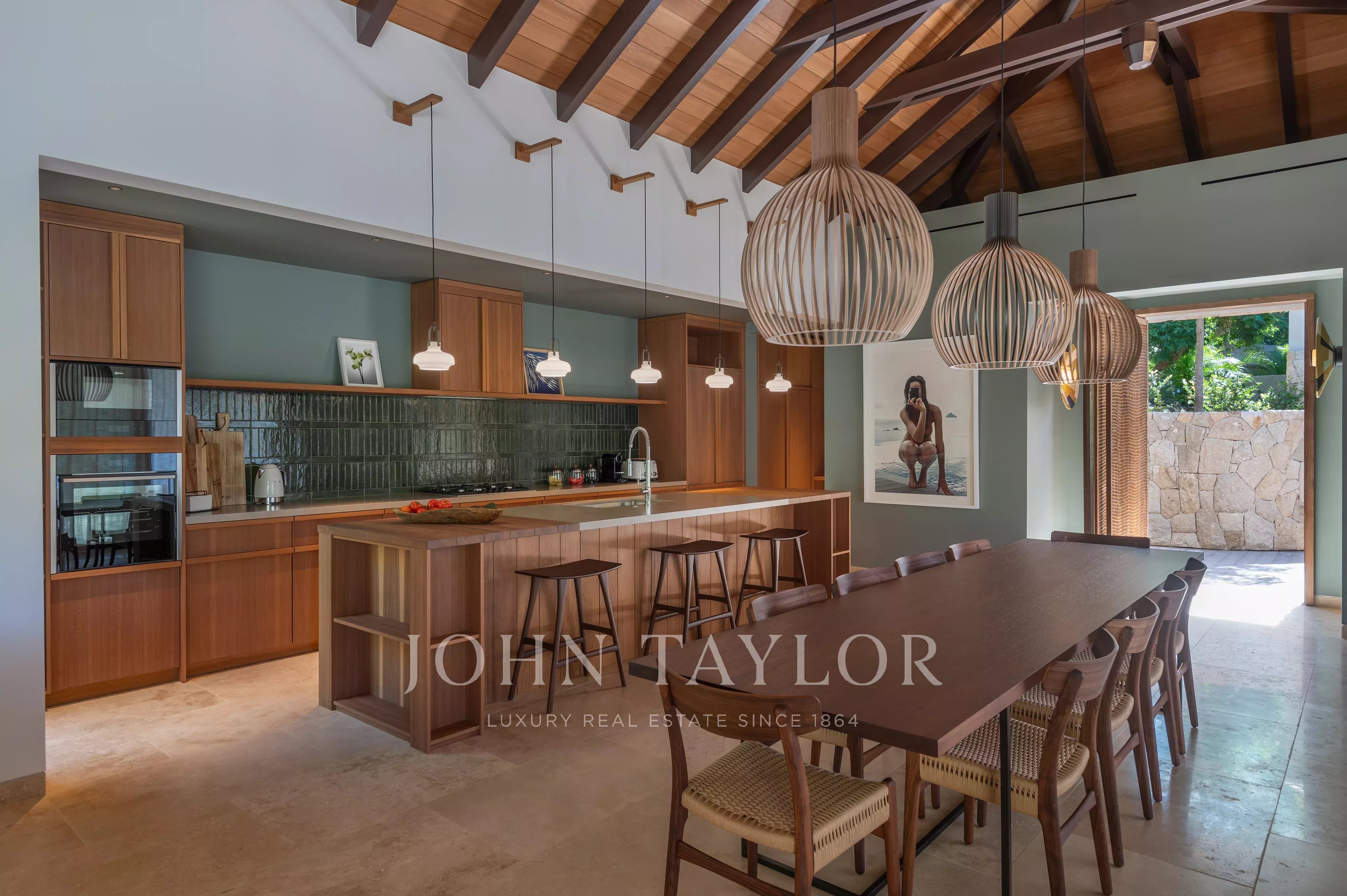 Depuis la terrasse, la vue est tout simplement spectaculaire : la mer turquoise s’étend jusqu’à l’horizon. Un chemin privé mène à l’accès exclusif à la plage de la villa, où les eaux calmes invitent à la détente. La piscine chauffée à débordement semble se fondre dans l’océan, tandis que les transats ombragés, la pergola aménagée avec des assises confortables et l’espace repas en plein air offrent un cadre parfait pour des après-midis paisibles et des dîners sous les étoiles face à la mer.