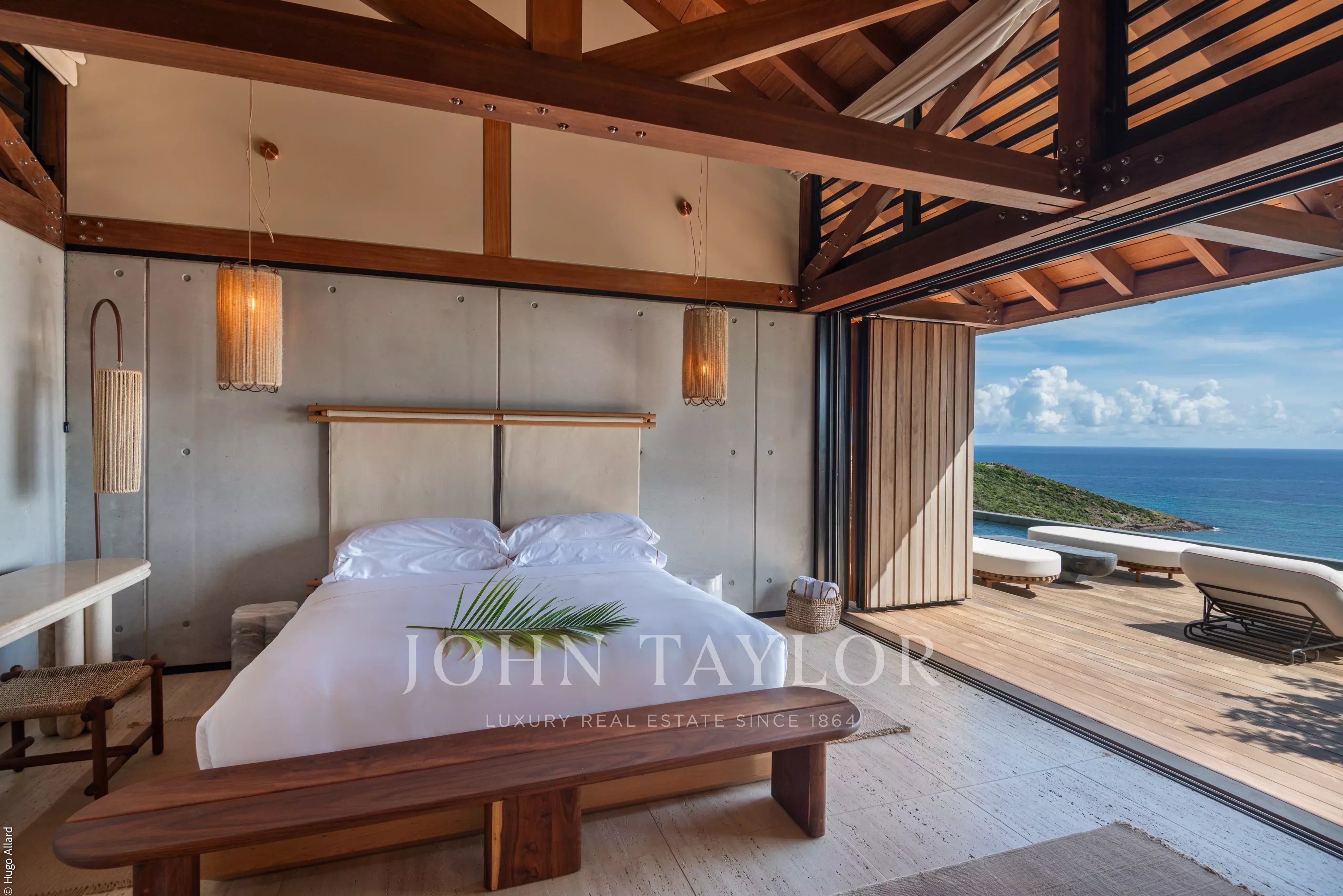Le Manoir Voltaire dispose de neuf chambres avec salles de bains attenantes, réparties entre les deux niveaux. Sept d’entre elles bénéficient de terrasses privées et d’une vue imprenable sur l’océan, dont une avec baignoire extérieure. Deux chambres supplémentaires, situées au niveau inférieur de la partie haute, sont parfaitement adaptées pour le personnel ou les enfants, avec notamment un espace équipé de lits superposés pouvant accueillir jusqu’à six enfants.