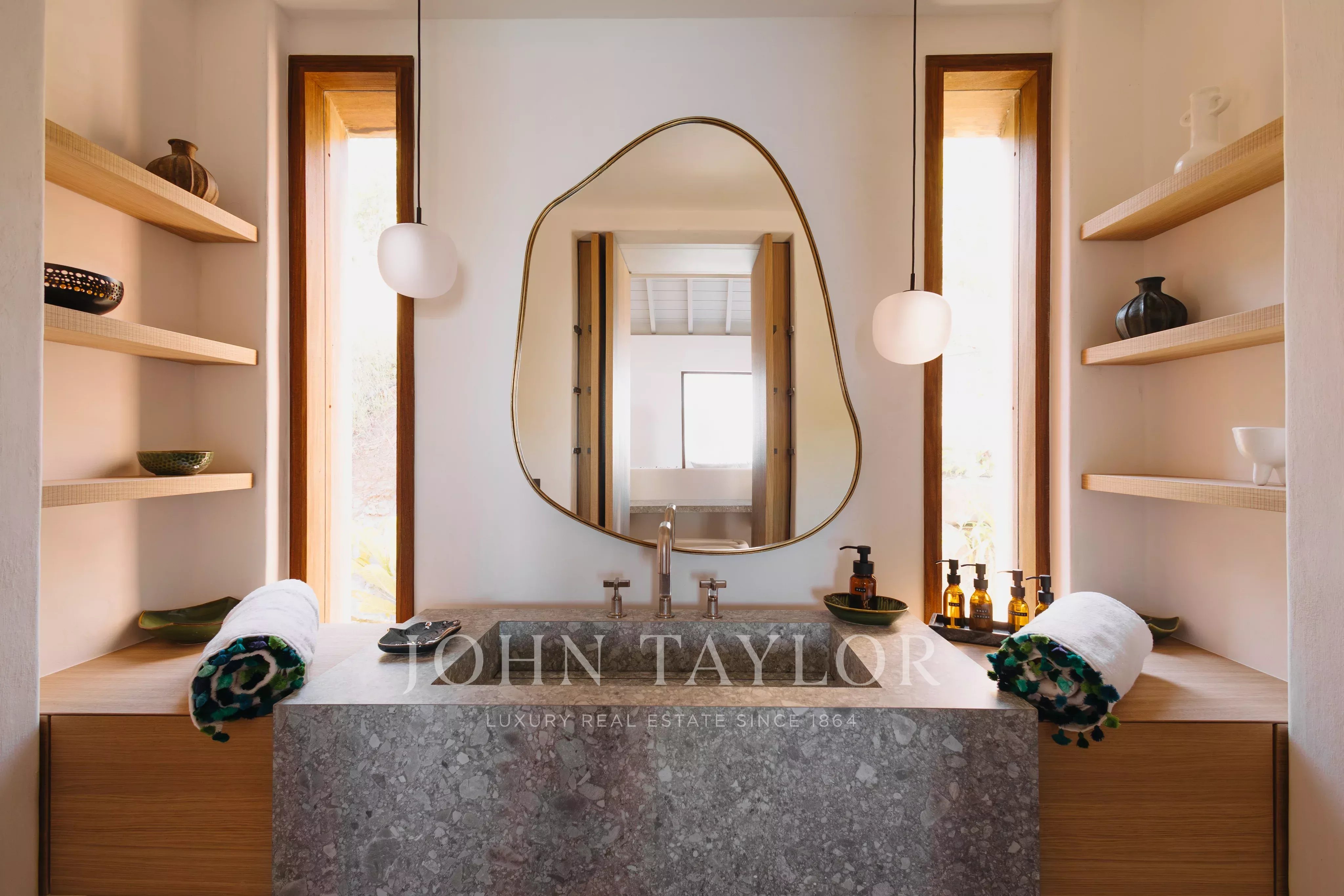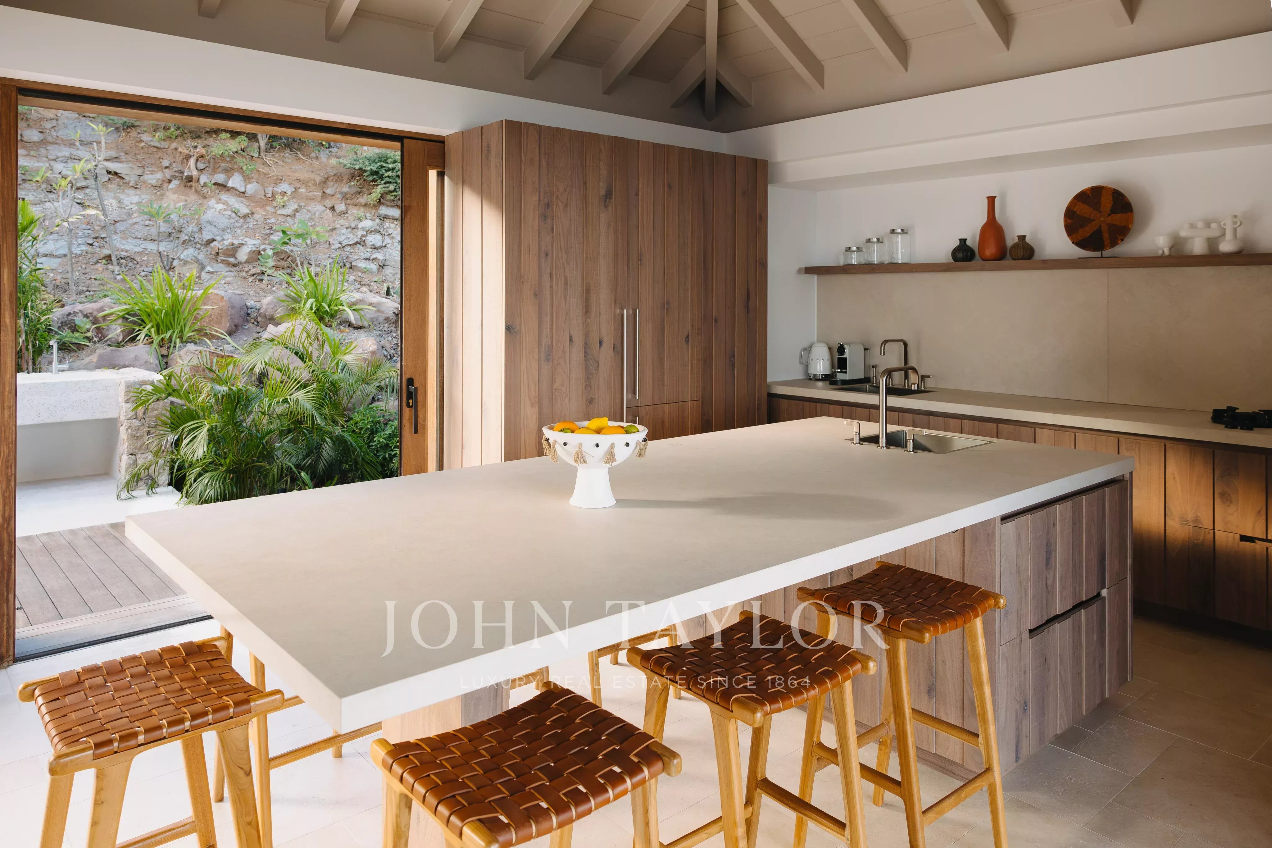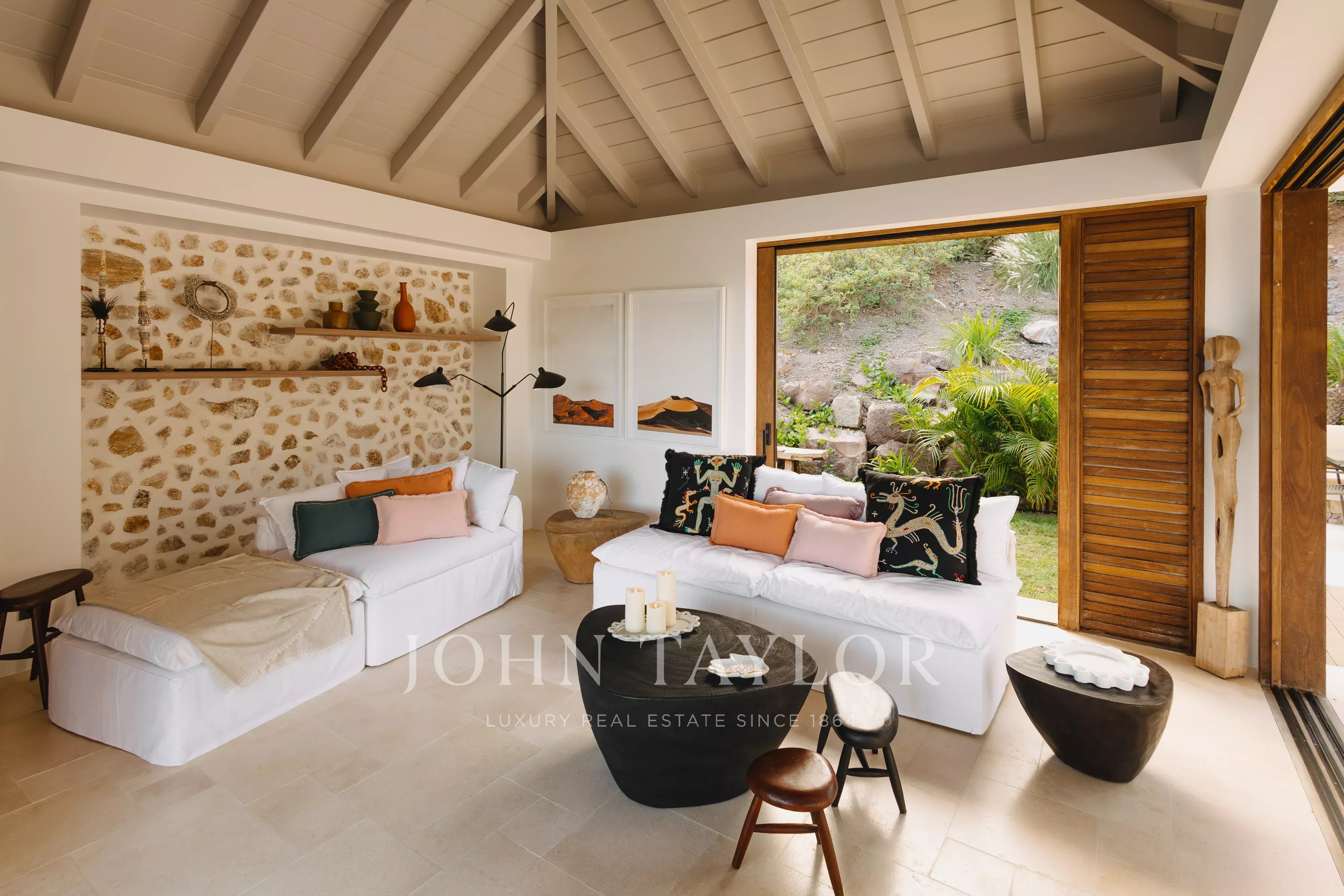 Dominant les paysages sauvages de Toiny, la Villa Anima offre un point de vue exceptionnel entre océan et collines luxuriantes. Son architecture mêle subtilement matières naturelles et lignes élégantes, créant une atmosphère à la fois contemporaine et chaleureuse, fidèle à l’esprit de Saint-Barth.