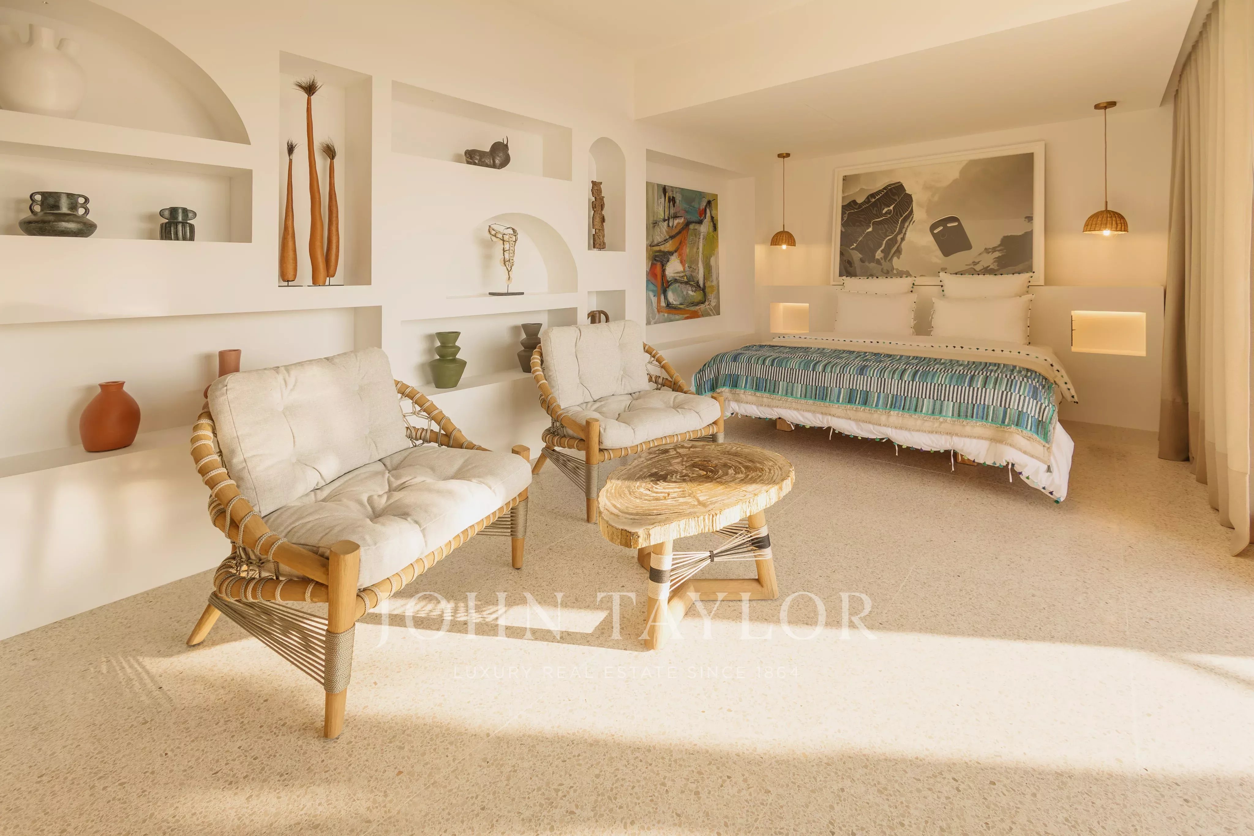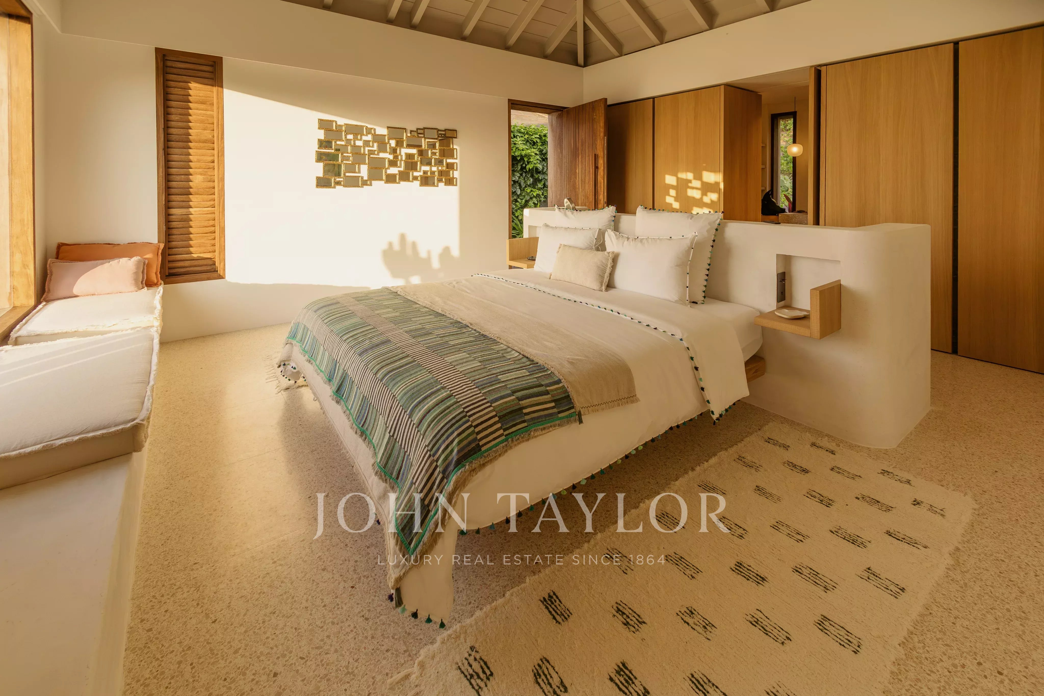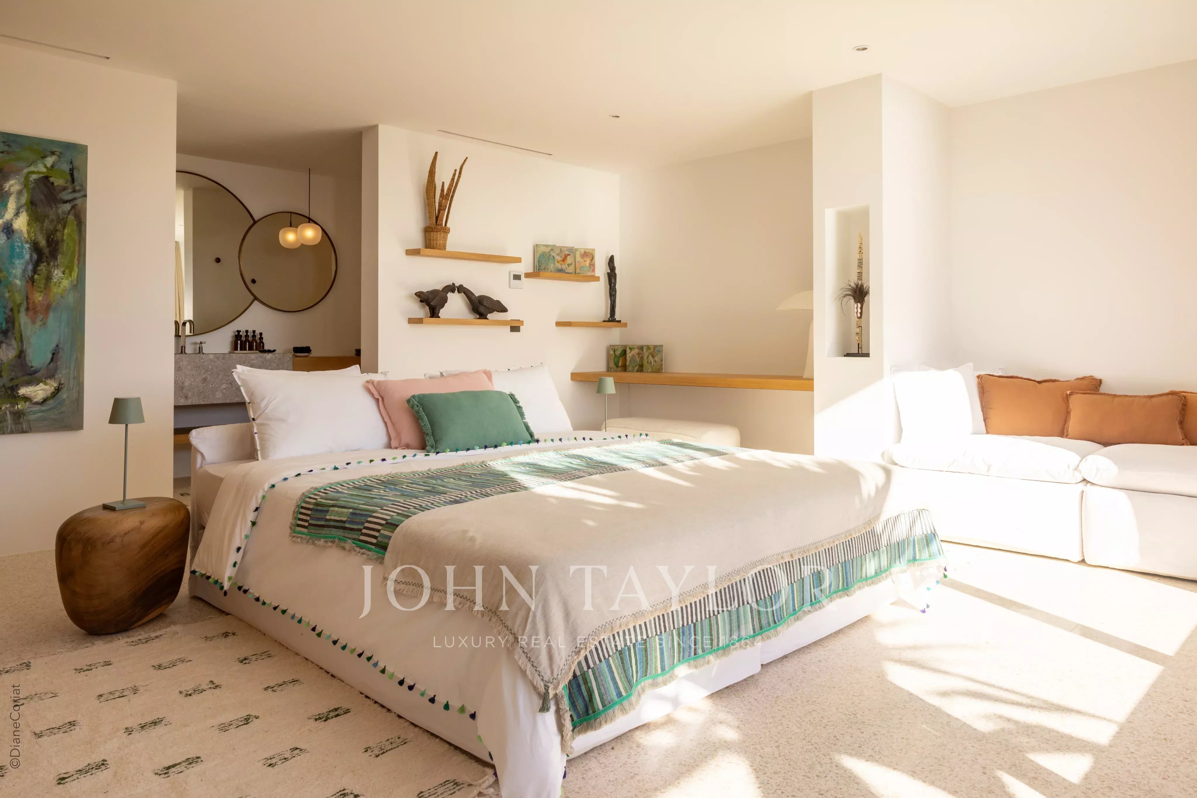 Pensée pour le bien-être, la villa dévoile des espaces lumineux ouverts sur l’extérieur, où la mer s’invite à chaque instant. Elle propose quatre chambres climatisées avec salles de bains privatives, offrant à chacun confort et tranquillité.