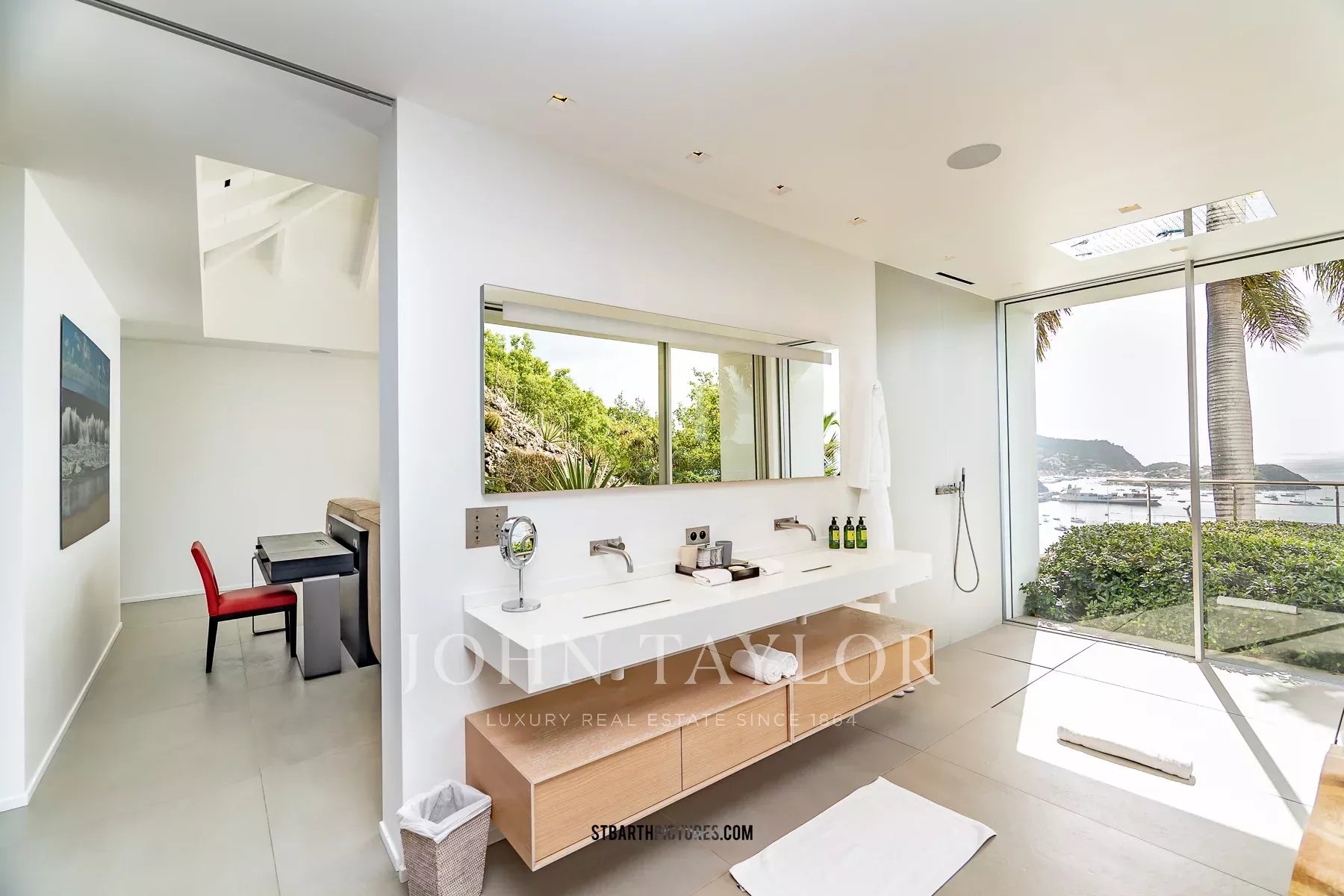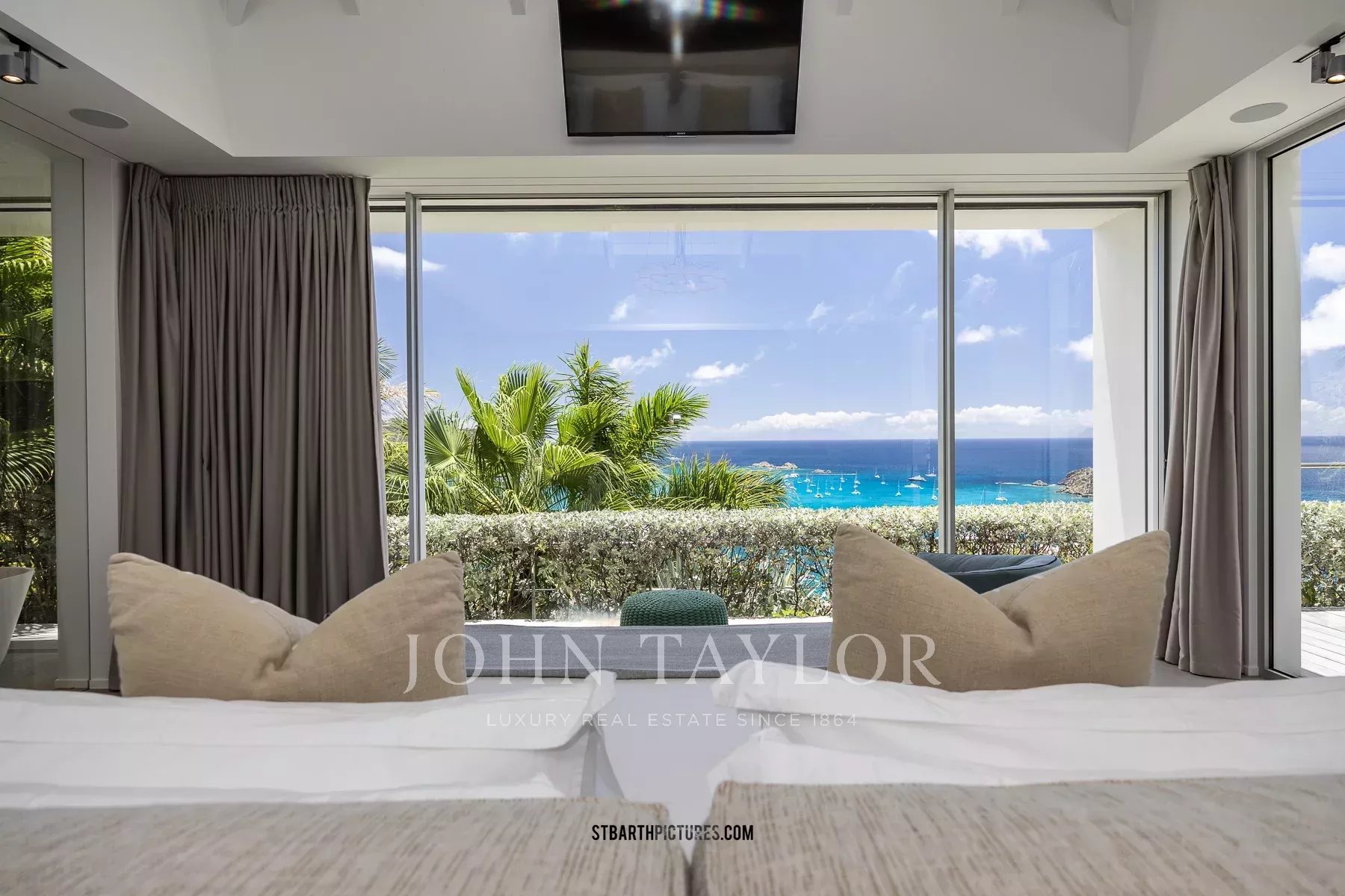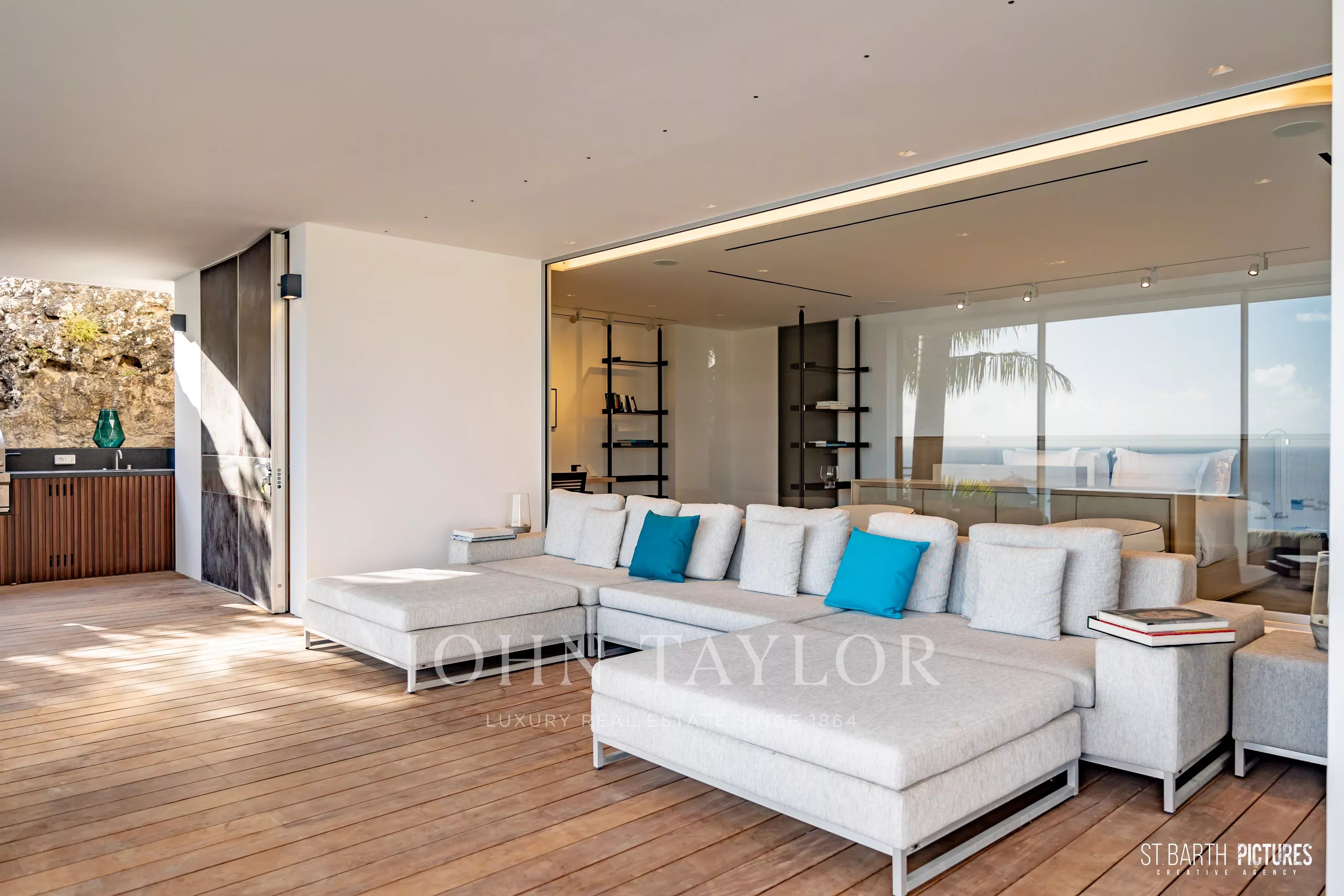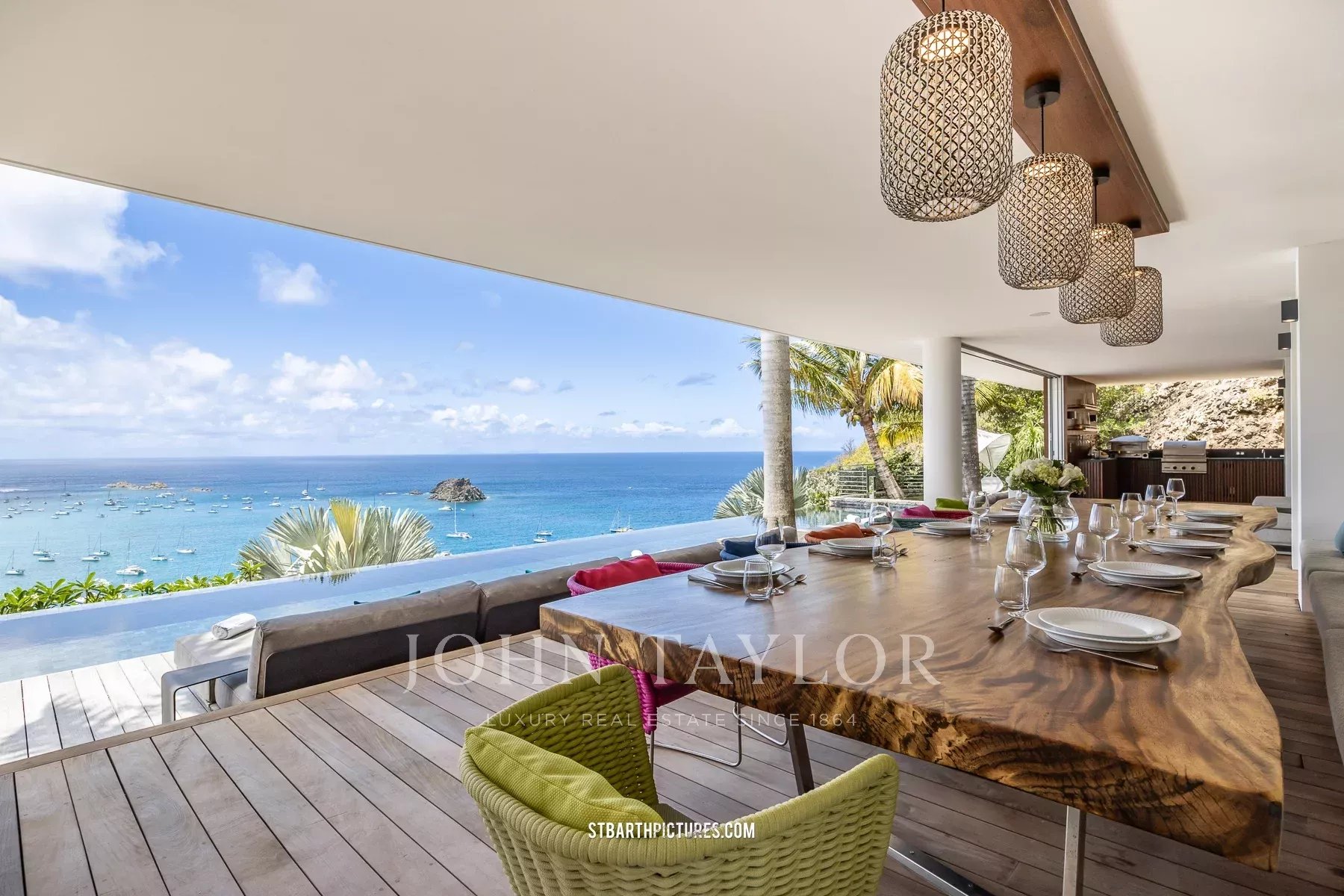 Perchée sur les hauteurs de Corossol, UTC est une somptueuse villa de luxe de cinq chambres, offrant une vue à couper le souffle sur la mer des Caraïbes.