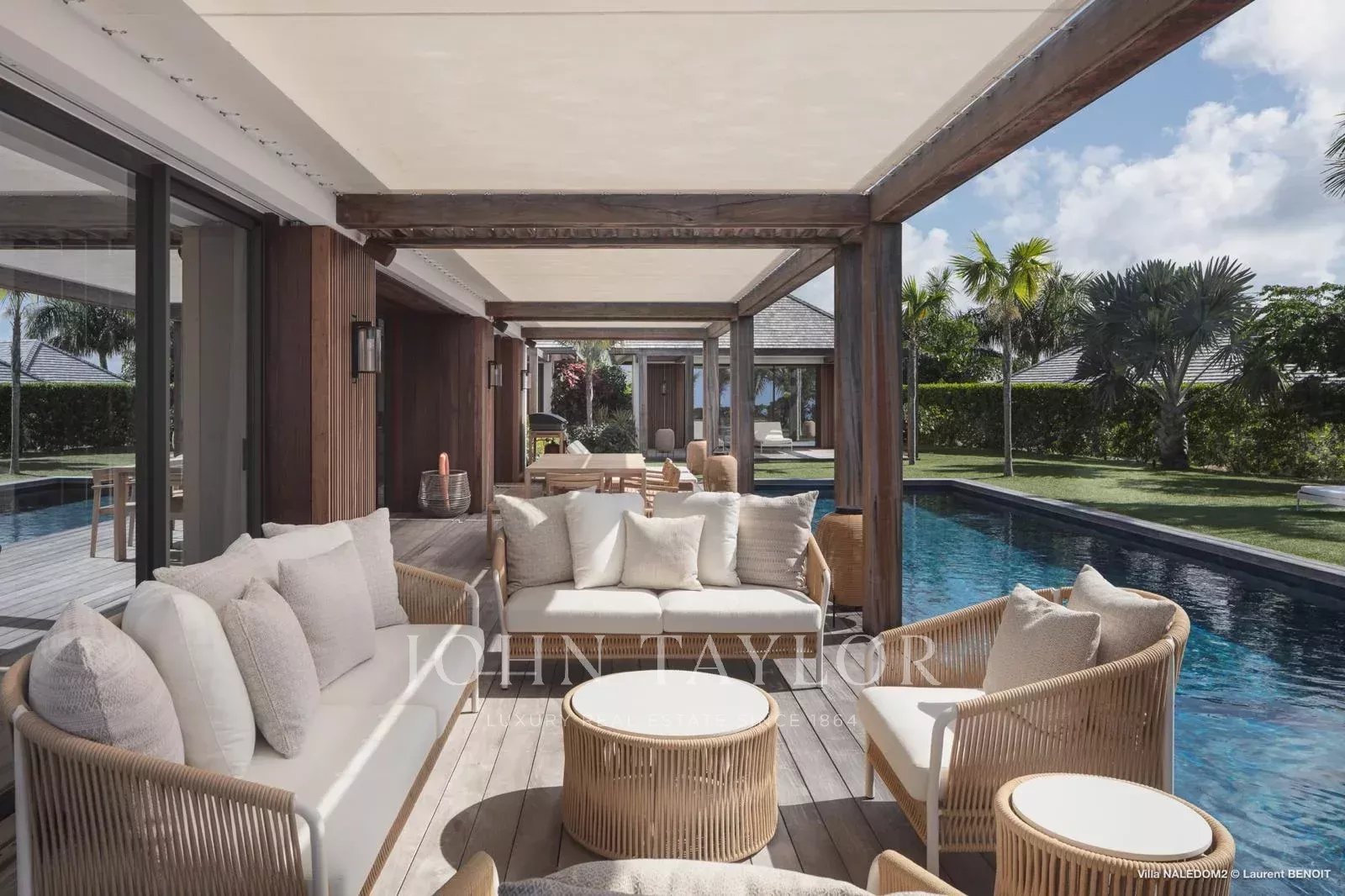 Cette villa contemporaine de quatre chambres s’inspire du style antillais à travers une organisation en bungalows indépendants, offrant une lecture moderne et élégante de l’architecture locale.