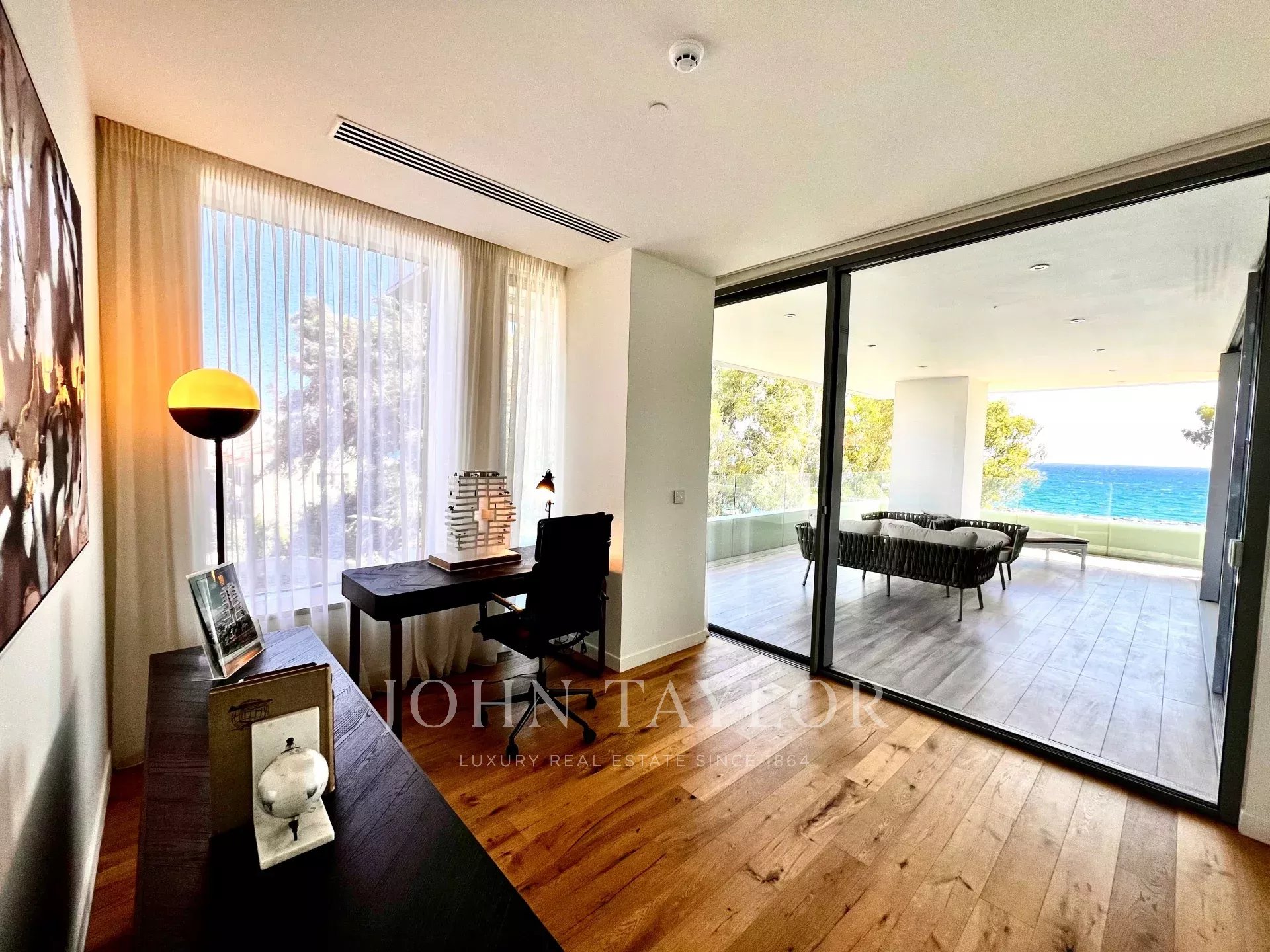 Situé à quelques mètres du rivage méditerranéen, cet appartement exceptionnel occupe tout le neuvième étage d'un triomphe architectural. Face à la côte et surplombant un luxuriant bosquet d'eucalyptus, la maison offre une atmosphère de calme, de lumière et de connexion ininterrompue avec la nature.