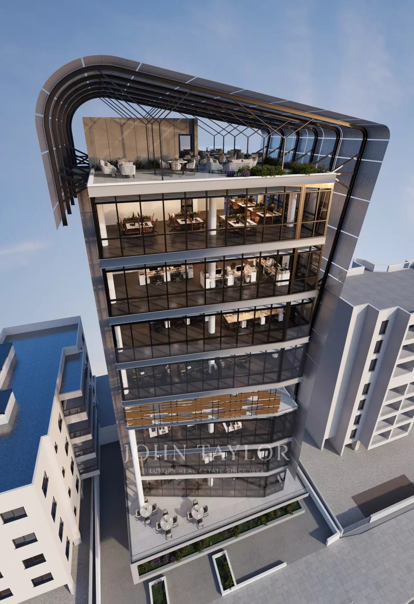 Chaque étage offre des espaces de travail ouverts et spacieux, une lumière naturelle et une infrastructure intelligente prête à accueillir des technologies de pointe et des environnements de travail hybrides. Un jardin exclusif sur le toit ajoute une précieuse touche de loisir et de prestige.