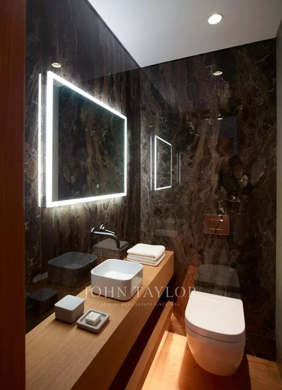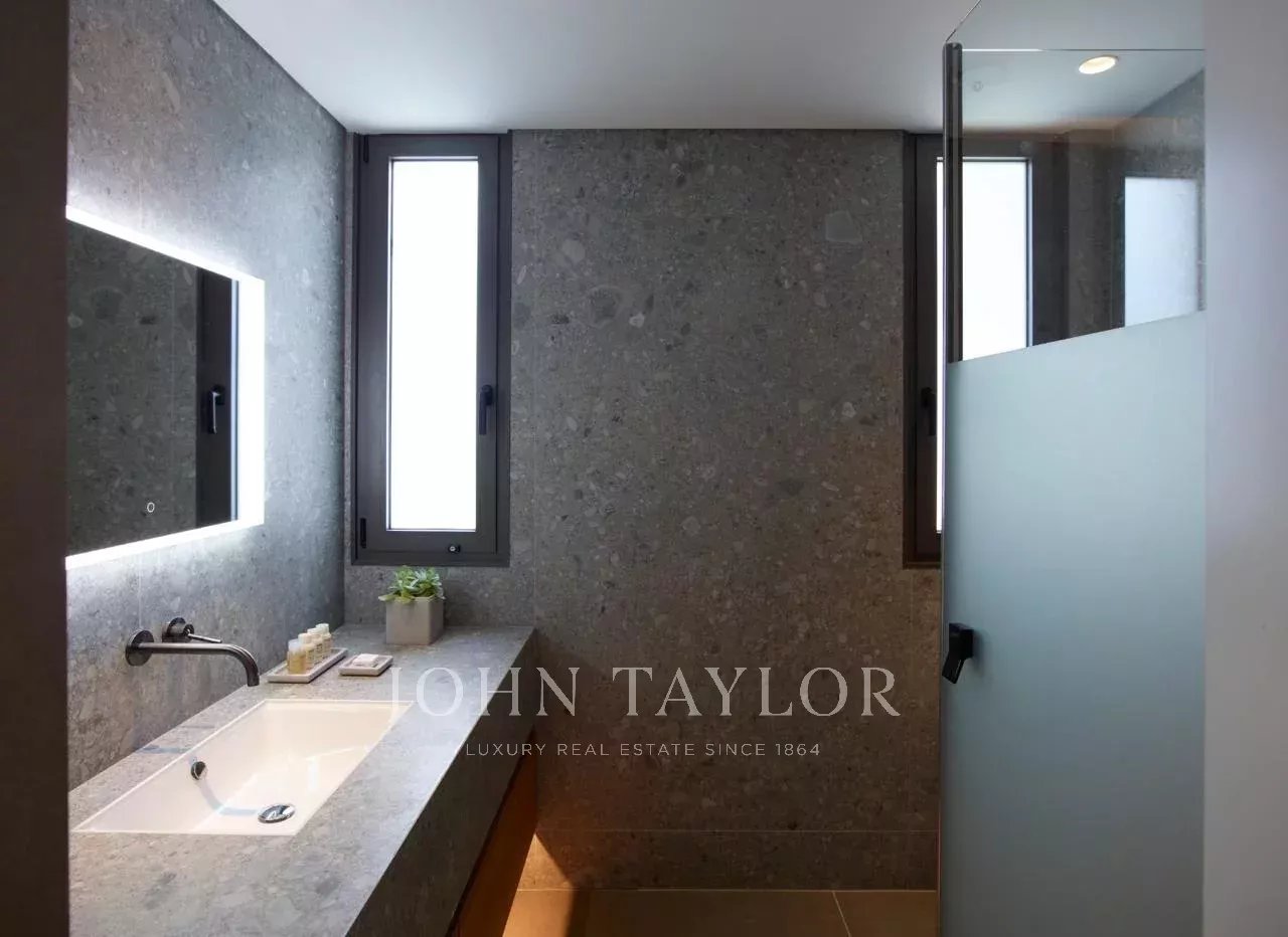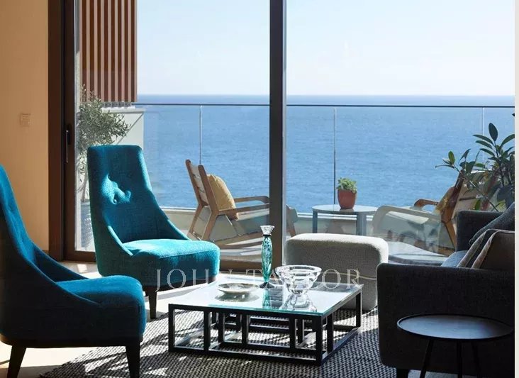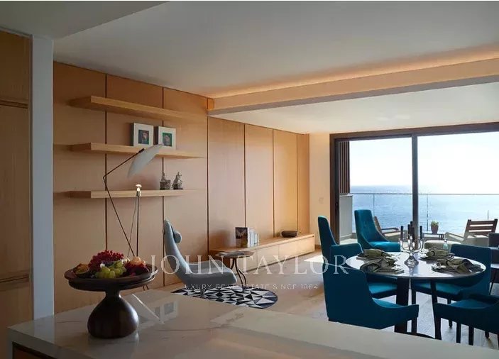 Occupant la totalité du 9ème étage, cette extraordinaire résidence offre intimité, espace et vues imprenables sur la Méditerranée. D'une superficie totale de 284 m², l'appartement est conçu pour permettre une vie intérieure et extérieure harmonieuse, avec de vastes murs de verre encadrant le front de mer et le ciel.