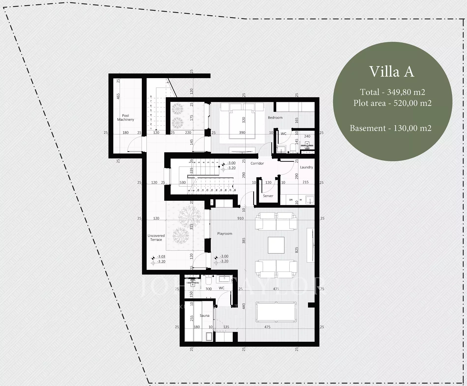 La villa comprend de vastes espaces de vie ouverts avec de hauts plafonds, des vitrages panoramiques, des finitions en porcelaine italienne et des accessoires allemands et belges de première qualité. Un système de climatisation VRV avancé, un chauffage par le sol et une construction économe en énergie garantissent un confort tout au long de l'année et de faibles coûts d'exploitation.