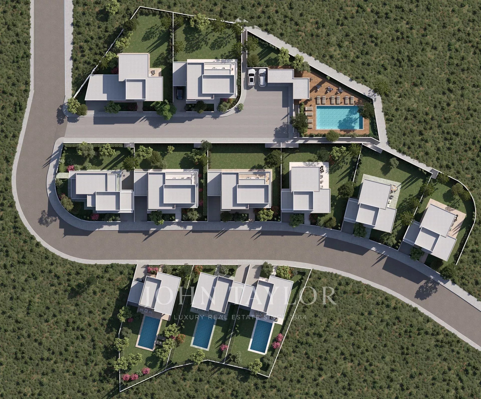 Sur les onze villas prévues, seules deux sont encore disponibles. Toutes deux offrent trois chambres, des surfaces intérieures couvertes de 152,98 m², des vérandas couvertes de 48,84 m² et un parking couvert de 19,46 m², sur des parcelles de 405 m² et 413 m². Les prix commencent à 900 000 € + TVA.