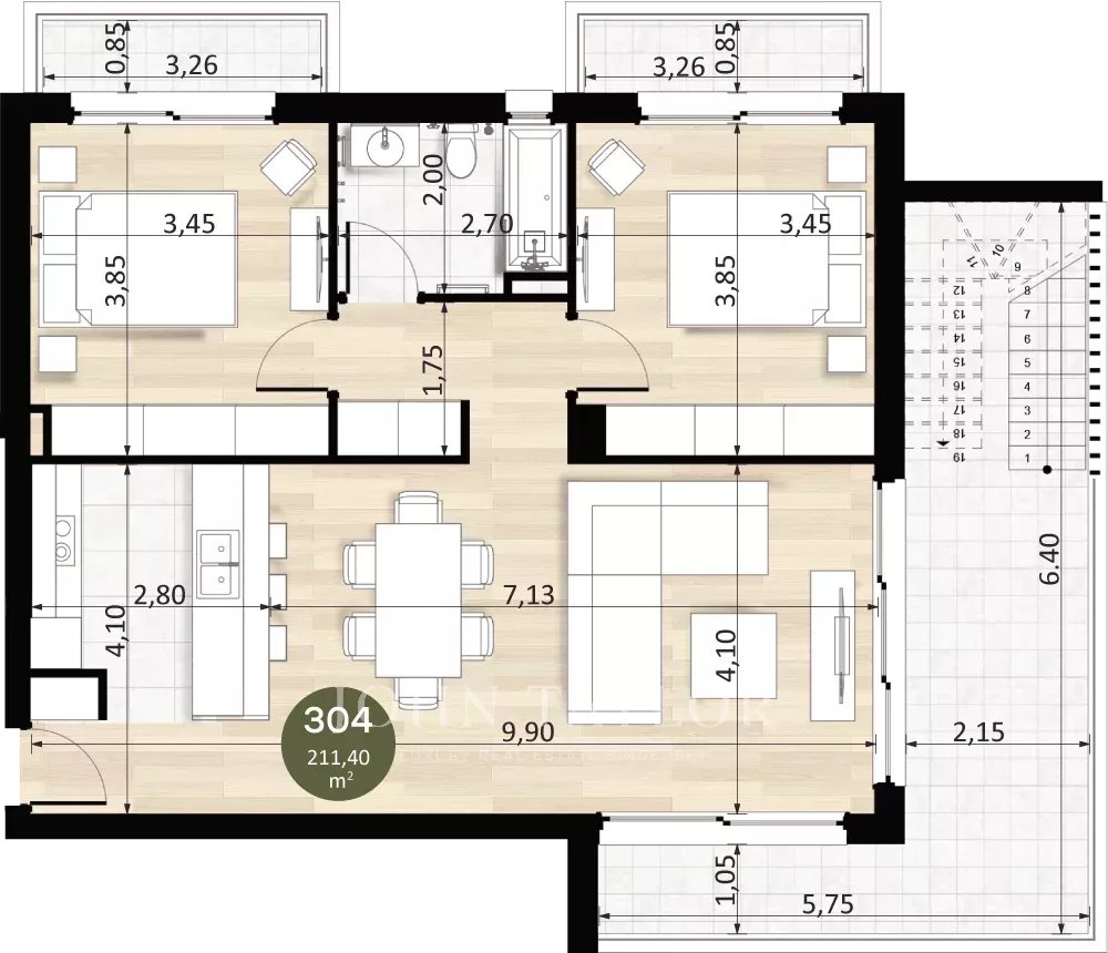Pour ceux qui recherchent plus d'intimité et d'espace extérieur, les deux villas restantes offrent une expérience de maison individuelle avec un jardin paysager, des terrasses sur le toit et l'option d'une piscine privée. Ces maisons de cinq chambres à coucher présentent des plafonds encore plus hauts, des intérieurs personnalisables et un système de climatisation VRV avancé, ainsi qu'un système de chauffage par le sol. Conçues pour la vie de famille, les villas comprennent de vastes espaces de vie ouverts et un parking privé, tout en bénéficiant de l'accès aux équipements communs du complexe.