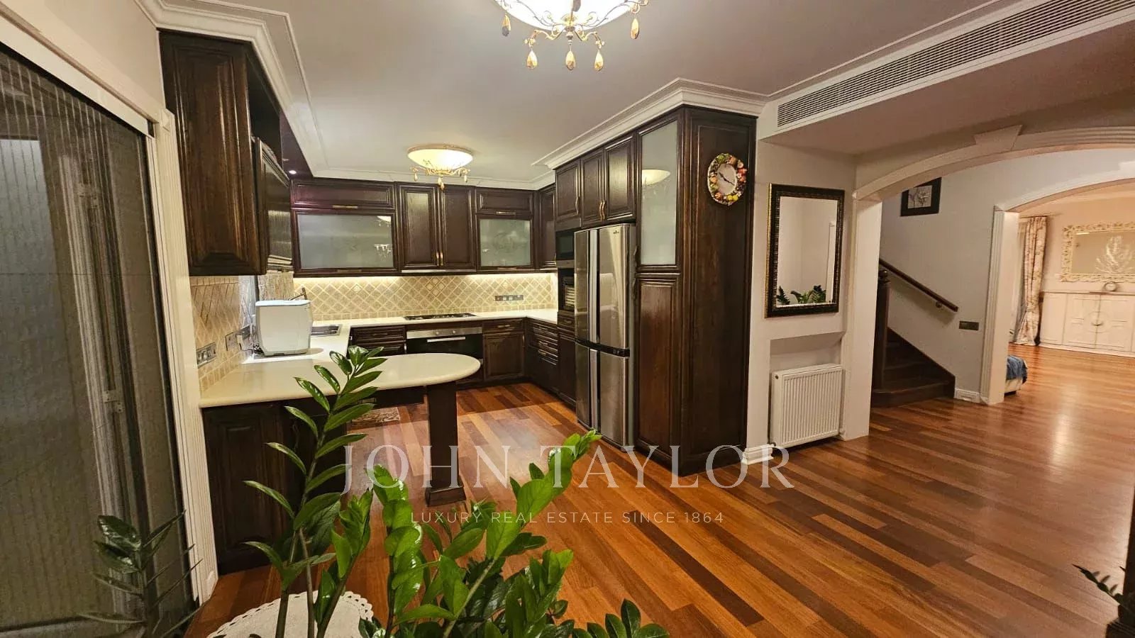 Le rez-de-chaussée est orné d'un parquet en bois naturel de Cumaru du Brésil, tandis que l'étage supérieur est recouvert d'un liège chaleureux. Tous les meubles ont été fabriqués en bois massif et l'éclairage provient d'Italie, ce qui ajoute une touche de sophistication à l'ensemble de la maison. Le confort est renforcé par une climatisation complète et un système de chauffage au gaz distribué par treize radiateurs.