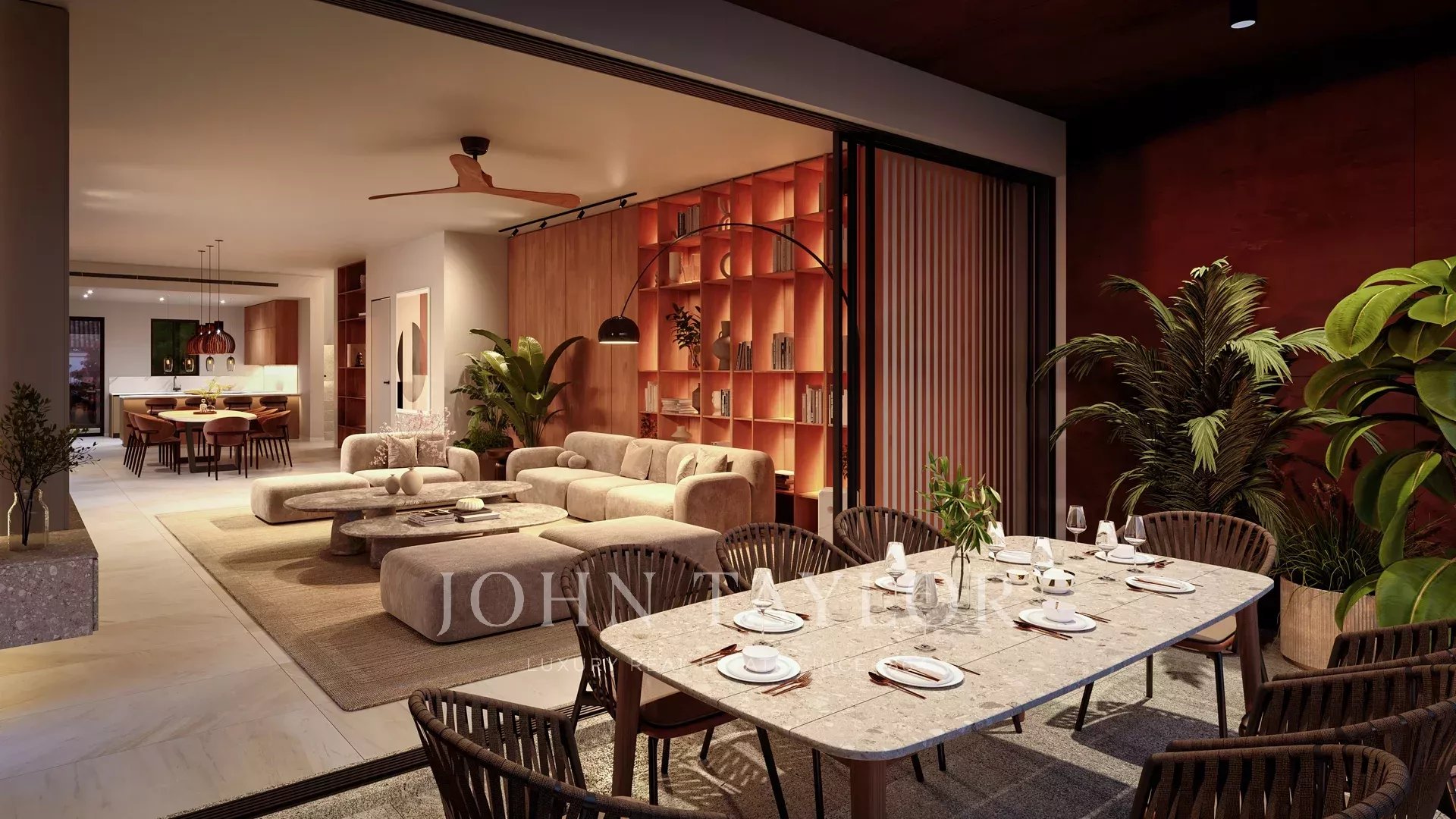 Chaque villa est conçue comme une maison privée, et non comme un simple élément d'architecture. Quatre chambres à coucher avec salle de bains, un ascenseur privé et cinq niveaux soigneusement conçus créent un flux naturel entre la vie, le repos et les divertissements. La surface intérieure de 377 m² est complétée par 102 m² de vérandas couvertes, un terrain de 385 m² et un jardin privé de 259 m², idéal pour les matins tranquilles, la vie de famille ou les soirées en plein air.