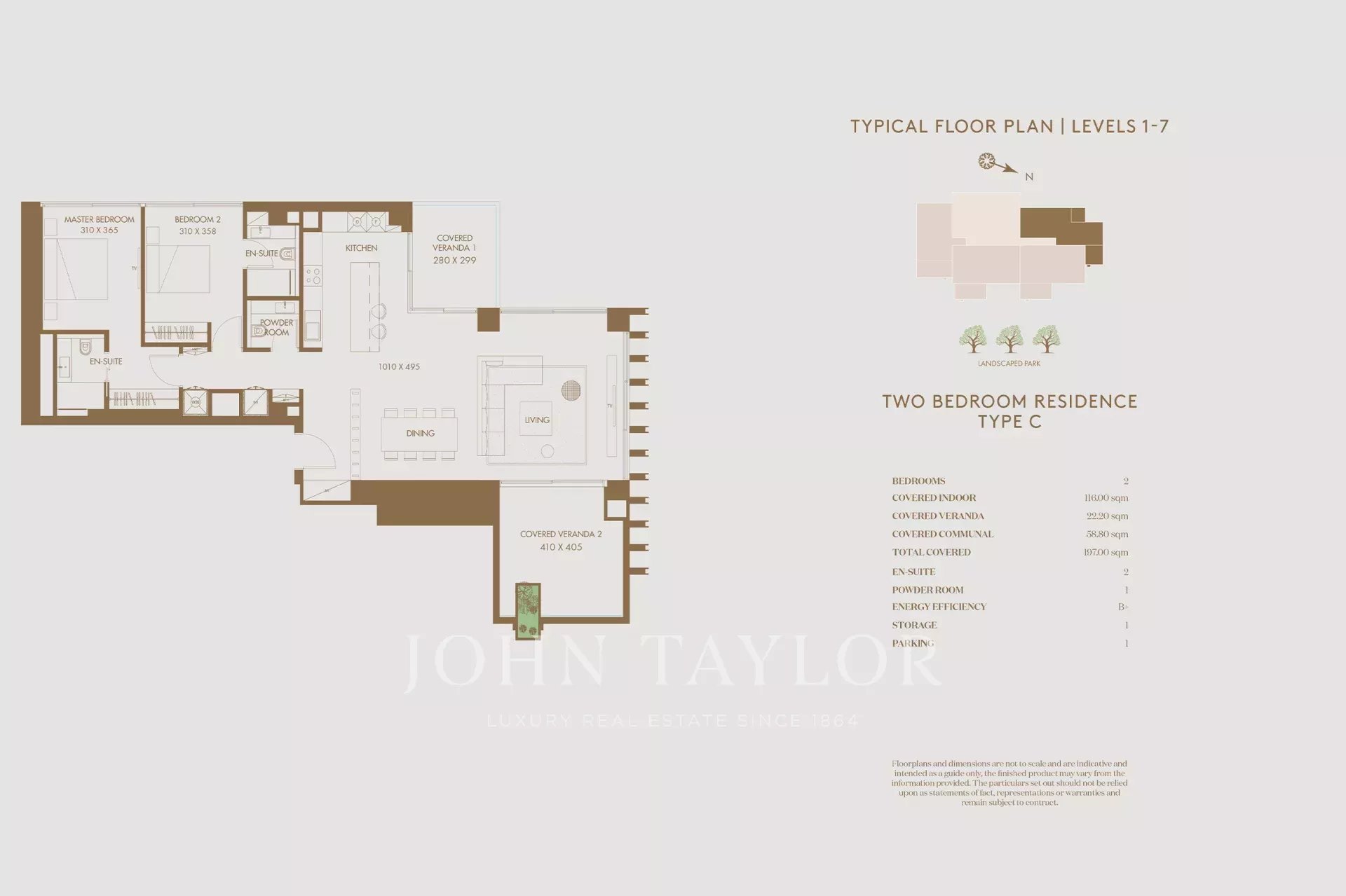 * Résidence de 2 chambres à coucher avec une surface intérieure à partir de 129 m² :