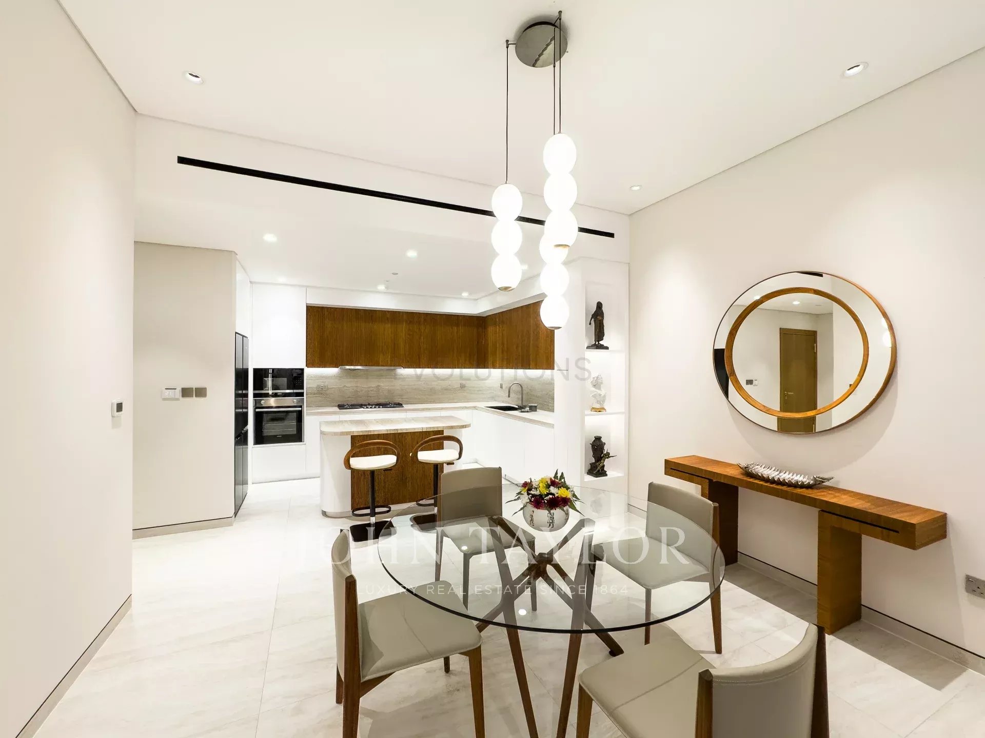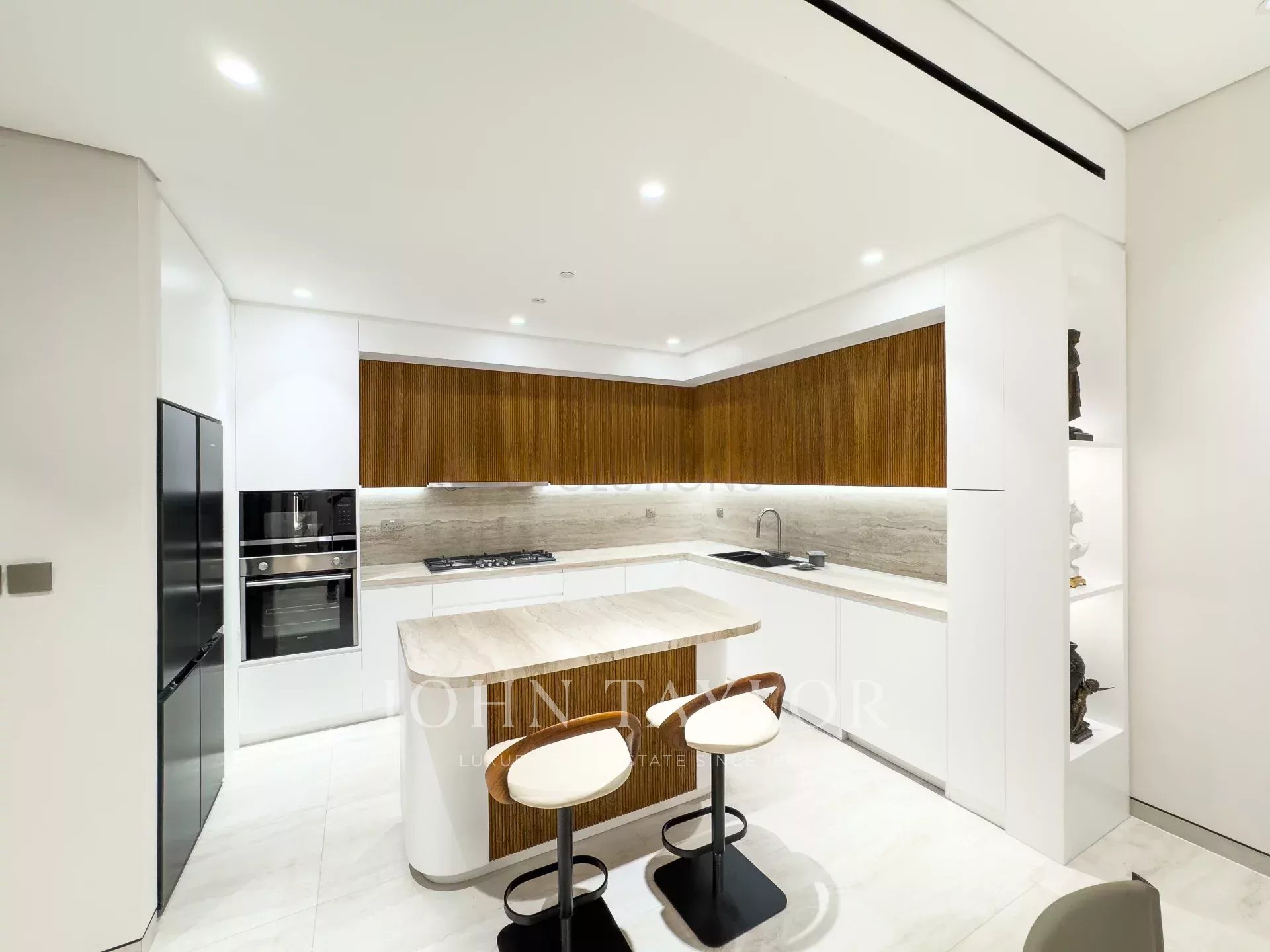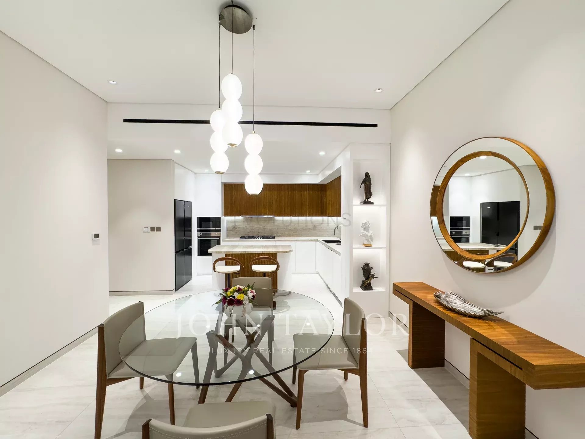 Cette vaste résidence a été conçue pour permettre à la fois une vie de famille et des réceptions sophistiquées. S'étendant sur un plan d'étage généreux, l'appartement est doté de fenêtres allant du sol au plafond qui inondent l'espace de lumière naturelle et offrent des vues panoramiques sur les lacs environnants, la ligne d'horizon et la verdure luxuriante.
