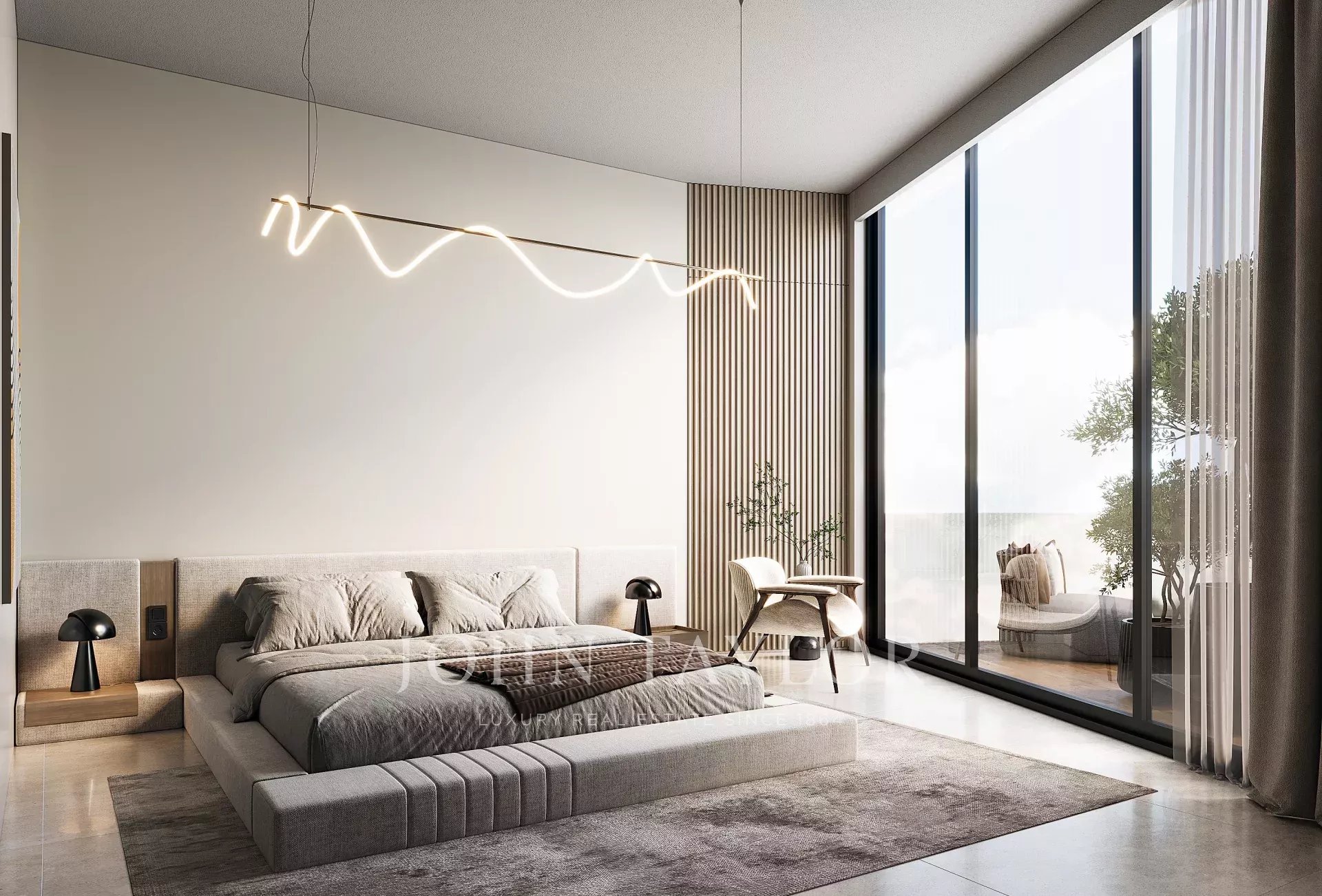2 chambres spacieuses : Une chambre principale avec une salle de bains attenante et un grand espace de rangement, ainsi qu'une deuxième chambre de bonne taille avec un accès facile à une élégante salle de bains pour les invités.