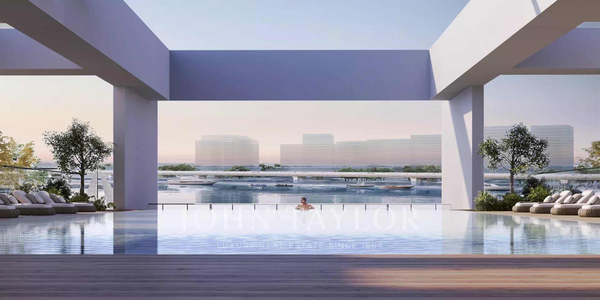 Piscine à débordement avec vue sur l'eau