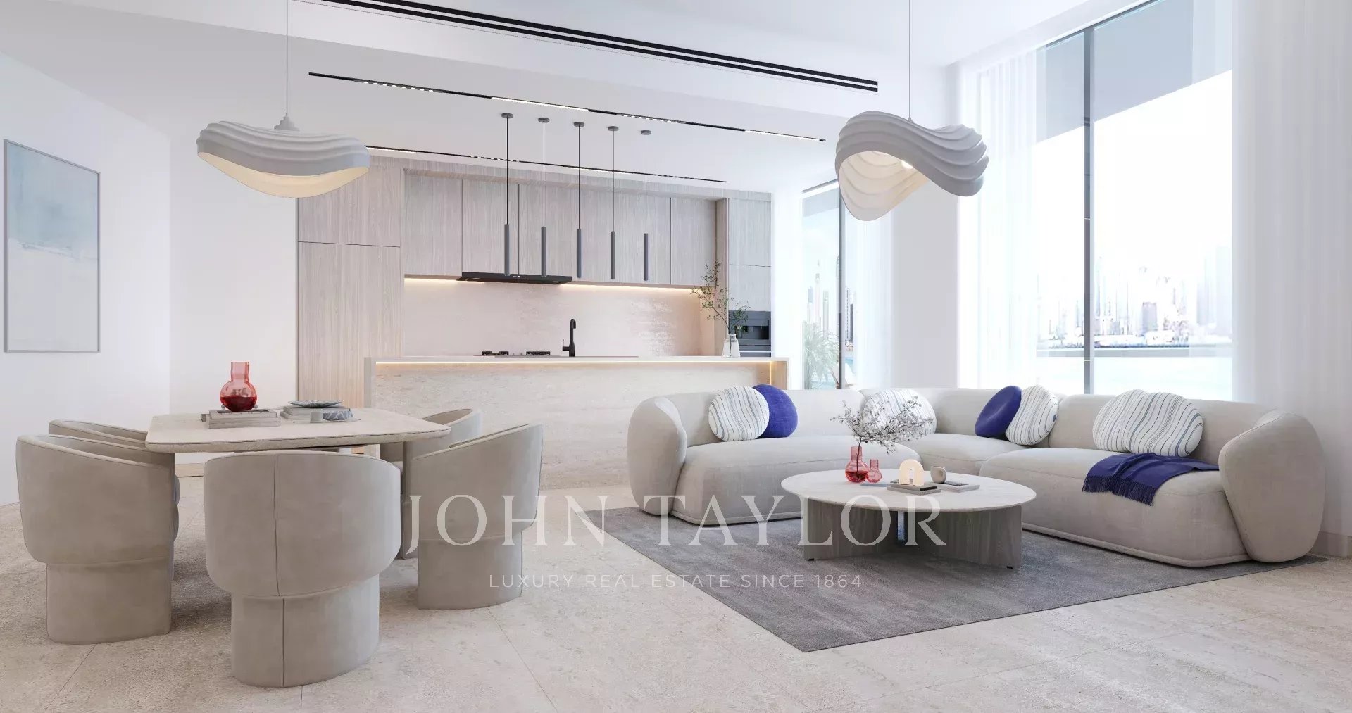 Vues à couper le souffle : Les vues panoramiques sur la marina de Dubaï, le golfe Persique et la ligne d'horizon de la ville font de cet appartement un lieu de retraite serein.
