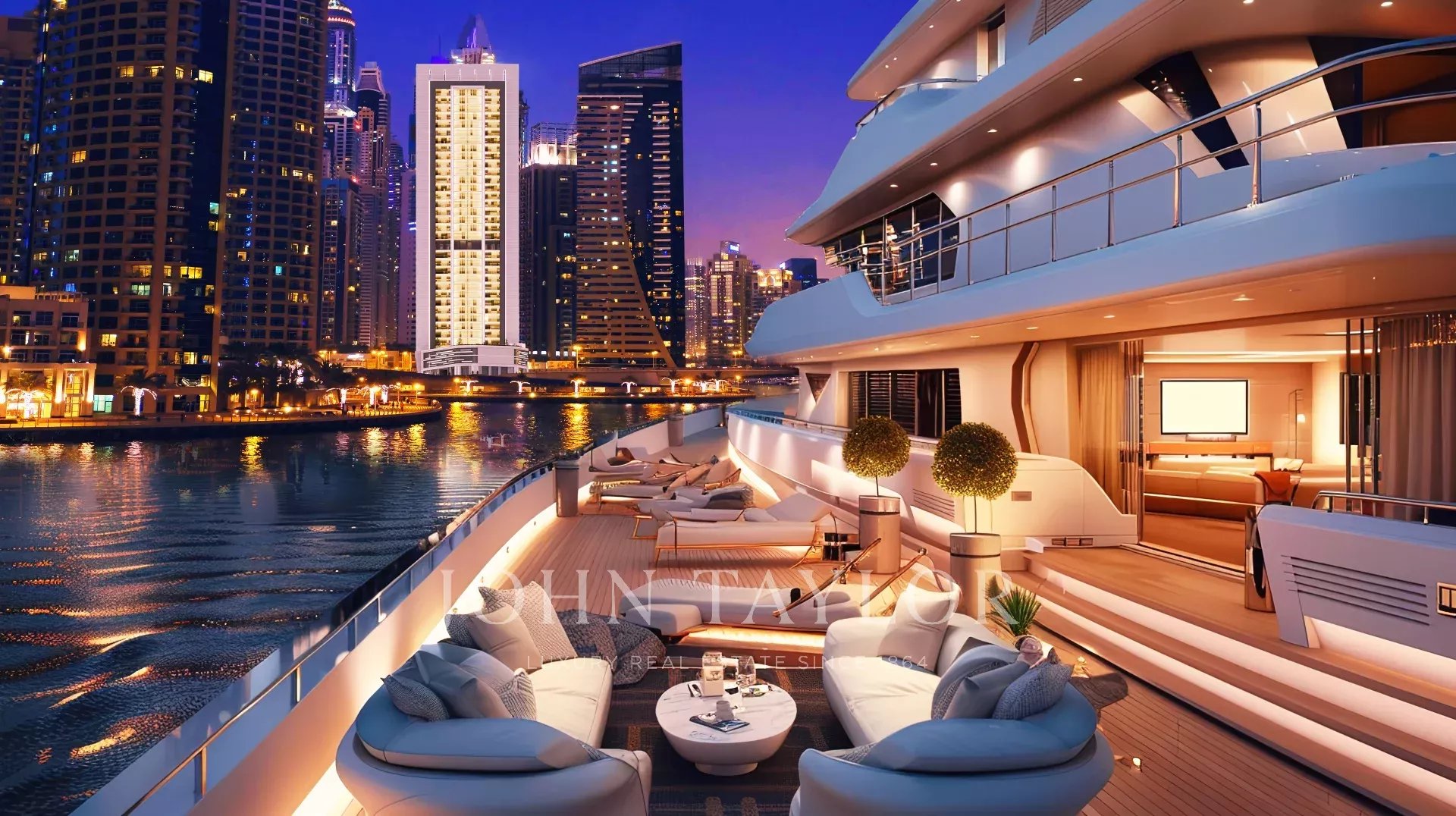 Balcon privé : Un espace extérieur spacieux idéal pour profiter de la vue sur la marina et la ligne d'horizon de Dubaï.