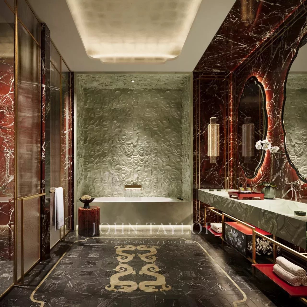 Finitions haut de gamme : Sols en marbre de haute qualité, luminaires design et fenêtres allant du sol au plafond pour inonder l'espace de lumière naturelle.