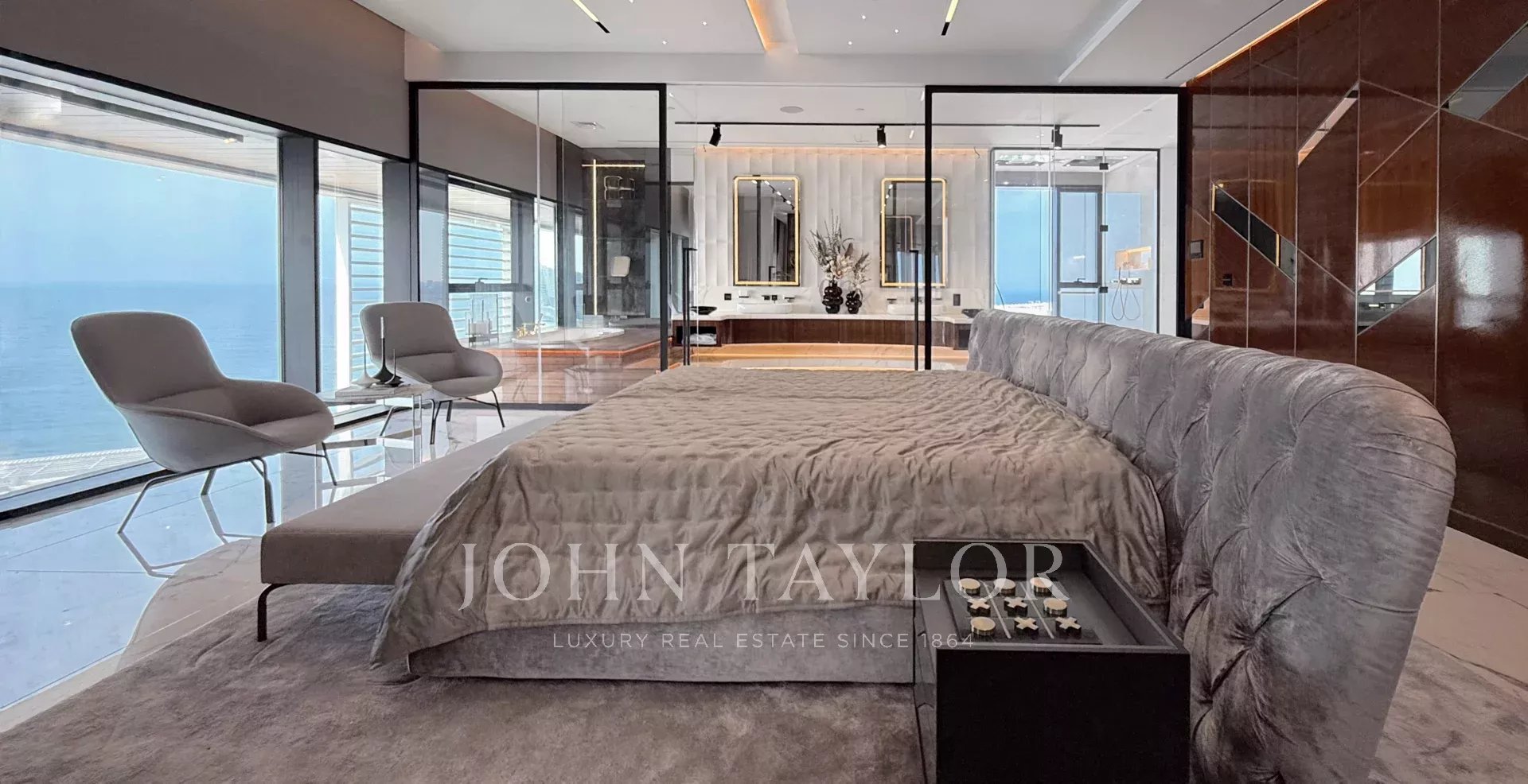 Suite parentale avec une grande armoire et une salle de bains donnant sur la mer