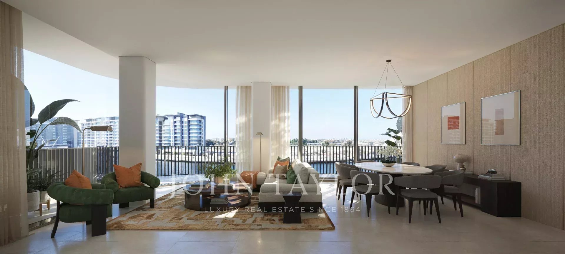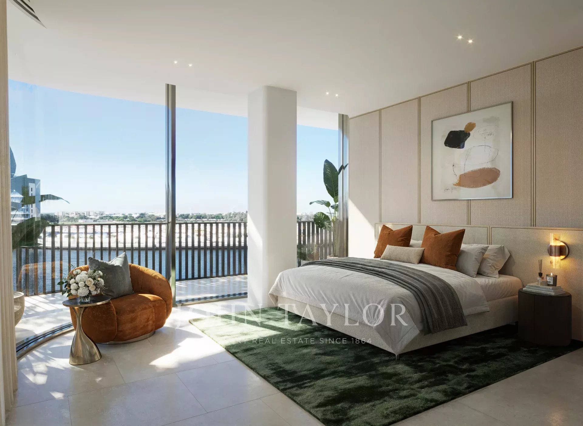 L'appartement présente un plan ouvert avec des intérieurs contemporains, des finitions haut de gamme et une lumière naturelle abondante grâce à des fenêtres allant du sol au plafond. Le salon et la salle à manger spacieux s'intègrent parfaitement à la cuisine élégante et entièrement équipée, ce qui en fait un lieu idéal pour se détendre et recevoir. Les chambres sont de taille généreuse et disposent toutes d'une salle de bains privative, tandis que la suite parentale est dotée d'un dressing et d'un balcon privé.