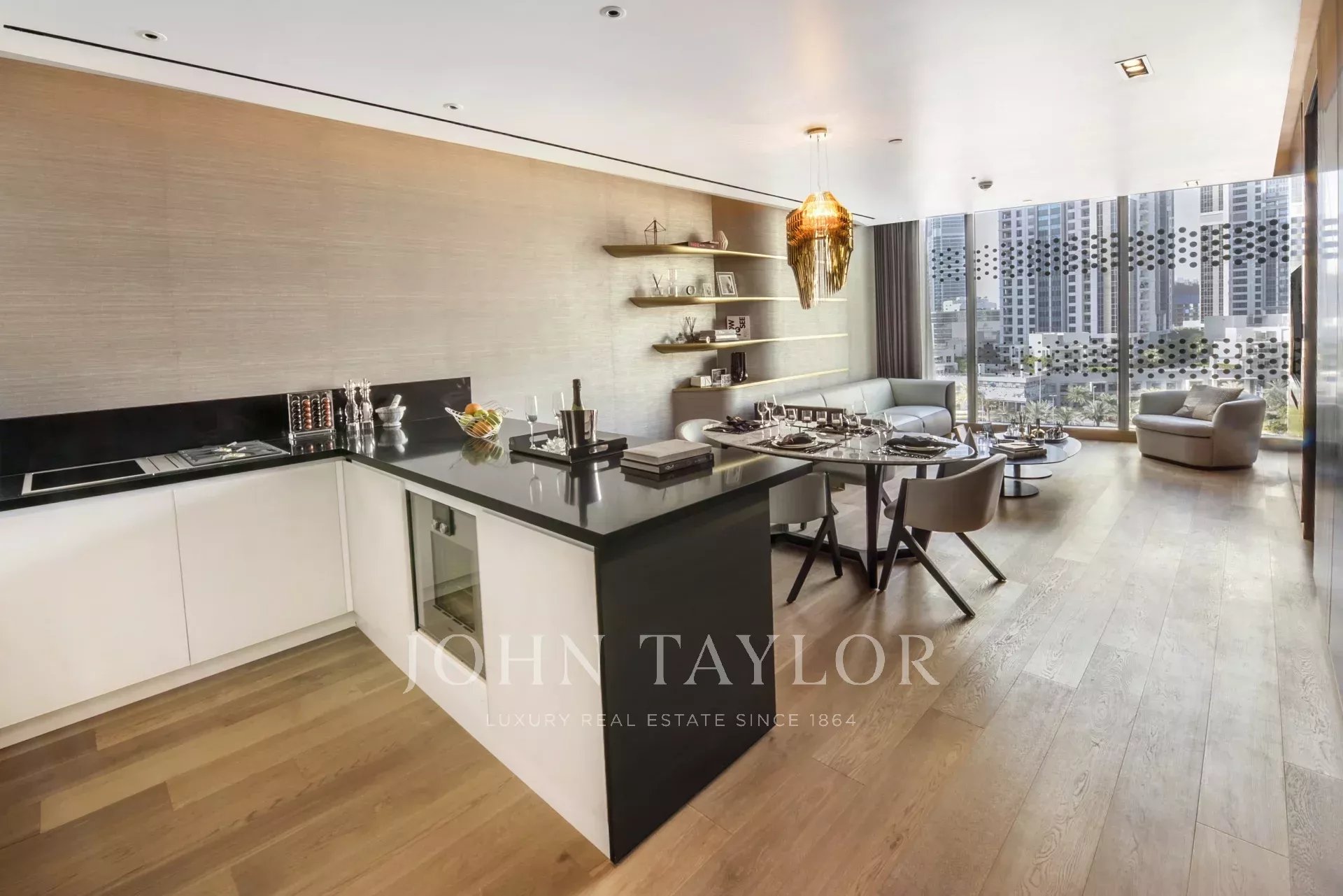 Un luxueux appartement d'une chambre à coucher dans la tour Opus de Zaha Hadid. La tour Opus est une création visionnaire de l'architecte emblématique Zaha Hadid, reconnue dans le monde entier pour son design révolutionnaire. La forme cubique emblématique du bâtiment, avec son vide central fluide, allie la brillance esthétique au luxe fonctionnel. À l'intérieur, les résidents et les invités bénéficient d'expériences inégalées, allant de la gastronomie à l'hôtel ME by Meliá, en passant par des installations de bien-être et de style de vie de pointe.