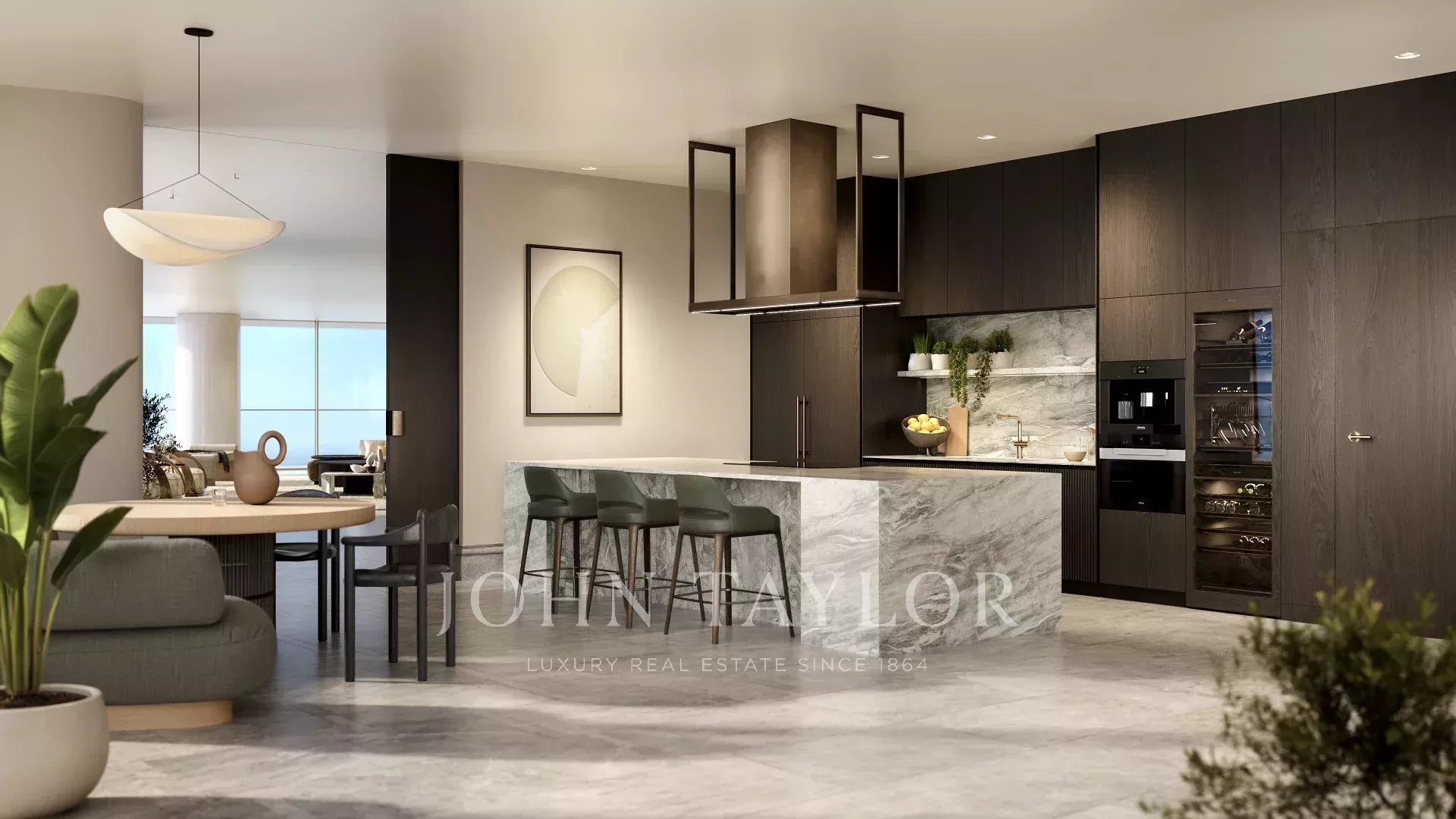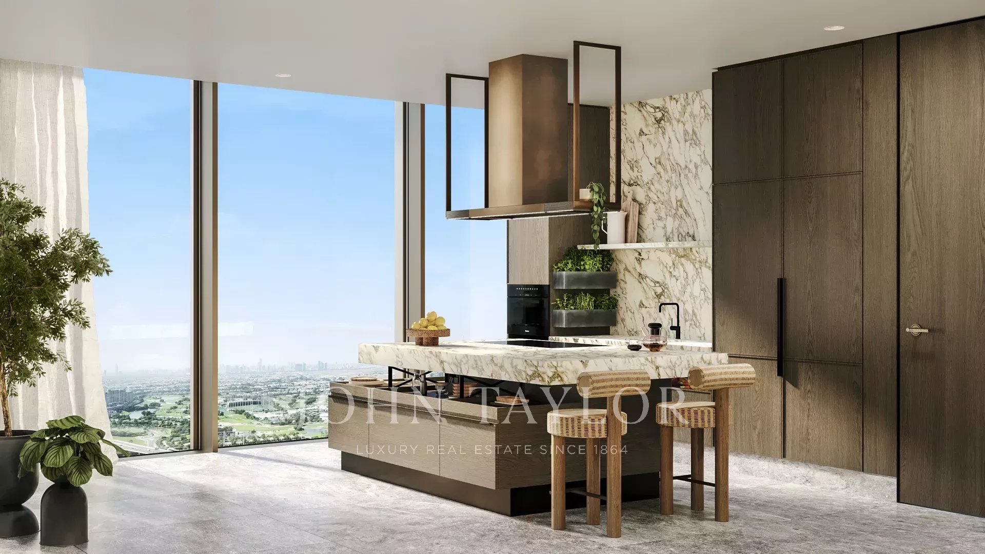 Conçue dans un esprit de bien-être et de sophistication, cette vaste résidence s'étend sur plus de 484 mètres carrés, dont environ 426 mètres carrés d'espace de vie intérieur raffiné et 58 mètres carrés de terrasse extérieure privée. De grandes fenêtres allant du sol au plafond inondent les intérieurs de lumière naturelle, tandis que les finitions en bois sur mesure et les accents de bronze raffinés créent un sanctuaire tranquille et moderne au-dessus de la ville.