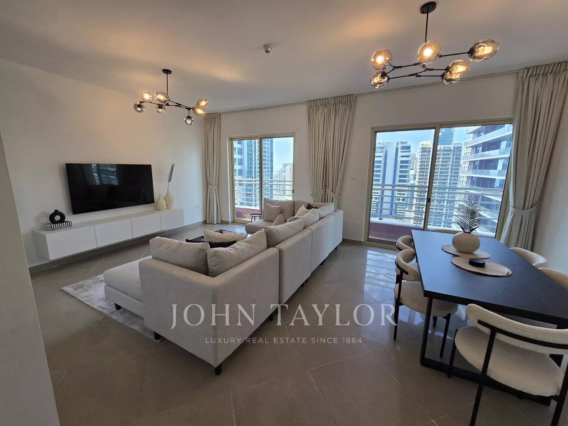 John Taylor Real Estate a le plaisir de proposer cet appartement de 2 chambres à coucher magnifiquement meublé avec une chambre de bonne dans la prestigieuse Icon Tower 2, située au cœur de Jumeirah Lake Towers (JLT). D'une superficie de 135,08 mètres carrés, cette résidence offre une combinaison parfaite de luxe, d'espace et de commodité, idéale pour les familles ou les professionnels.