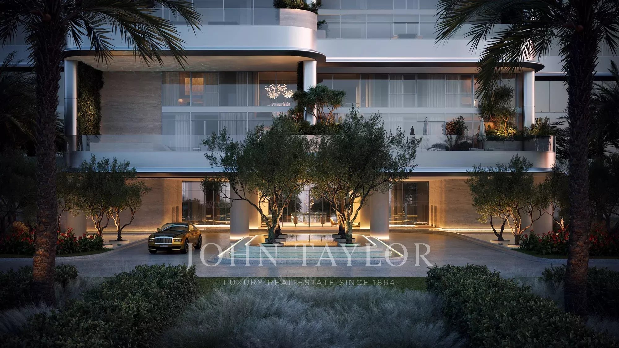 Située sur le croissant de Palm Jumeirah, cette superbe résidence en duplex est l'une des 20 résidences du projet ORLA Infinity. Desservi par la Dorchester Collection et développé par le maître d'œuvre Omniyat, le duplex s'étend sur une surface bâtie de 8 045 m² et est disponible sur plan. L'unité offre d'excellentes vues sur la ville et la mer. Le bâtiment a été conçu par les architectes de renommée mondiale Foster + Partners, et les intérieurs ont été conçus par Yodezeen. L'aménagement des espaces communs a été réalisé par Zed Collective.