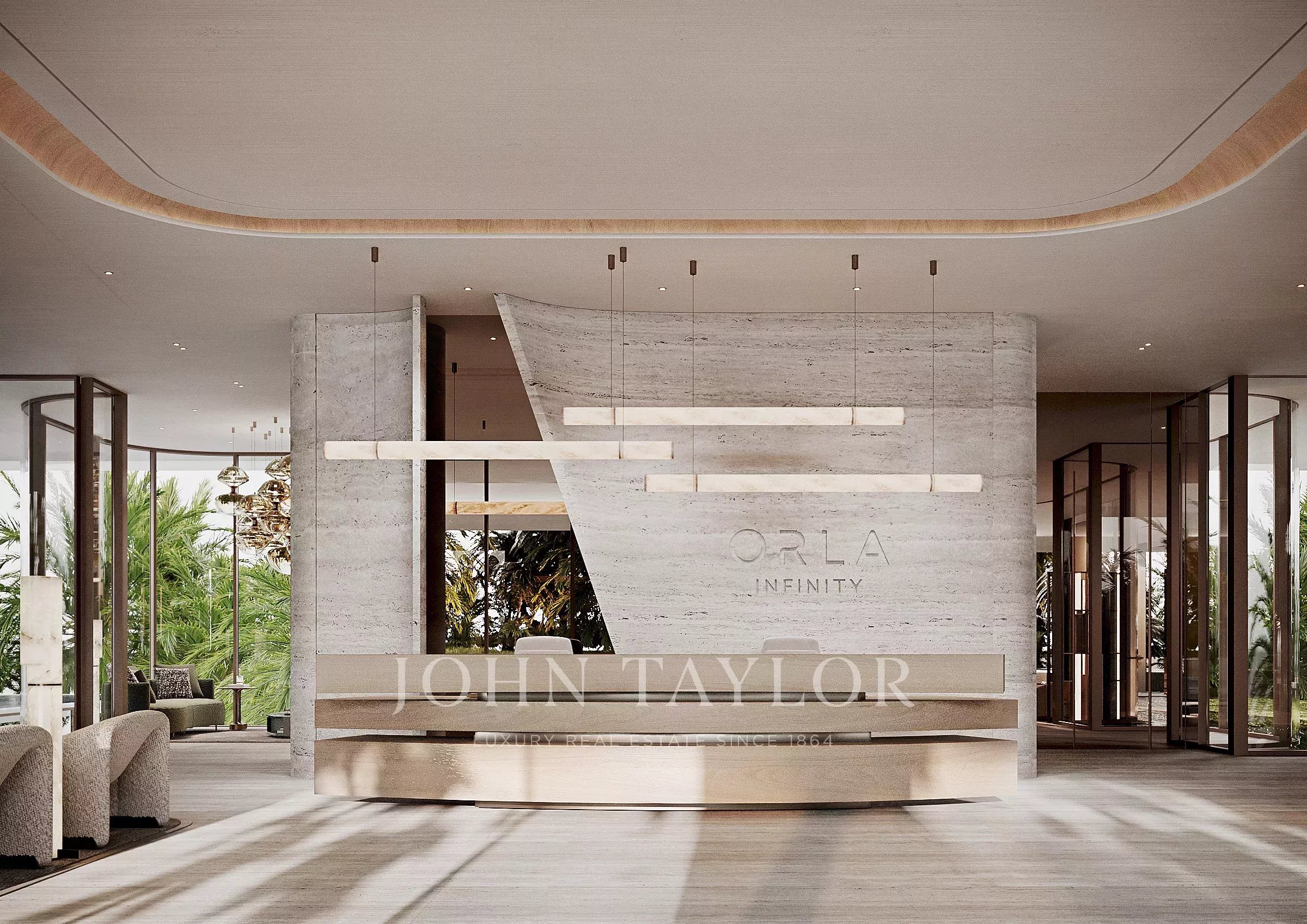 Une allée paysagée vous permet d'accéder à une entrée privée, qui vous accueille à ORLA Infinity. En pénétrant dans le hall du rez-de-chaussée, un service de classe mondiale vous attend, accompagné d'œuvres d'art exquises et de jeux d'eau qui amplifient la grandeur de l'espace. Des ascenseurs discrets vous transportent sans effort du parking sécurisé ou du rez-de-chaussée directement à votre résidence, garantissant l'intimité et la commodité.