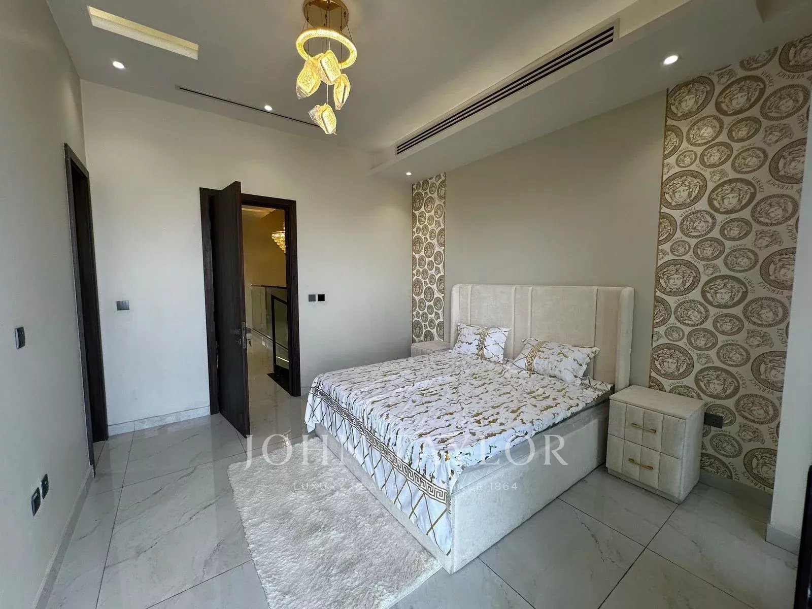 Conçue avec des finitions Versace et Lamborghini, chaque détail de cette maison respire l'élégance, l'opulence et le style moderne. Dès l'entrée, vous serez accueillis par les matériaux les plus nobles, un artisanat exquis et un agencement qui offre à la fois intimité et fonctionnalité.