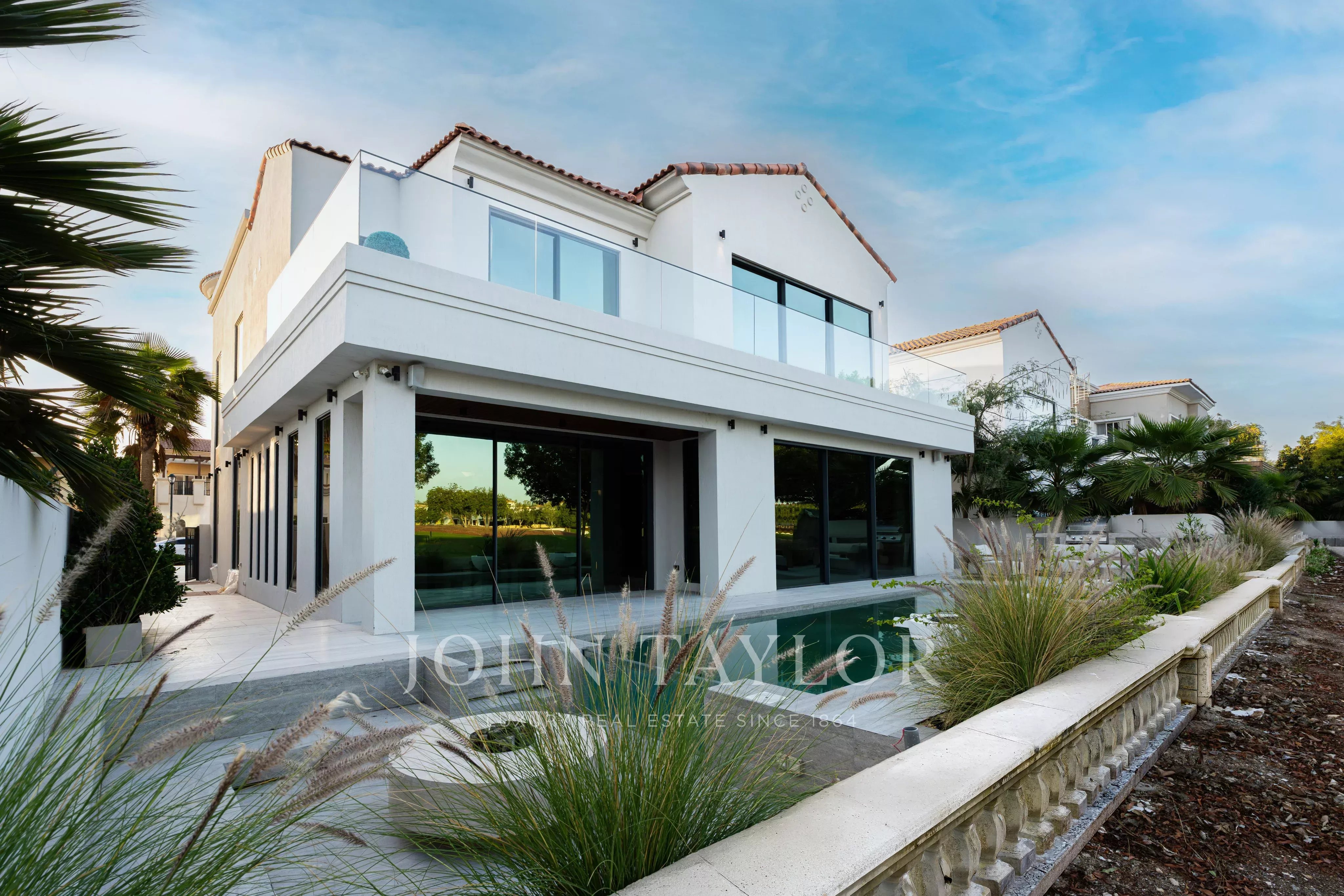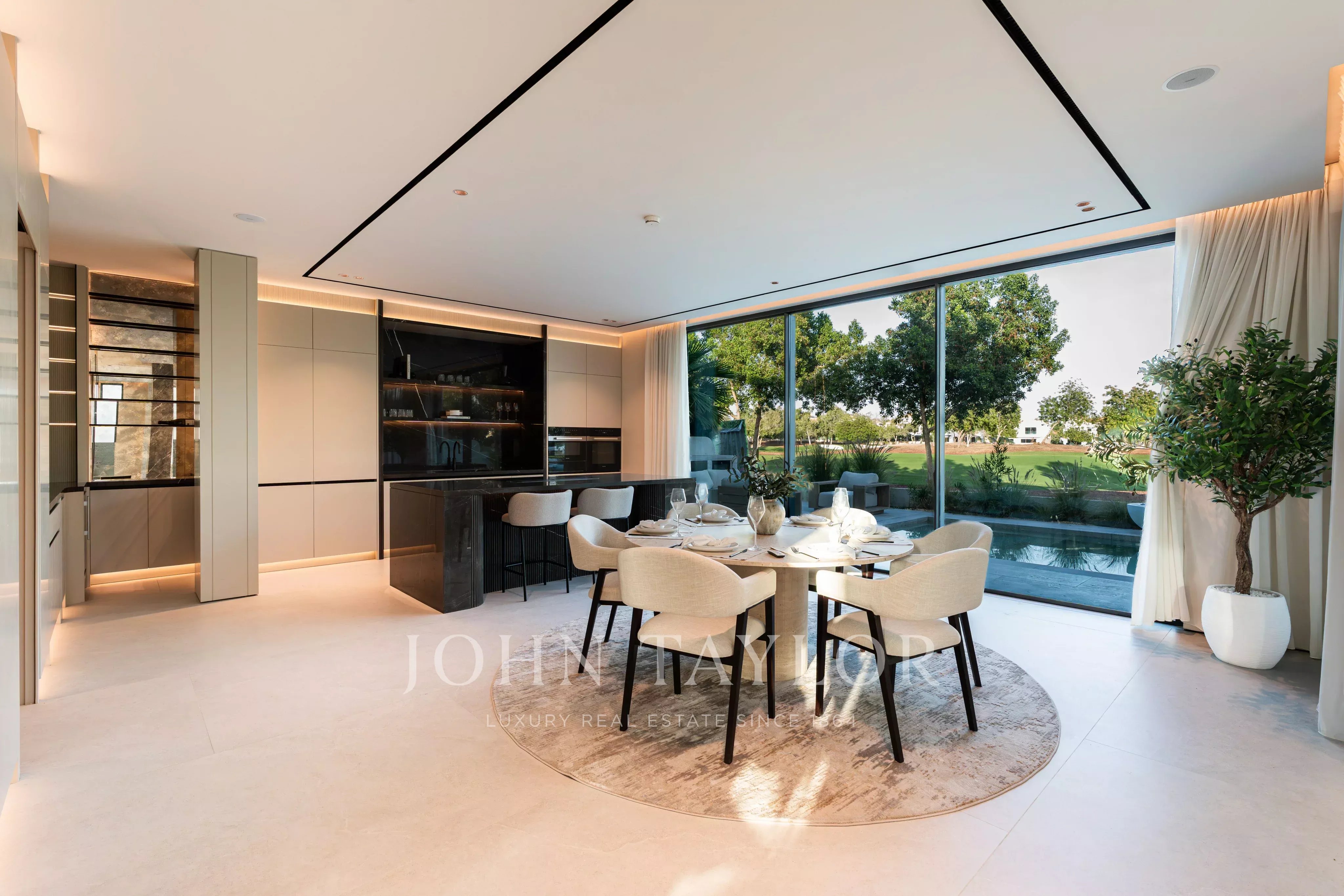 Cette maison exceptionnelle clé en main à Jumeirah Golf Estates affirme sa présence à tous points de vue. S’étendant sur 672 mètres carrés de surface habitable sur un terrain de 711 mètres carrés, cette maison entièrement rénovée et prête à emménager présente des intérieurs inspirés du design scandinave avec des finitions en bois naturel et en travertin, complétés par une intégration domotique.
