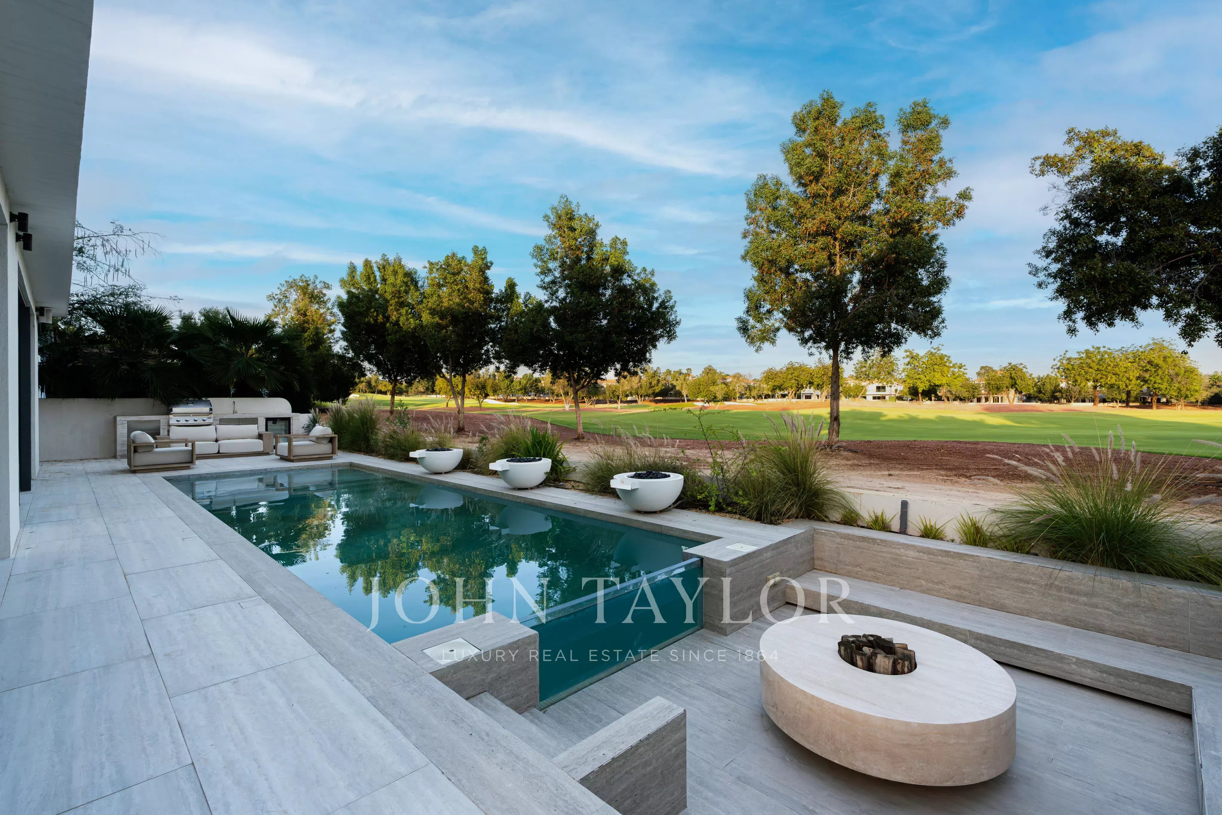 Les espaces extérieurs sont tout aussi impressionnants, conçus pour maximiser à la fois la relaxation et le divertissement. Une piscine à débordement est le point d’ancrage de la terrasse expansive, complétée par un barbecue, un feu de camp et un jardin paysagé.