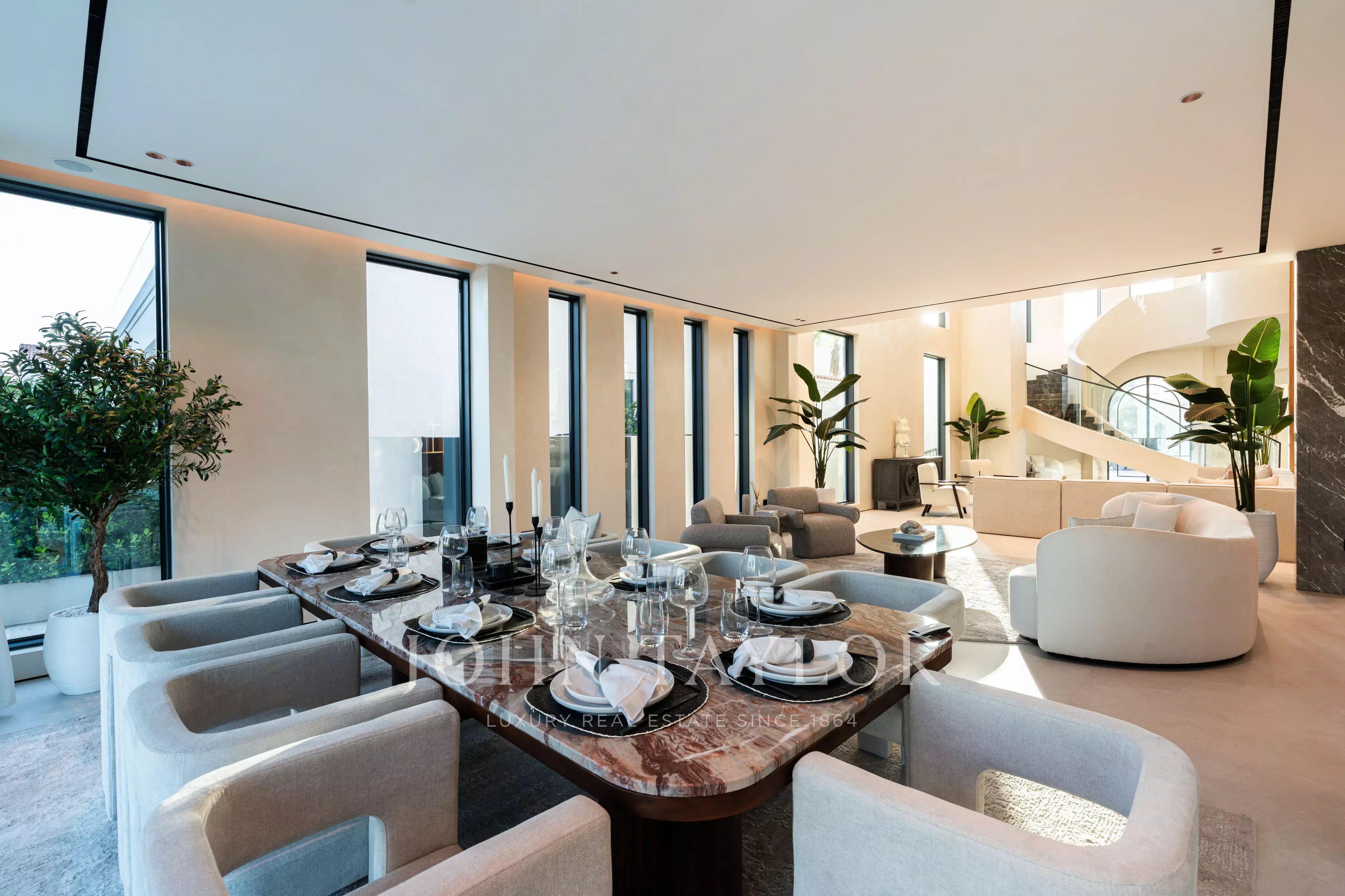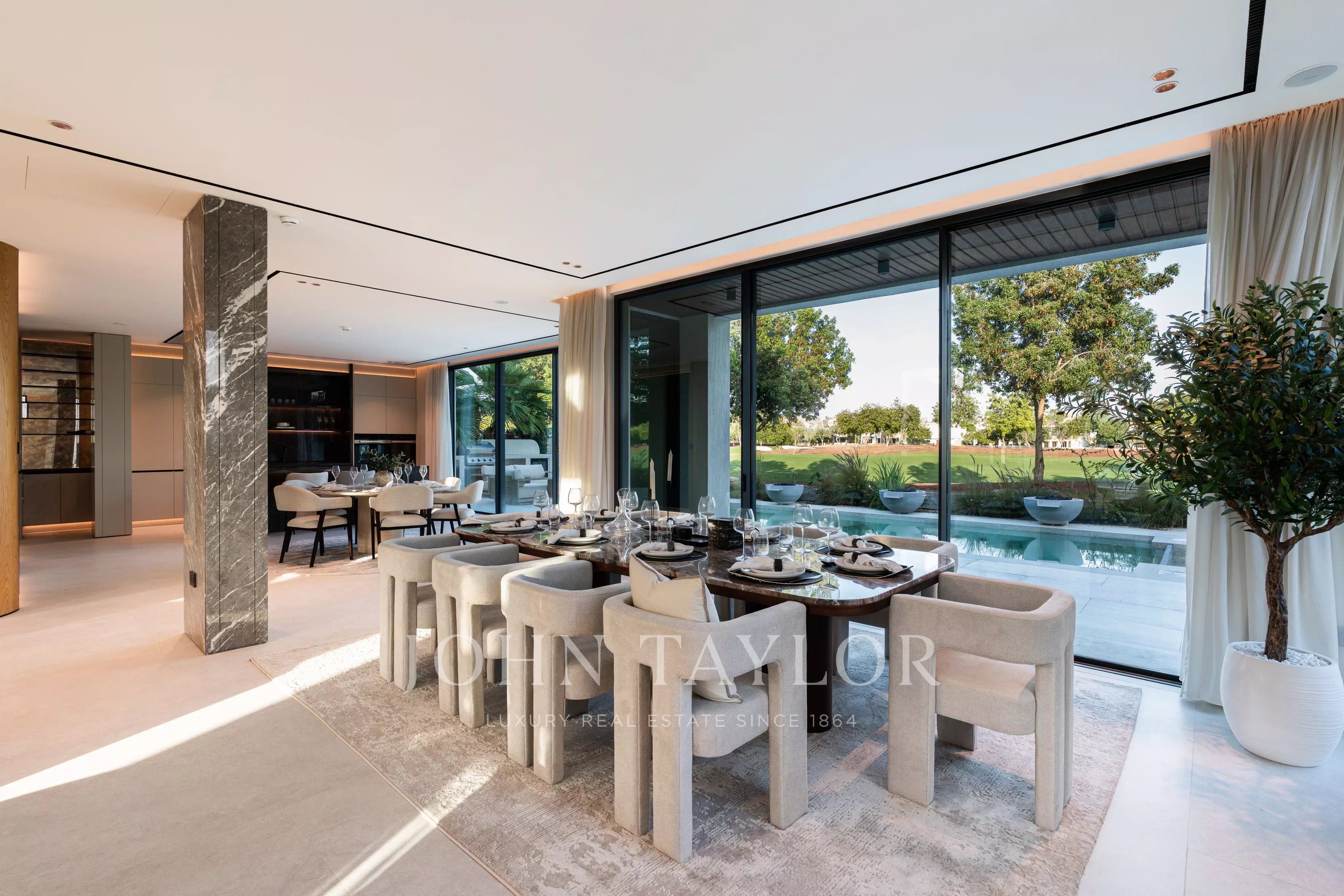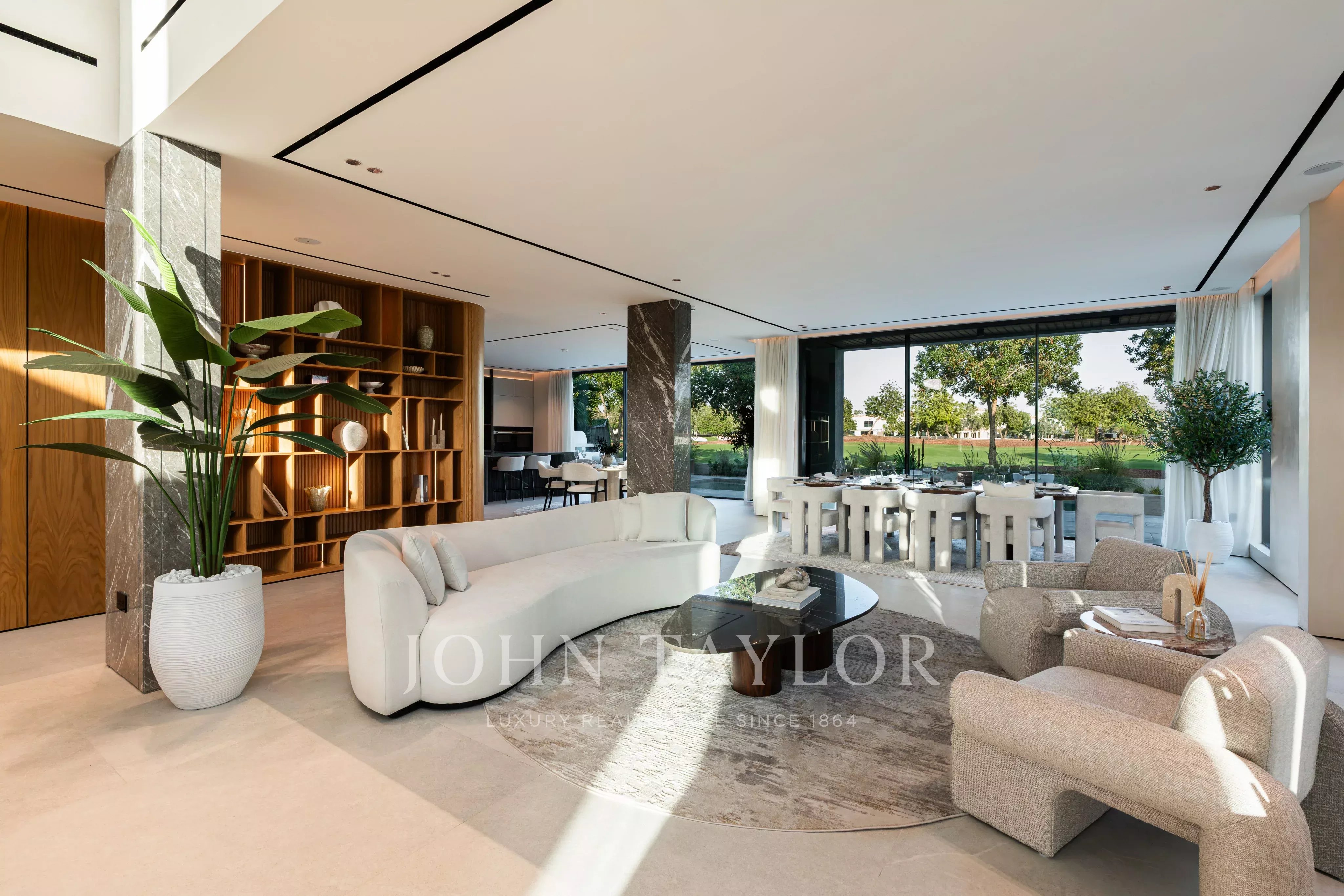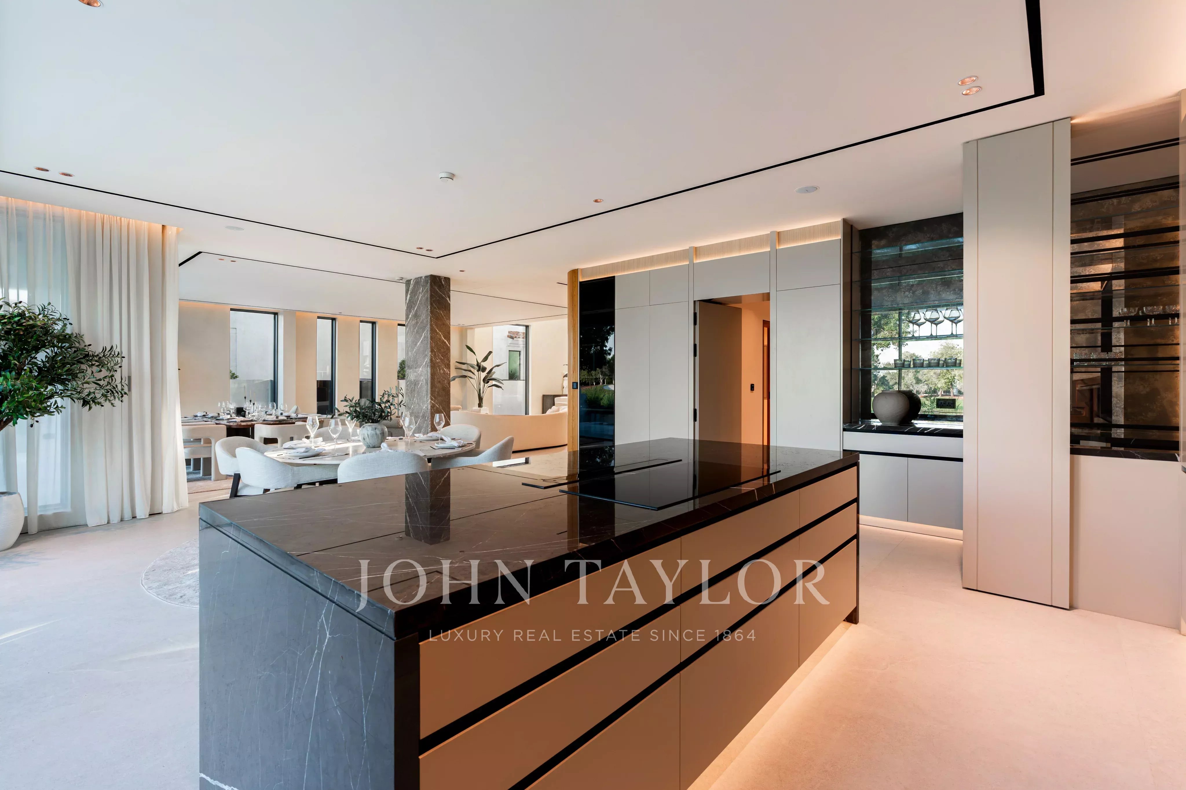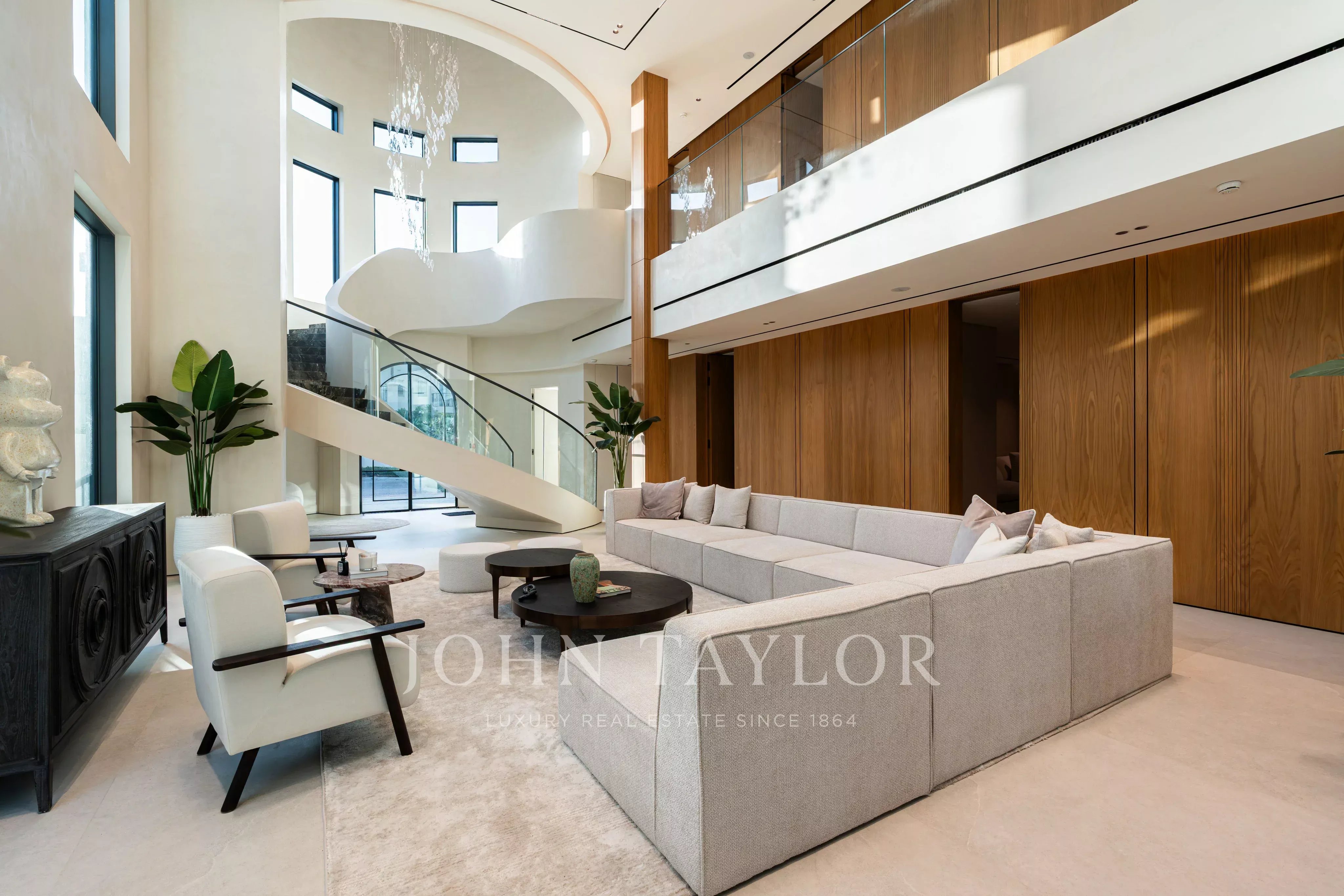 Avec cinq chambres spacieuses et six salles de bain, la maison dispose également de deux places de parking. Cette maison offre une opportunité rare de profiter d’un luxe contemporain dans un cadre vraiment exceptionnel.