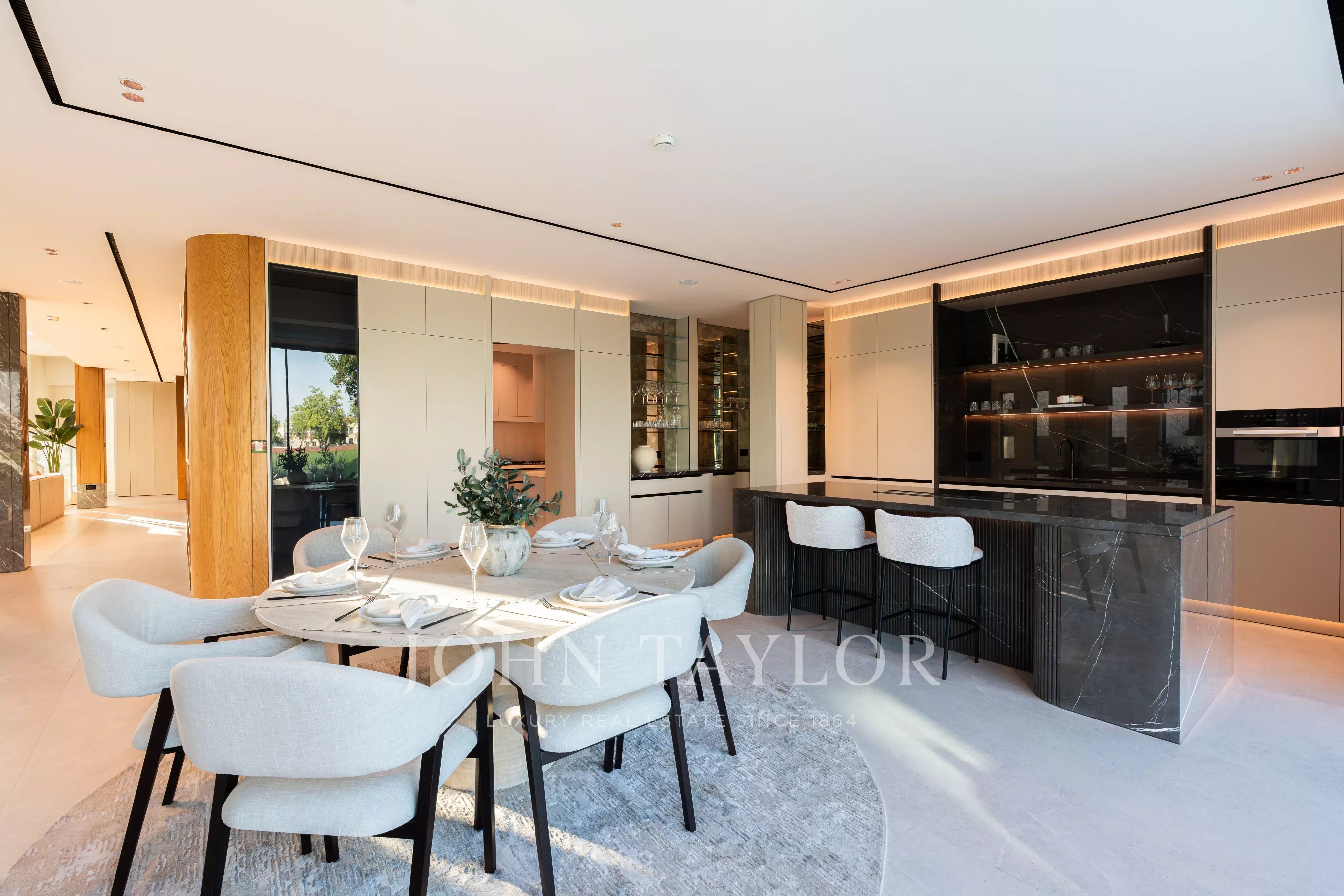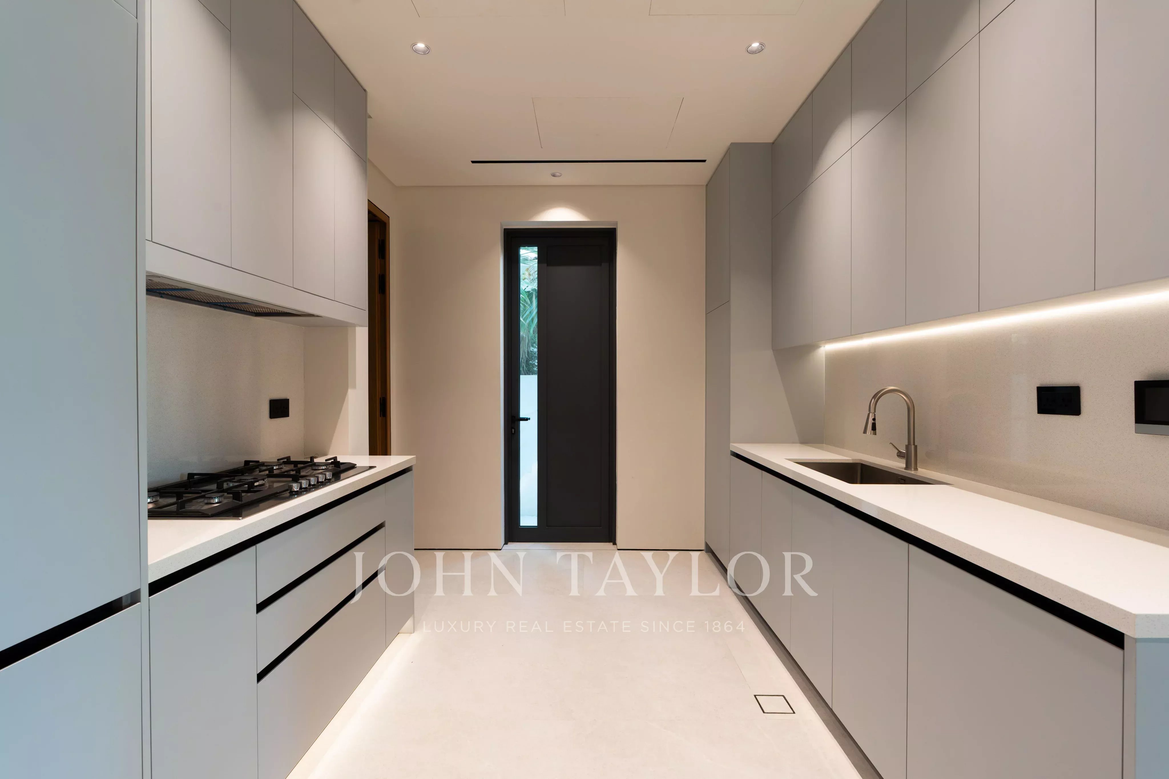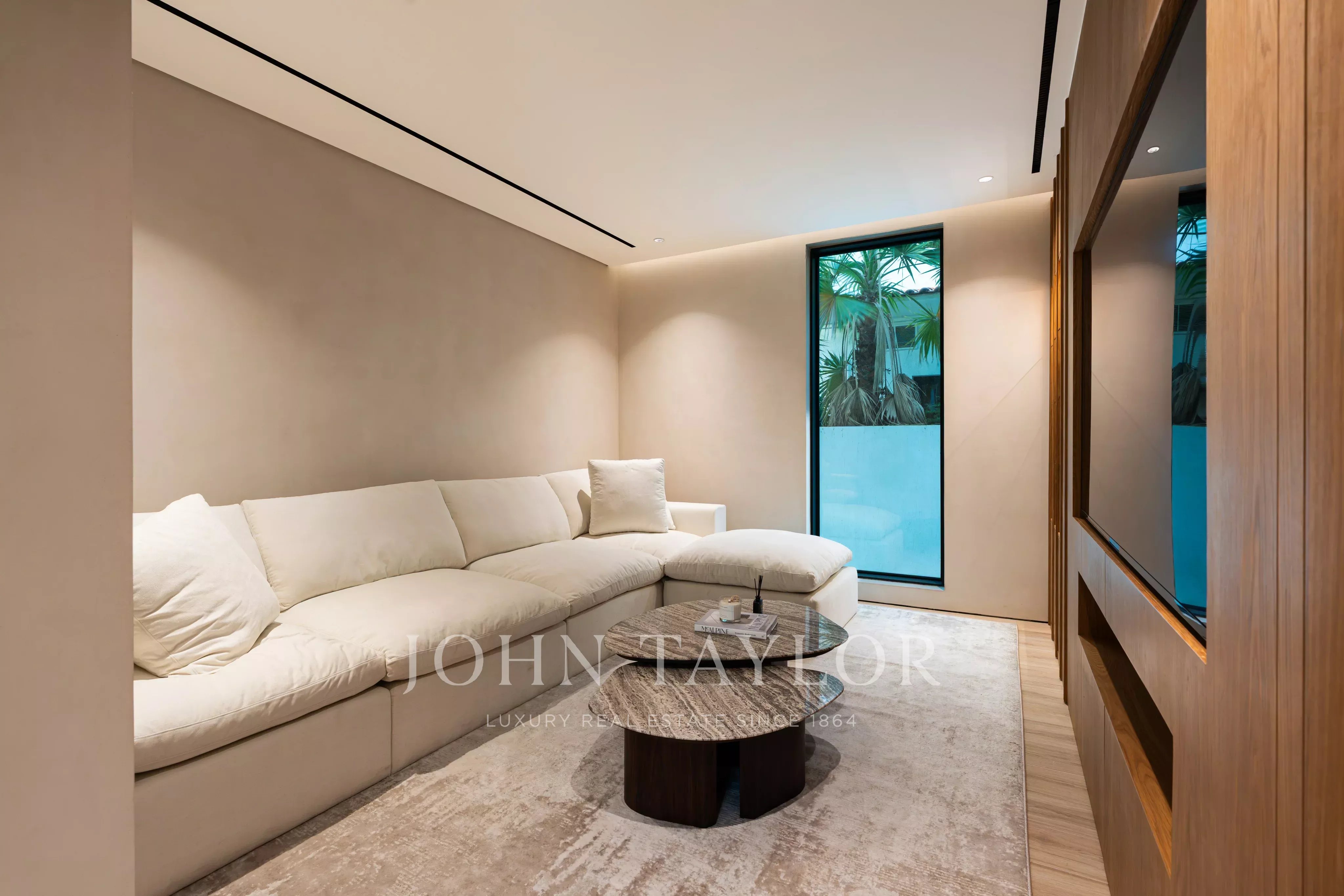 Dès votre entrée, la propriété fait une impression saisissante avec son entrée à double hauteur et son espace de vie spacieux, centré autour d’un escalier circulaire sculptural. Le rez-de-chaussée est conçu pour une vie ouverte et fluide, où le salon principal et la salle à manger s’enchaînent sans effort. Une cuisine d’exposition magnifiquement aménagée avec des appareils Miele est associée à une cuisine de préparation séparée. Ce niveau comprend également une chambre d’amis avec salle de bain attenante, ainsi que des chambres pour la femme de ménage et le chauffeur, plus une zone de buanderie séparée pour plus de commodité.