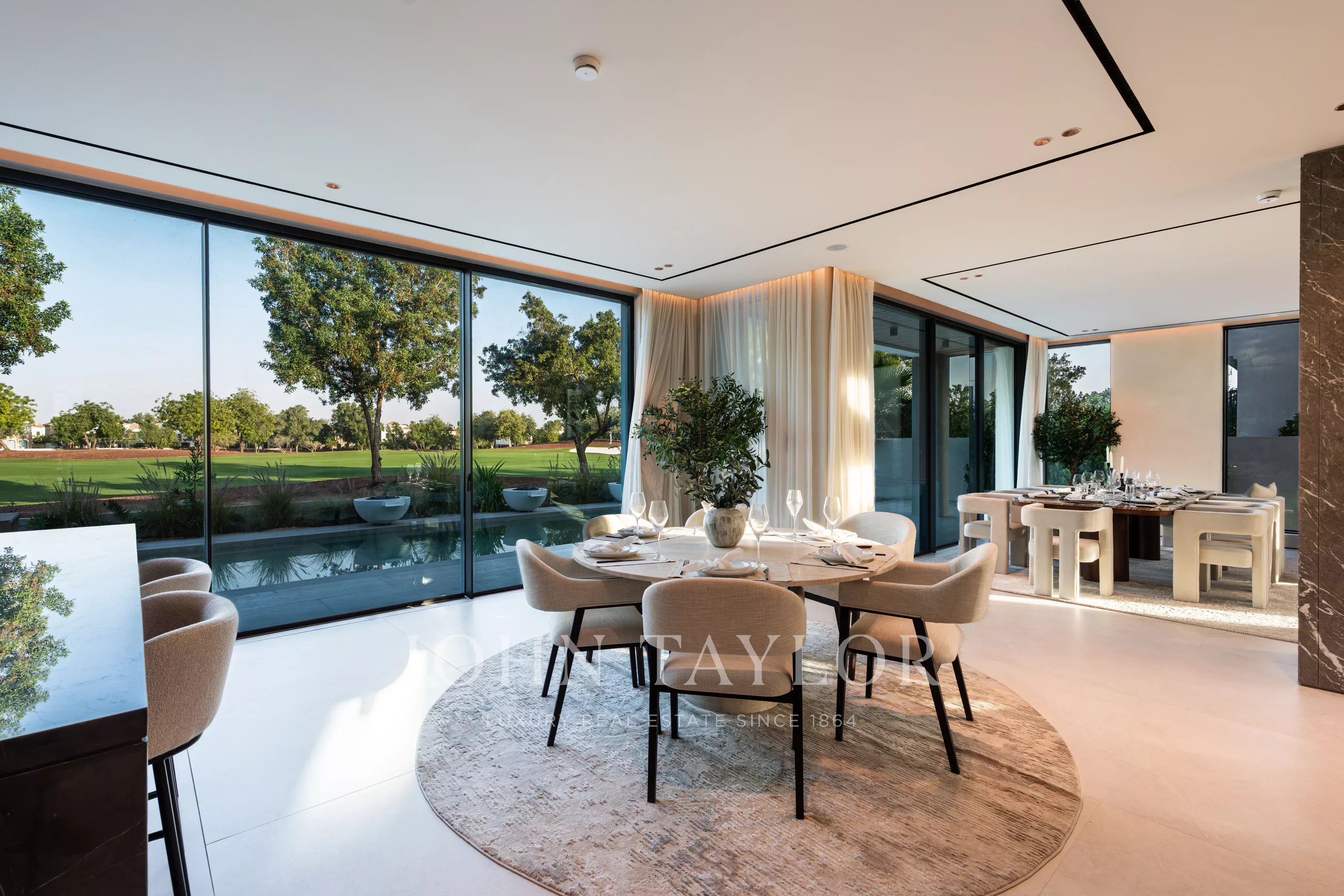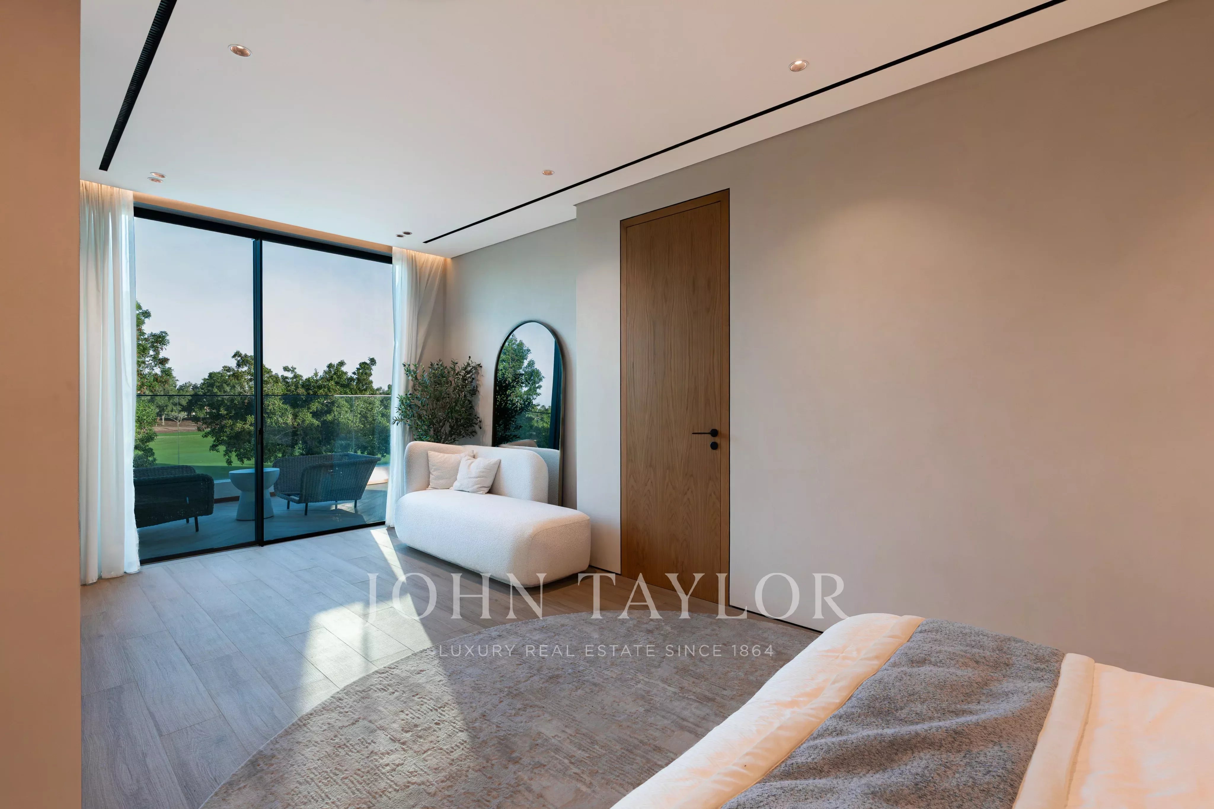 À l’étage, la maison se transforme en un refuge privé pour la famille. Une salle familiale généreuse offre un salon secondaire détendu, tandis que quatre chambres avec salle de bain attenante offrent confort et intimité à tous les résidents. La suite principale est un véritable sanctuaire, dotée d’un dressing, d’une salle de bain luxueuse et d’un balcon privé donnant sur le prestigieux parcours de golf Earth, offrant des vues paisibles et ininterrompues.