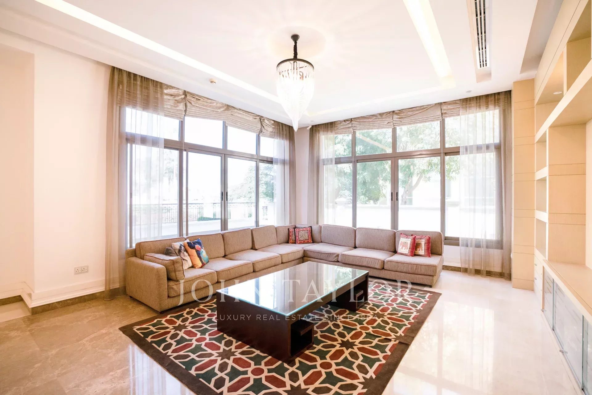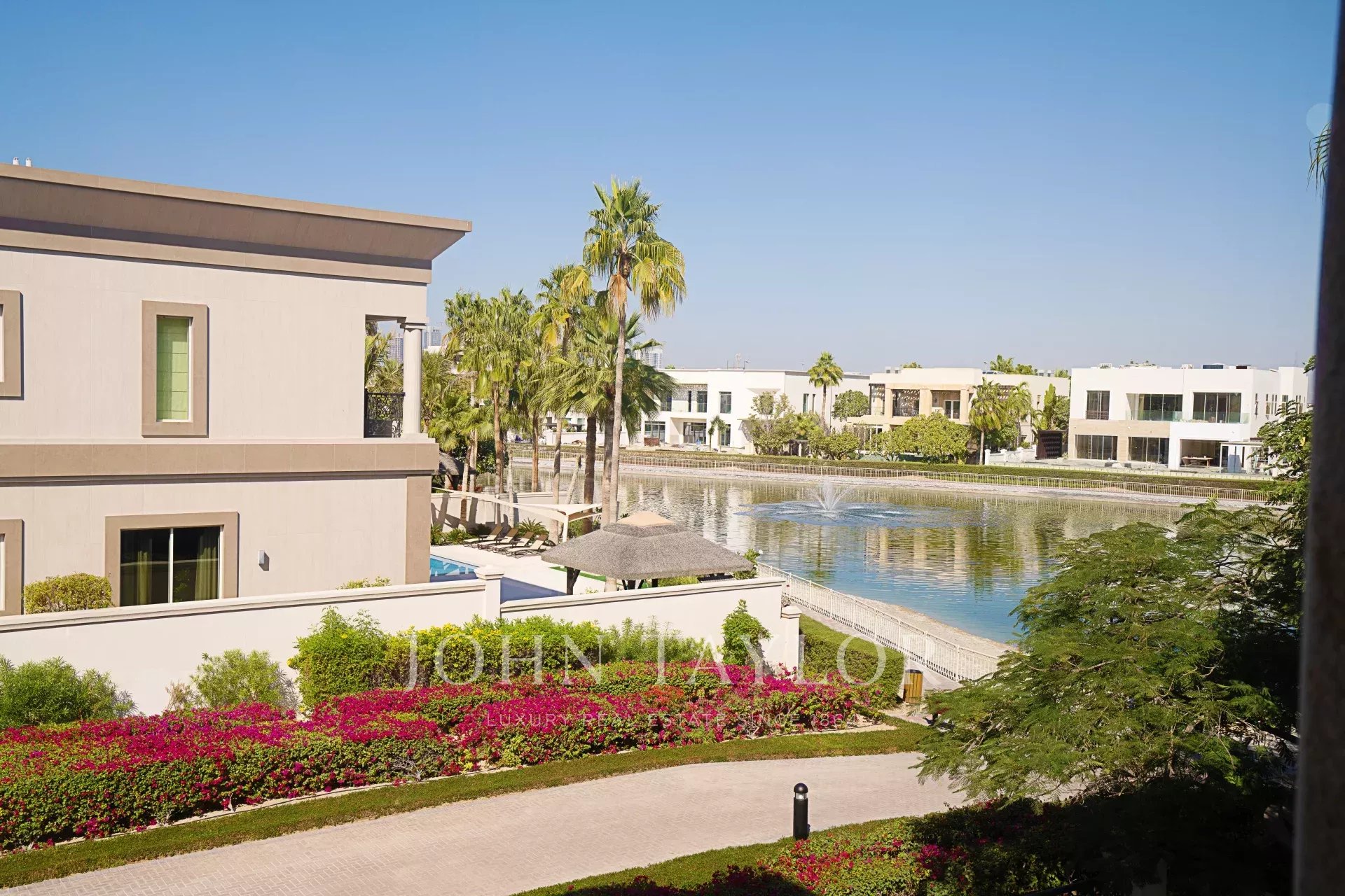 Située à Emirates Hills, la communauté fermée la plus exclusive de Dubaï, cette villa bénéficie d'un emplacement de choix avec une vue sereine sur le lac, tout en étant à quelques minutes d'équipements de classe mondiale, de terrains de golf et d'une vie urbaine animée.