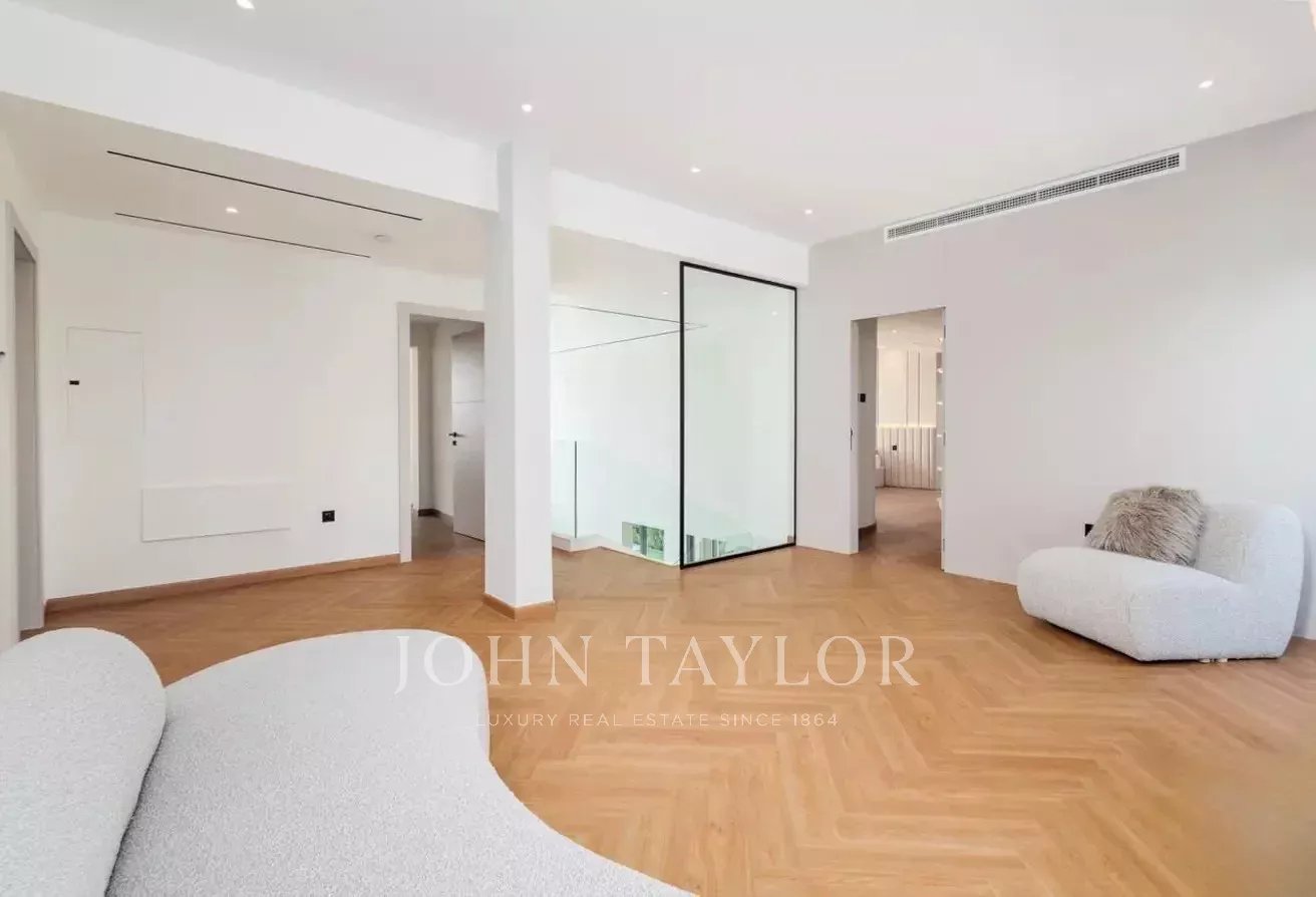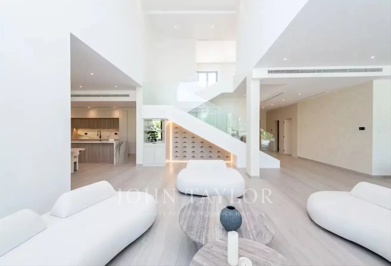 John Taylor Dubaï est fier de présenter cette villa de cinq chambres entièrement rénovée et agrandie dans la prestigieuse communauté des îles Jumeirah. Cette résidence de luxe de 576 m² allie harmonieusement sophistication moderne et élégance intemporelle.