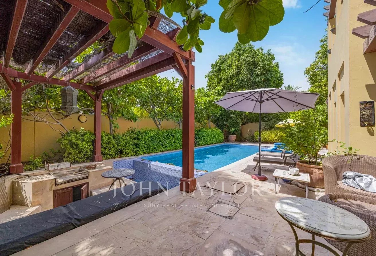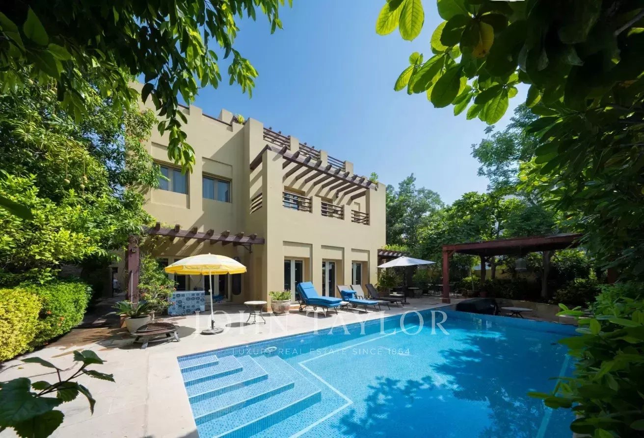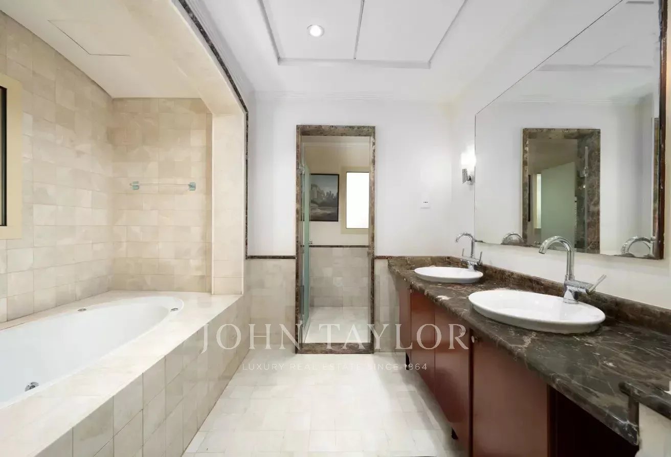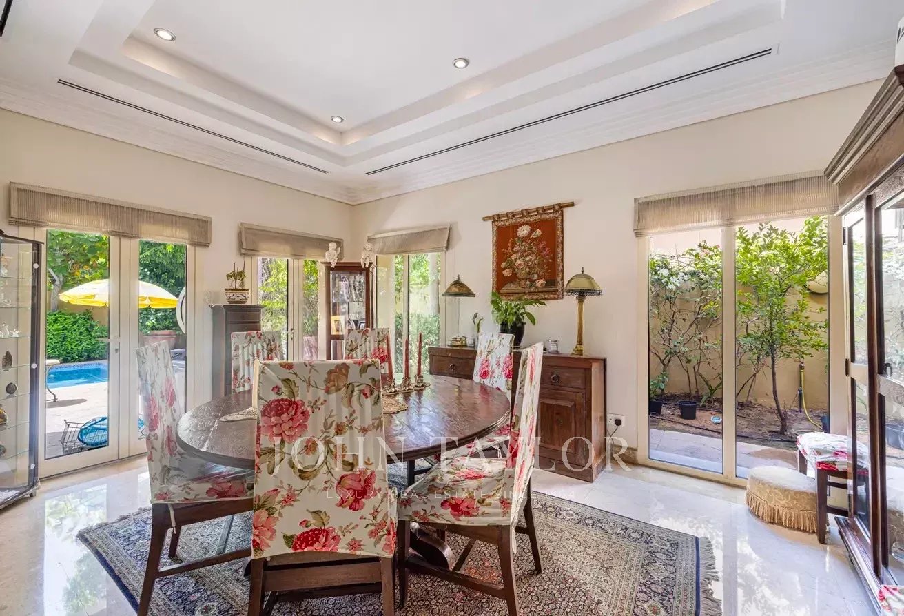 D'une superficie d'environ 6 000 m², la villa comprend cinq chambres avec salle de bains, une cuisine ouverte, trois salles de réception spacieuses, une chambre de bonne et un grand hall d'entrée. Le jardin magnifiquement aménagé comprend une piscine privée et une salle à manger extérieure, idéale pour se détendre et recevoir.