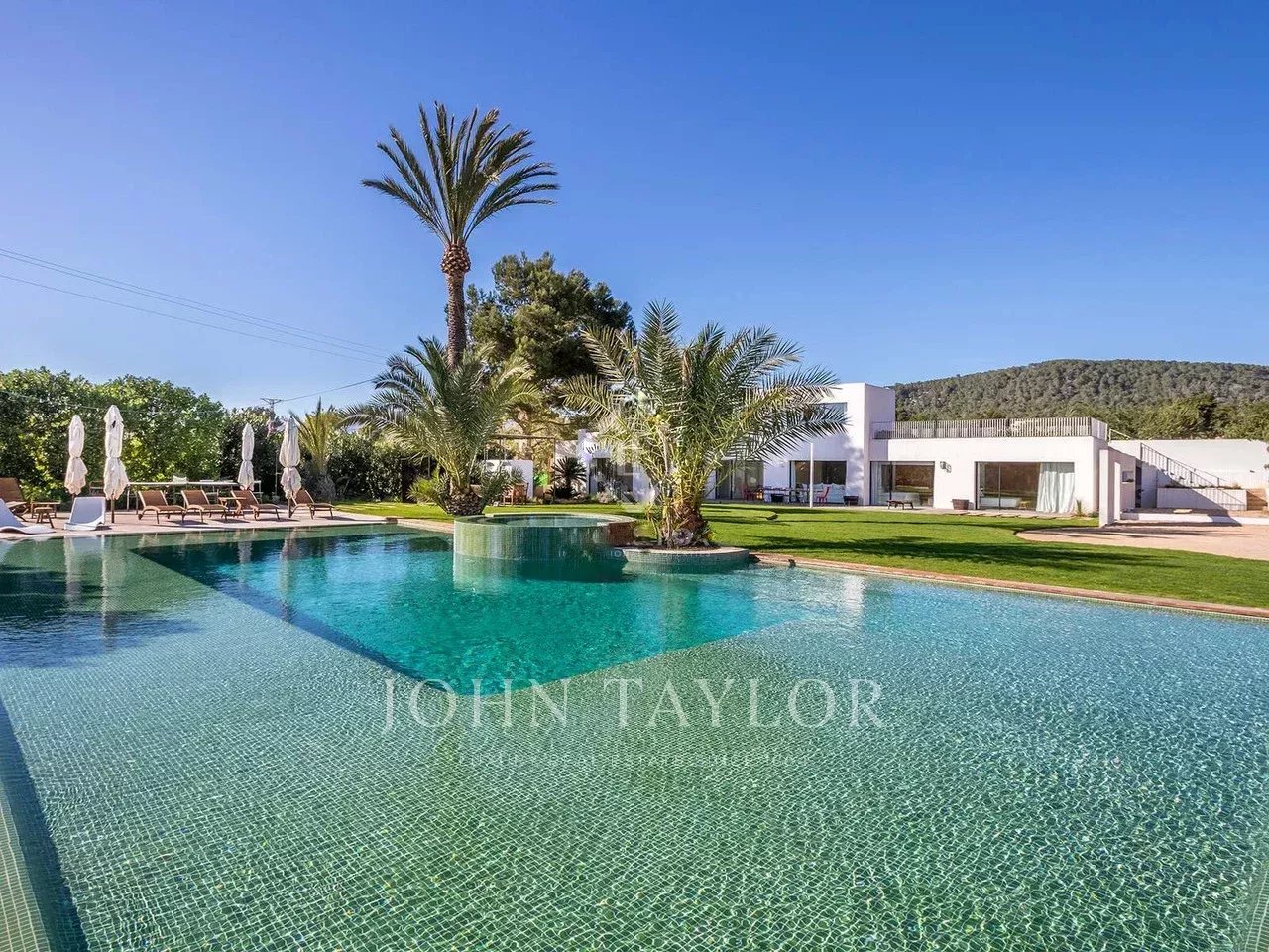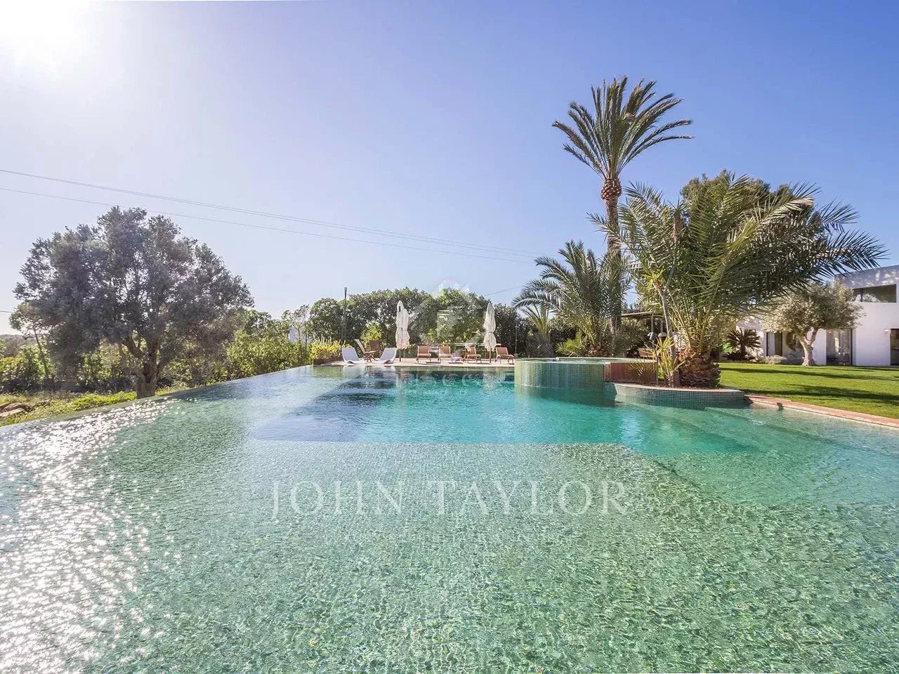 Entourée d'un jardin plat avec pelouse naturelle et une piscine carrelée en émeraude, cette propriété baignée de lumière respire la sérénité et l'élégance.