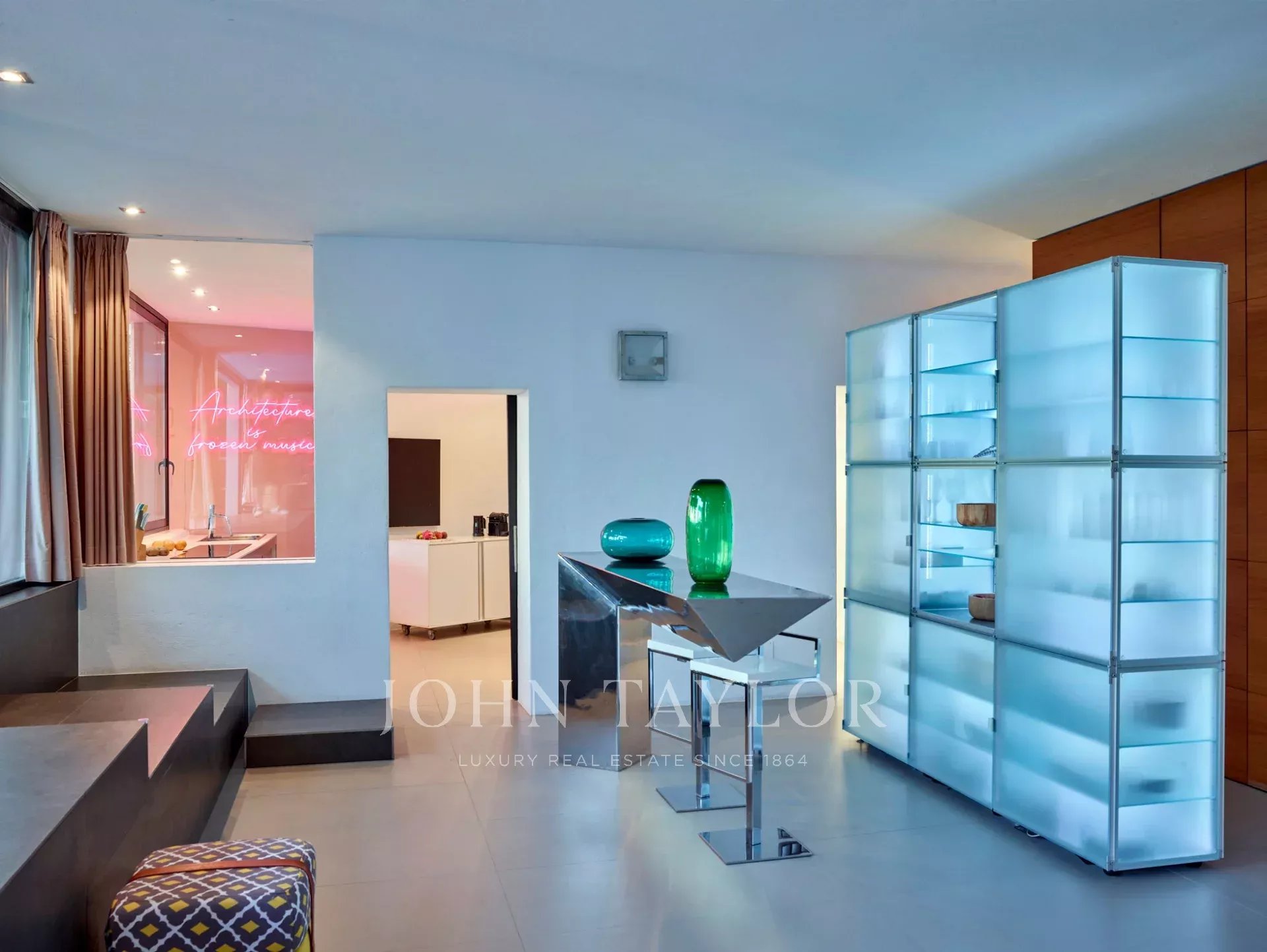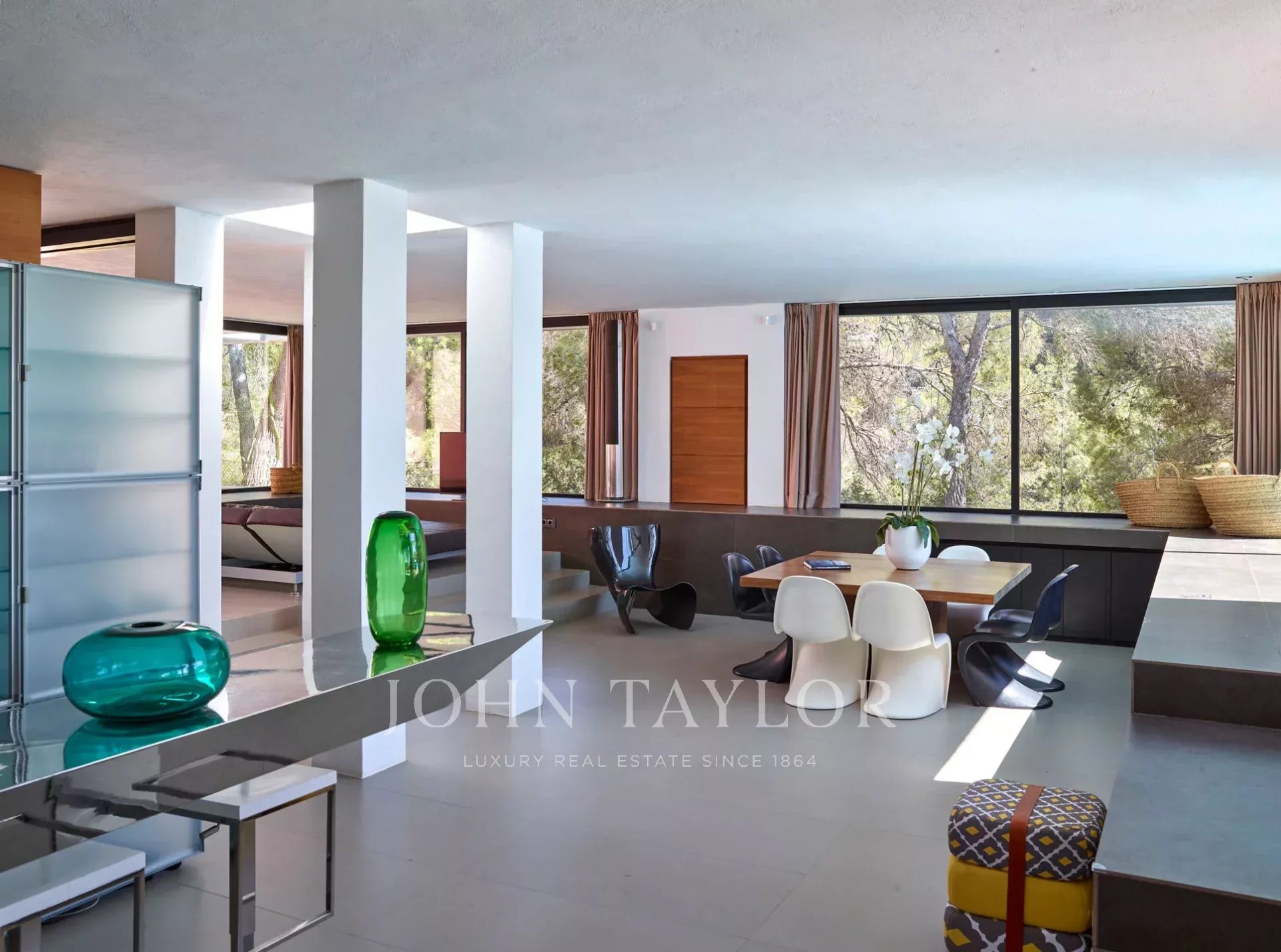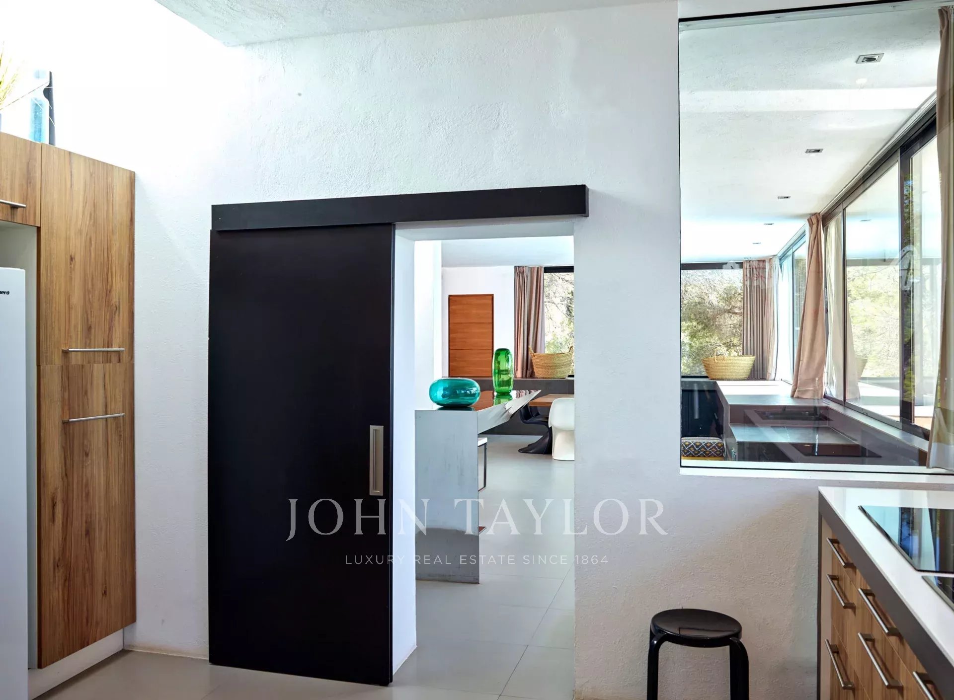 Cette impressionnante villa moderne est située dans la partie est d'Ibiza, près des célèbres plages de Cala D'Hort et Cala Vadella, entourée de nature méditerranéenne et de pins. Située sur une colline calme et privée, cette perle cachée offre une vue spectaculaire sur la mer et les couchers de soleil, idéale pour profiter de moments inoubliables sur l'île. À seulement quelques minutes du charmant village de San José, la propriété combine élégance, tranquillité et un cadre naturel incomparable.