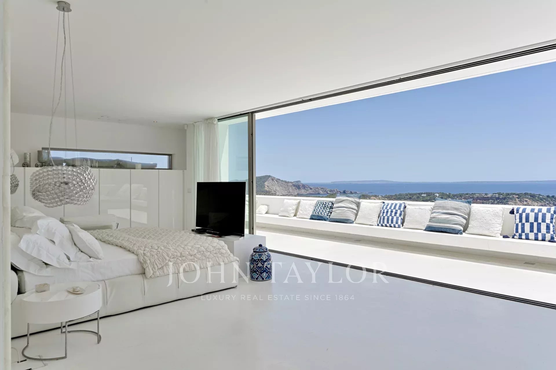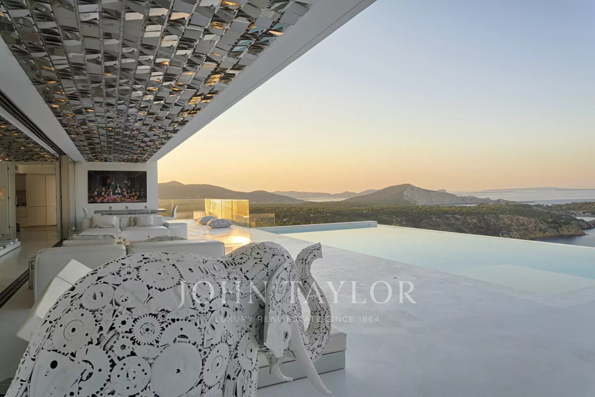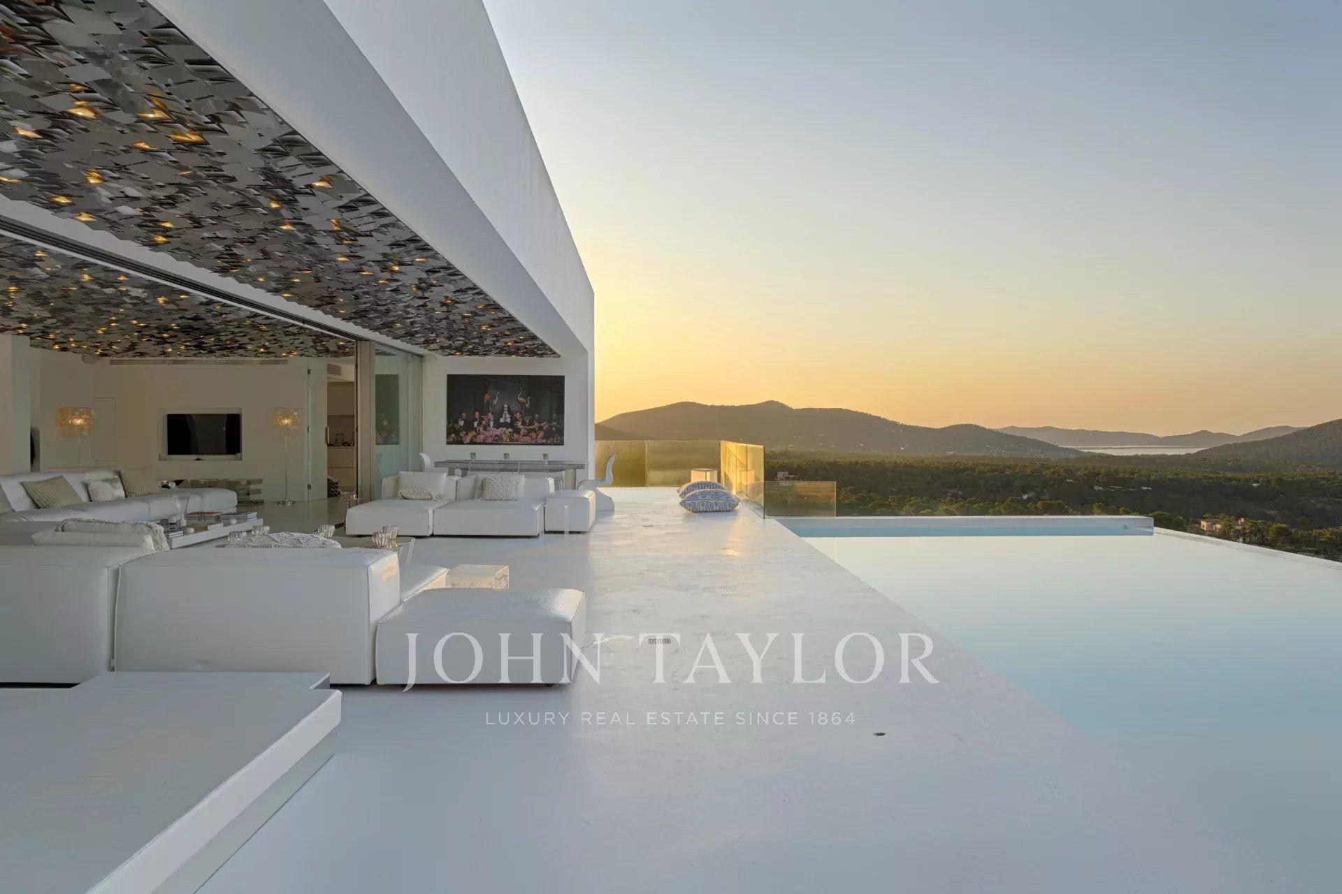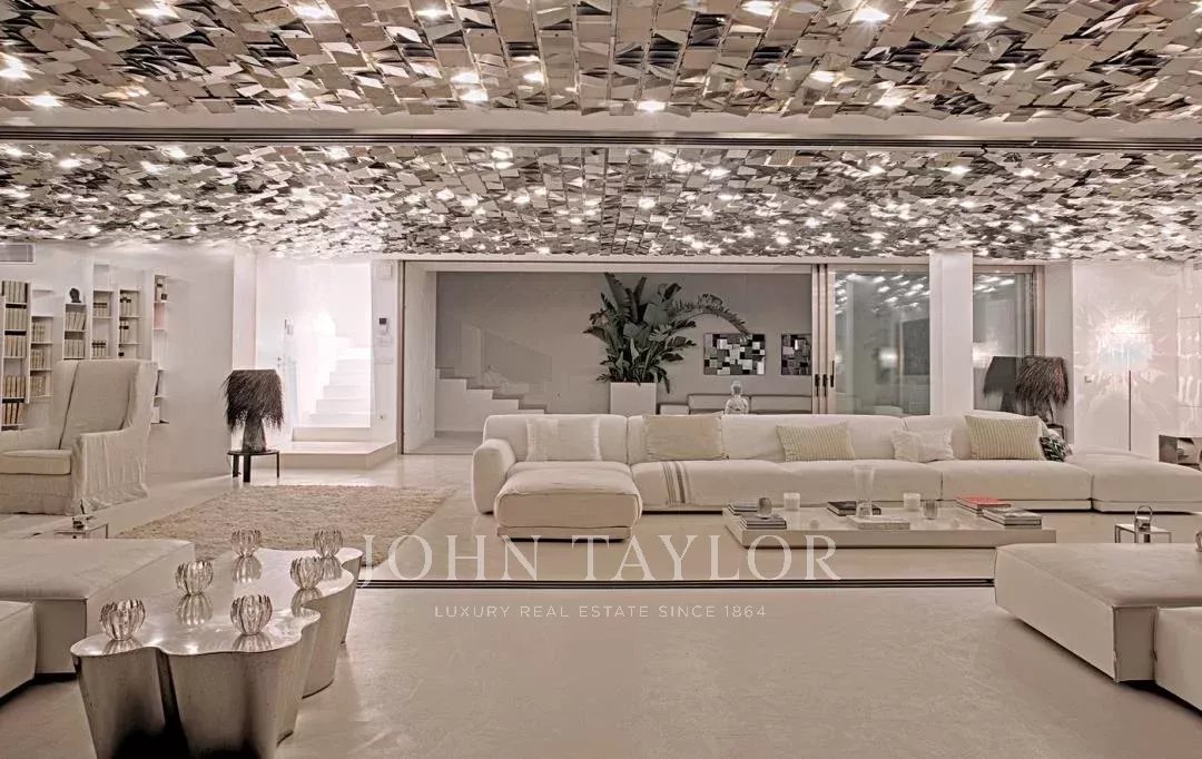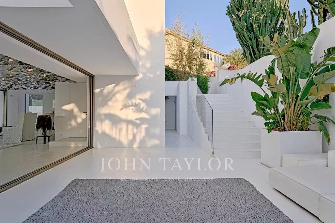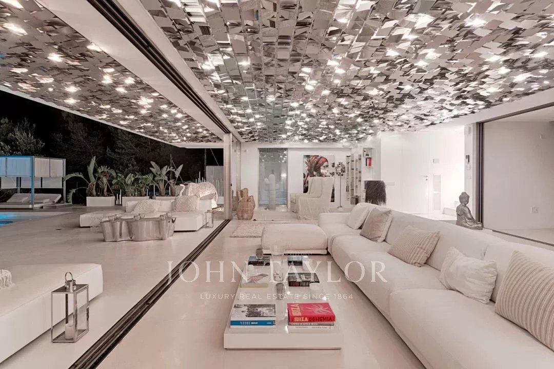 Elégante résidence située dans le distingué condominium Vista Alegre, l'une des plus prestigieuses communautés fermées d'Ibiza, connue pour sa sécurité et sa surveillance 24 heures sur 24. Stratégiquement positionnée au sommet d'une montagne, cette propriété offre des vues panoramiques inégalées sur la mer Méditerranée scintillante, ainsi que sur les charmants paysages de Formentera et les villes pittoresques d'Es Cubells, Salinas et Porroig.