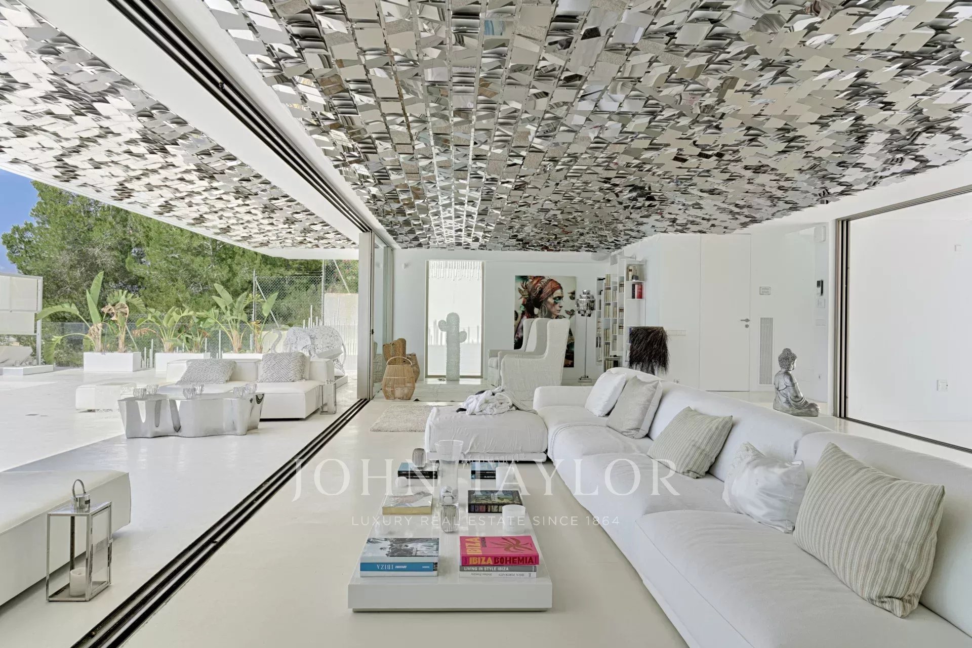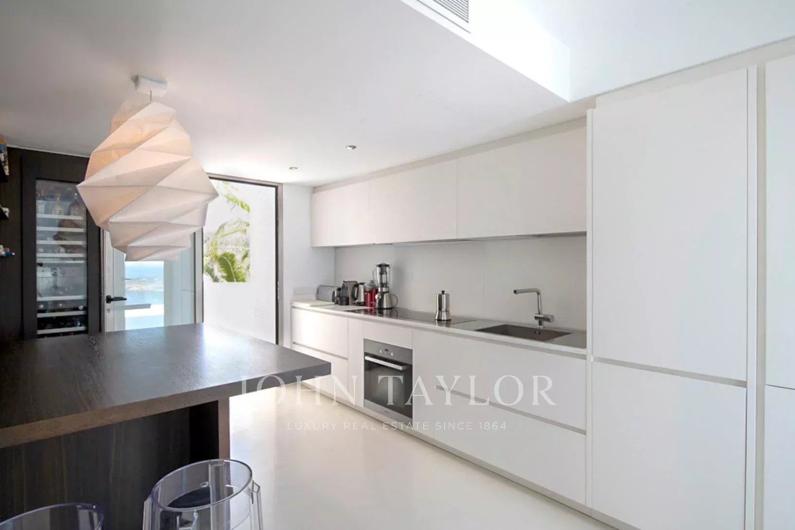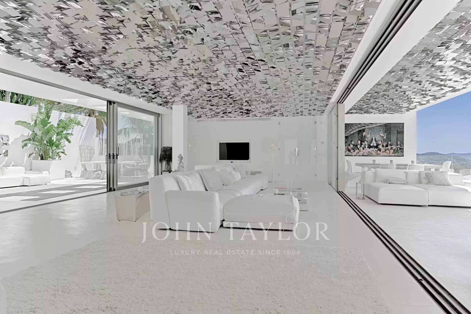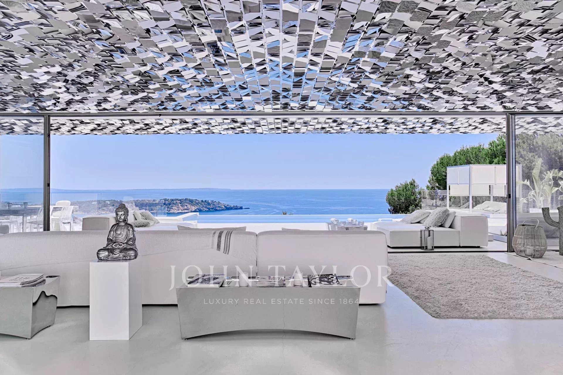 Elégante résidence située dans le distingué condominium Vista Alegre, l'une des plus prestigieuses communautés fermées d'Ibiza, connue pour sa sécurité et sa surveillance 24 heures sur 24. Stratégiquement positionnée au sommet d'une montagne, cette propriété offre des vues panoramiques inégalées sur la mer Méditerranée scintillante, ainsi que sur les charmants paysages de Formentera et les villes pittoresques d'Es Cubells, Salinas et Porroig.