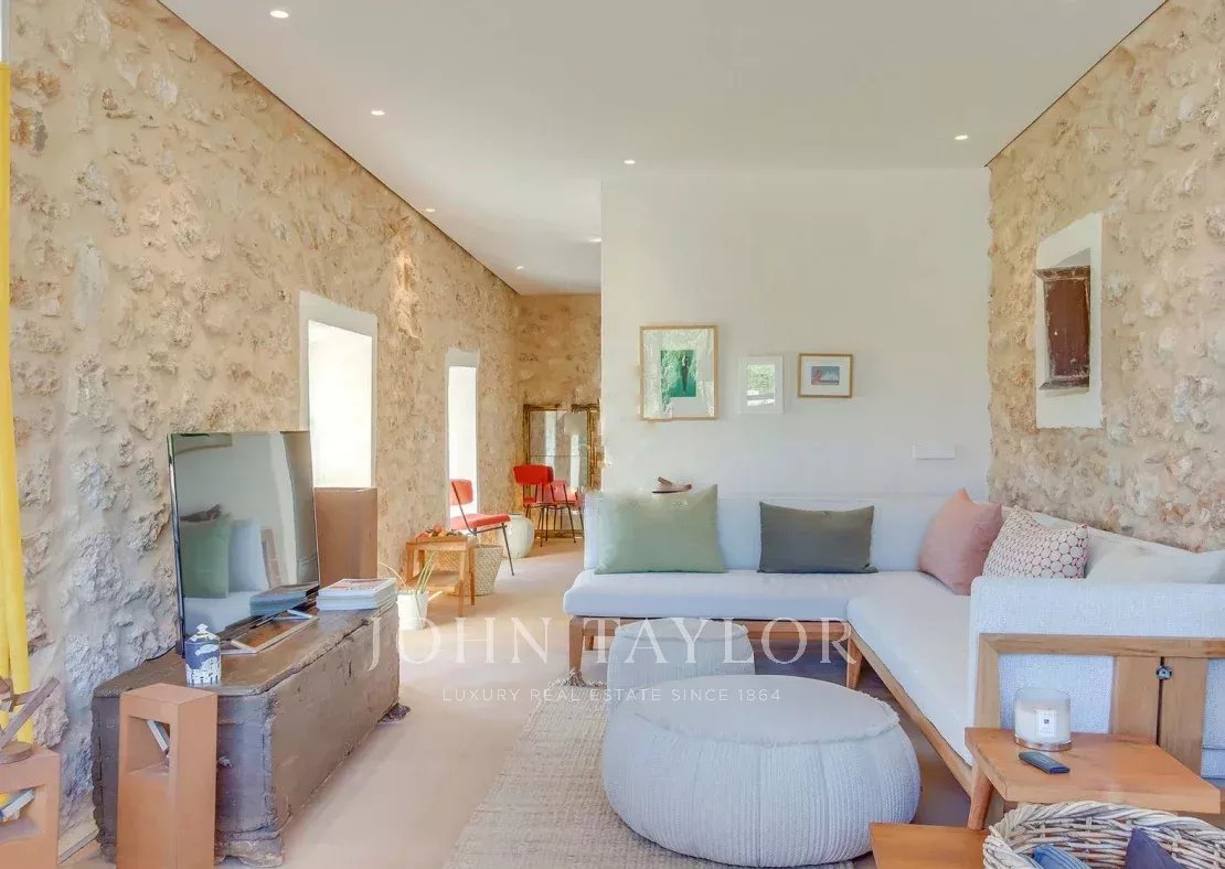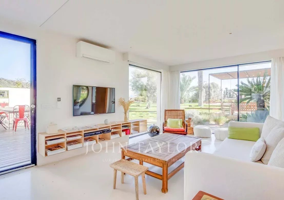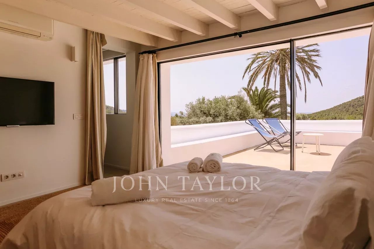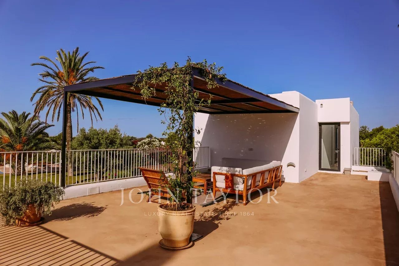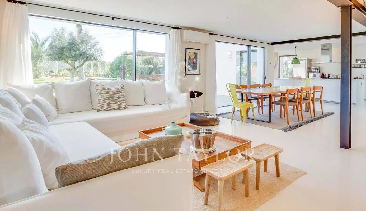 Située à quelques minutes seulement des plages prisées de Sa Caleta et Cala Jondal, cette villa offre un refuge paisible après une journée au soleil ou un après-midi dans les lieux les plus exclusifs de l'île.