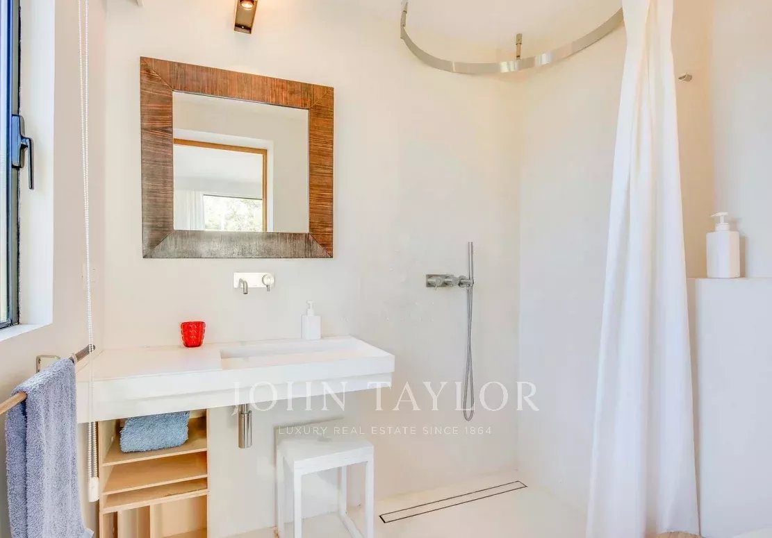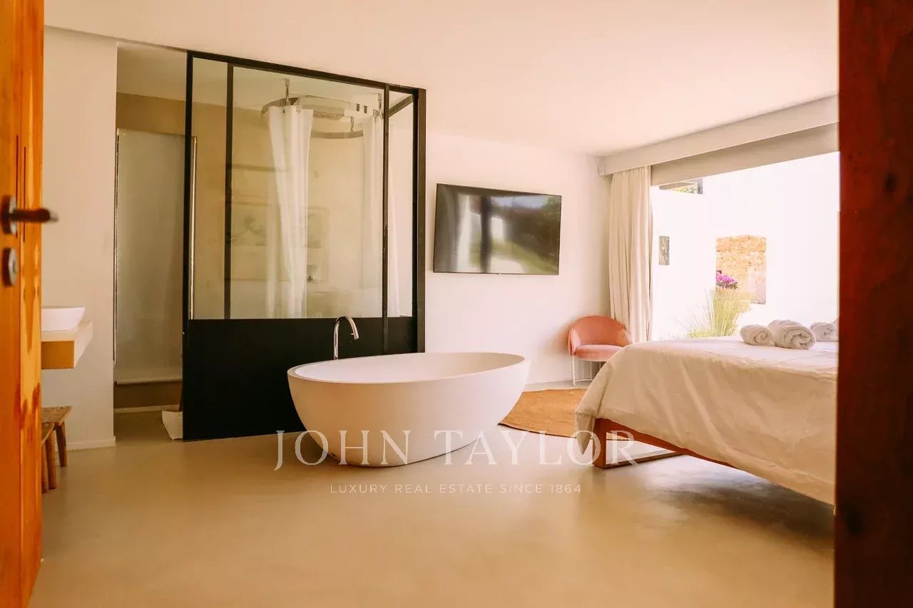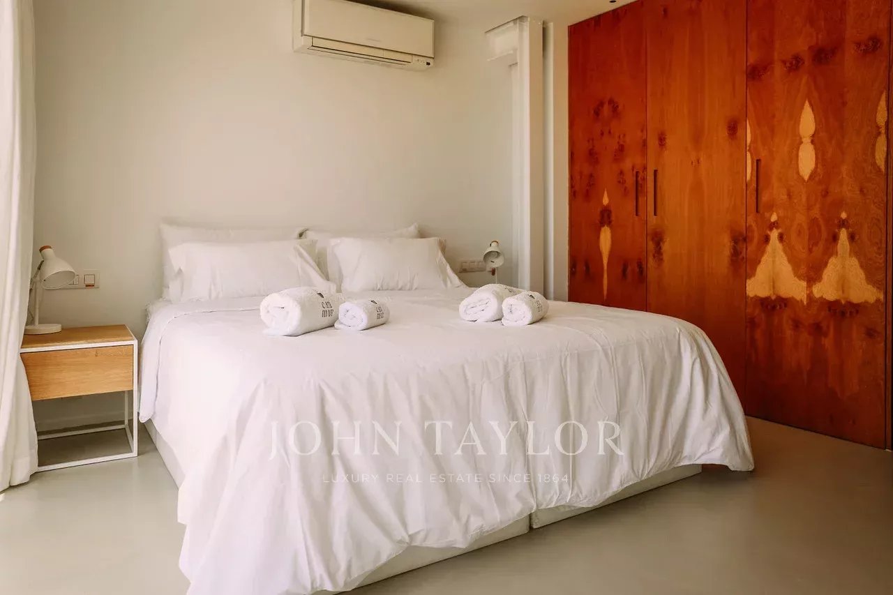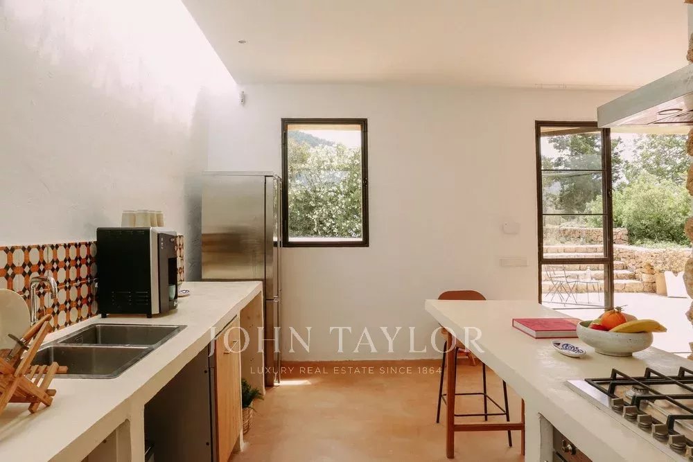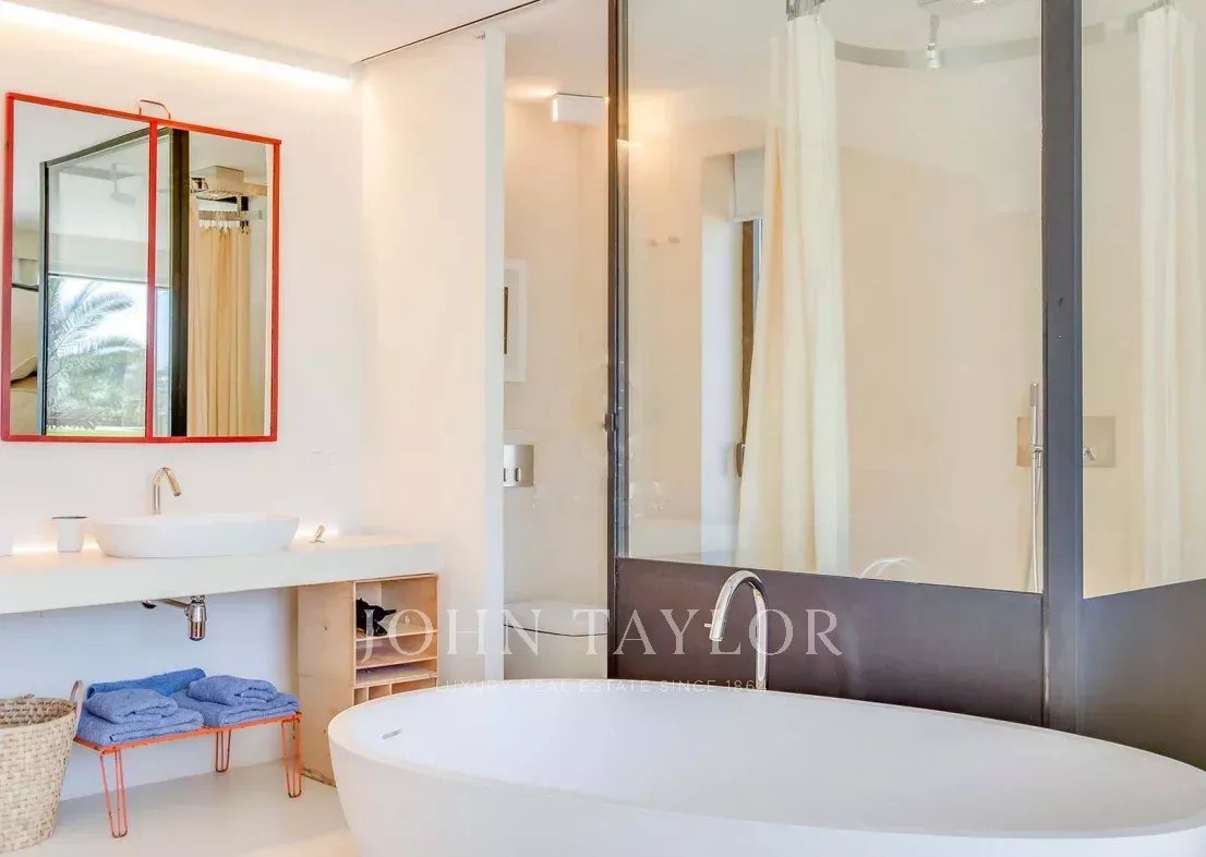 Située à quelques minutes seulement des plages prisées de Sa Caleta et Cala Jondal, cette villa offre un refuge paisible après une journée au soleil ou un après-midi dans les lieux les plus exclusifs de l'île.