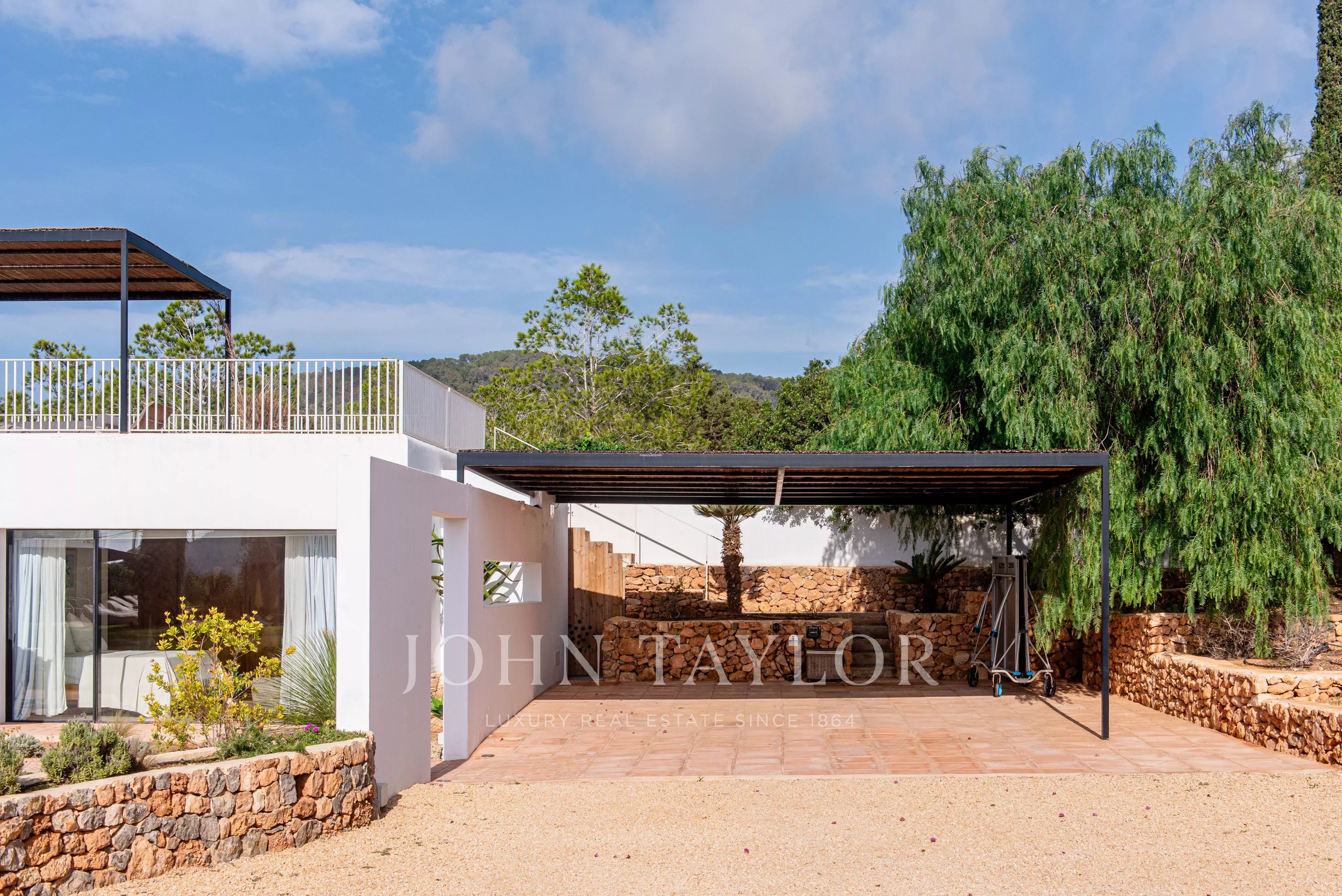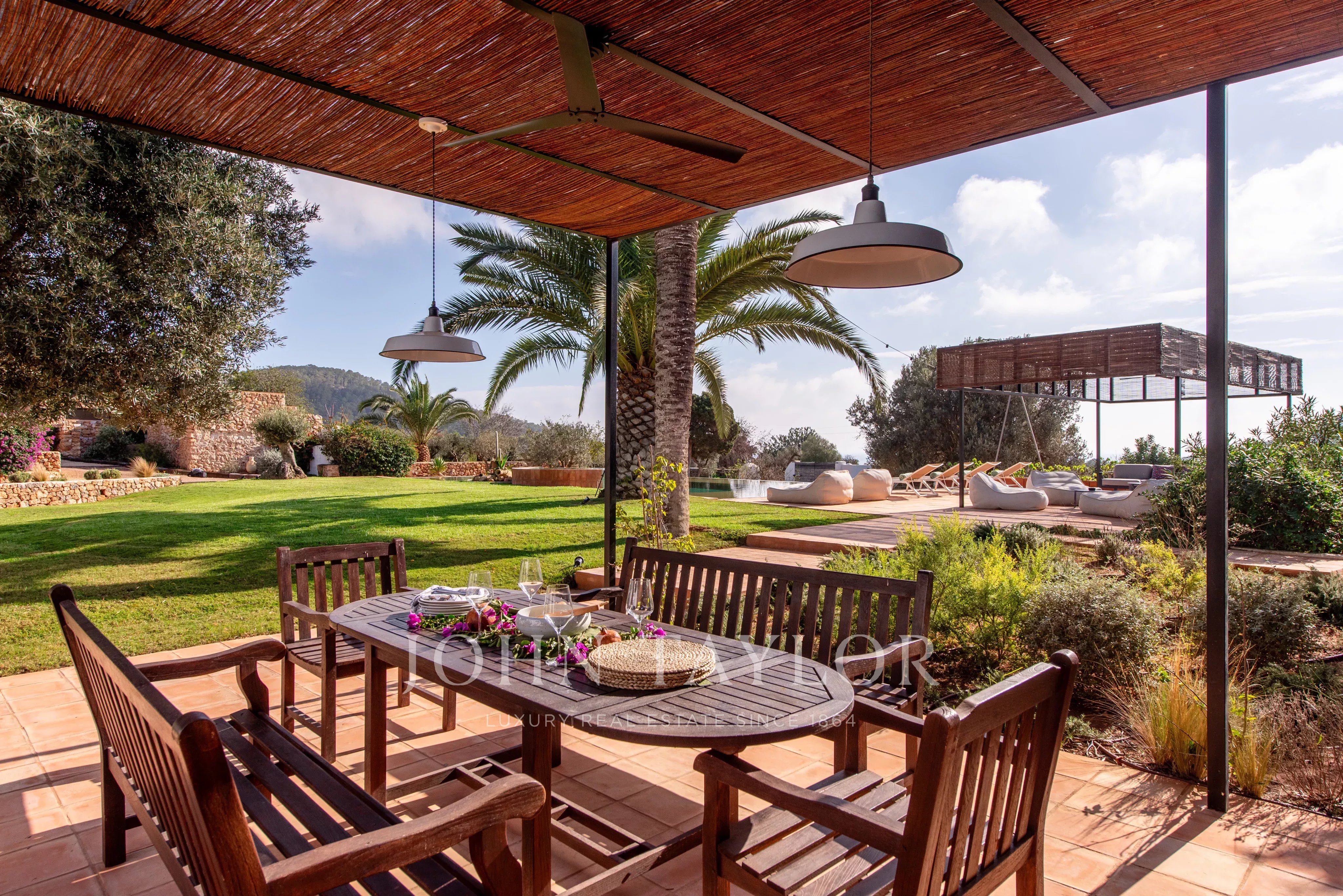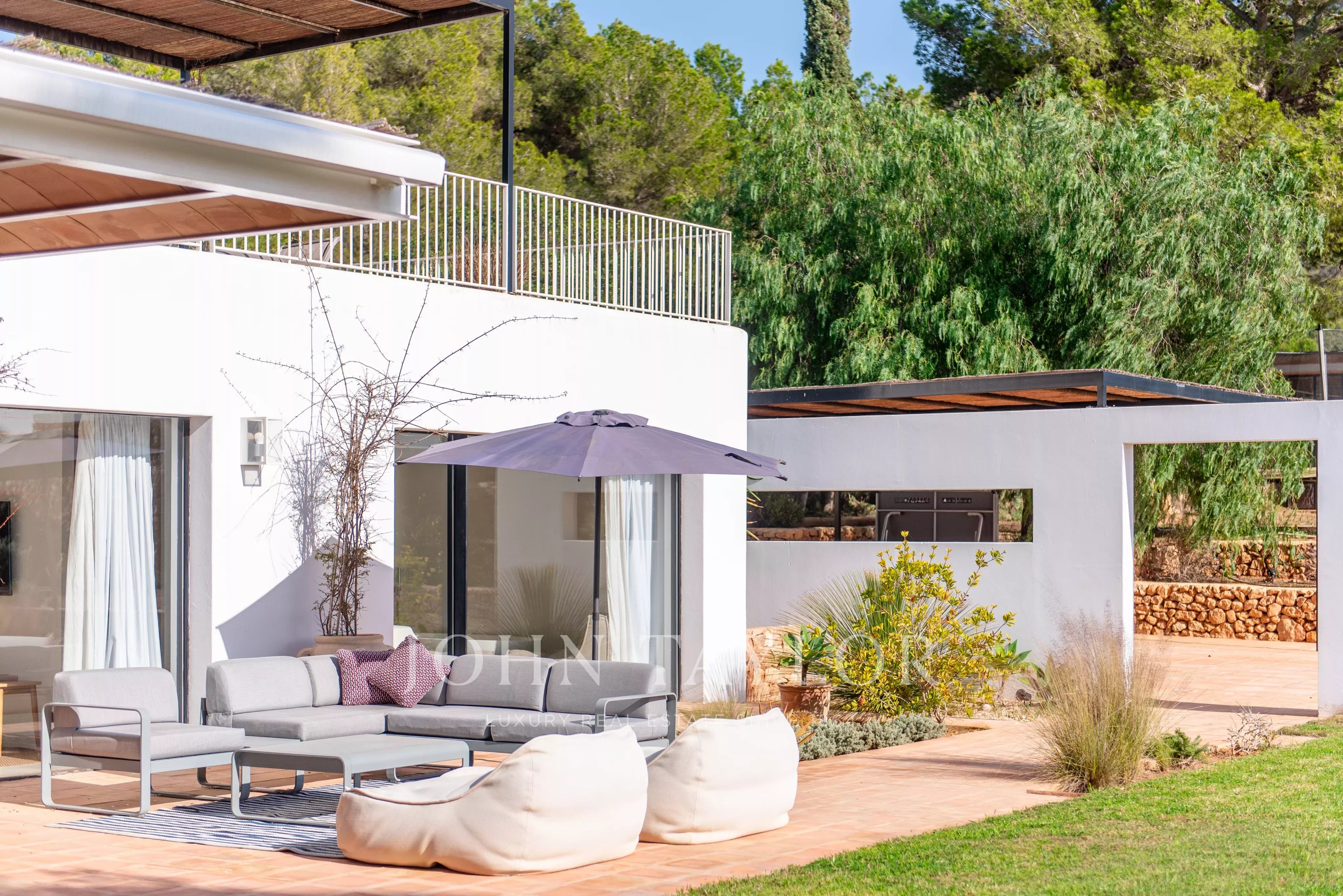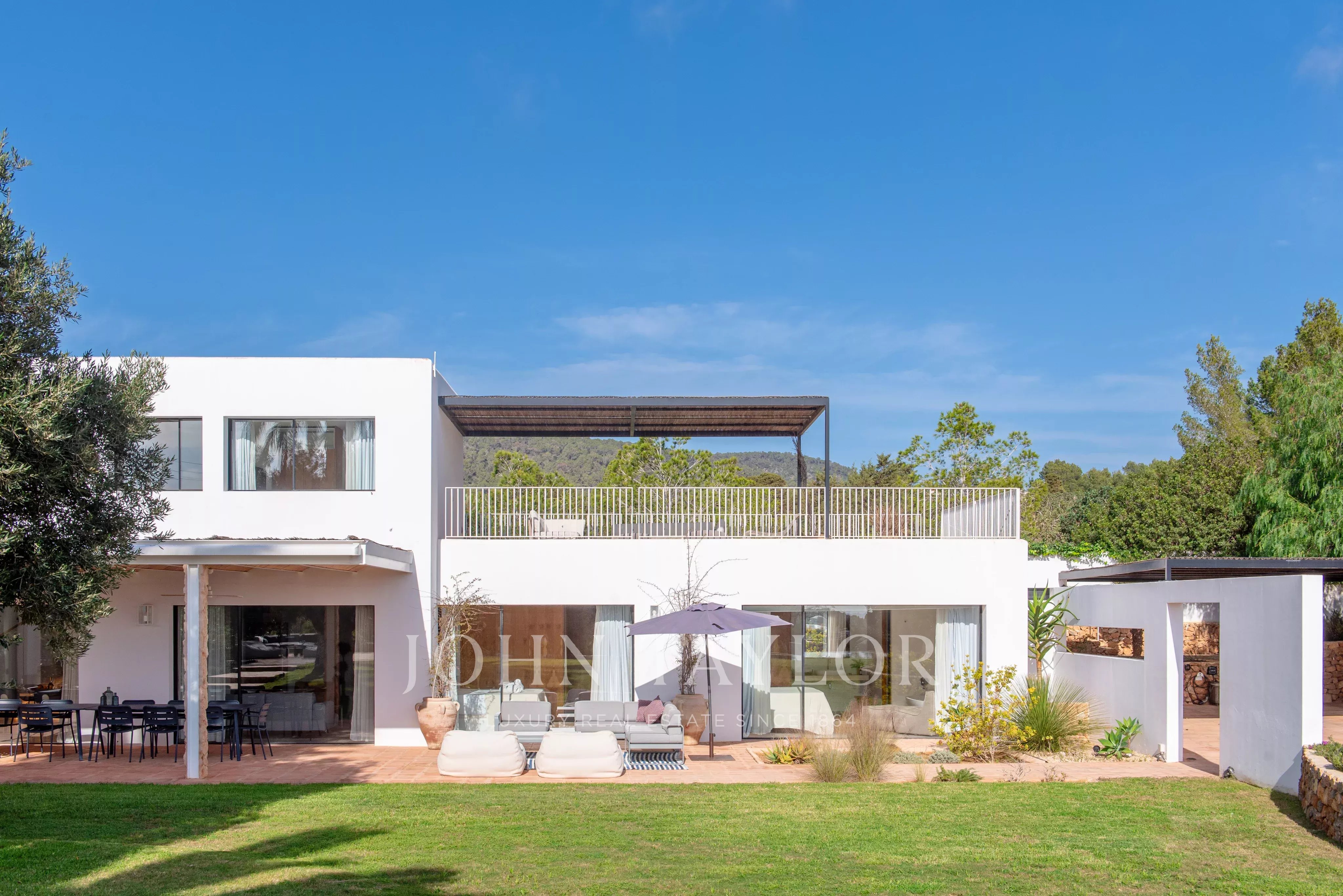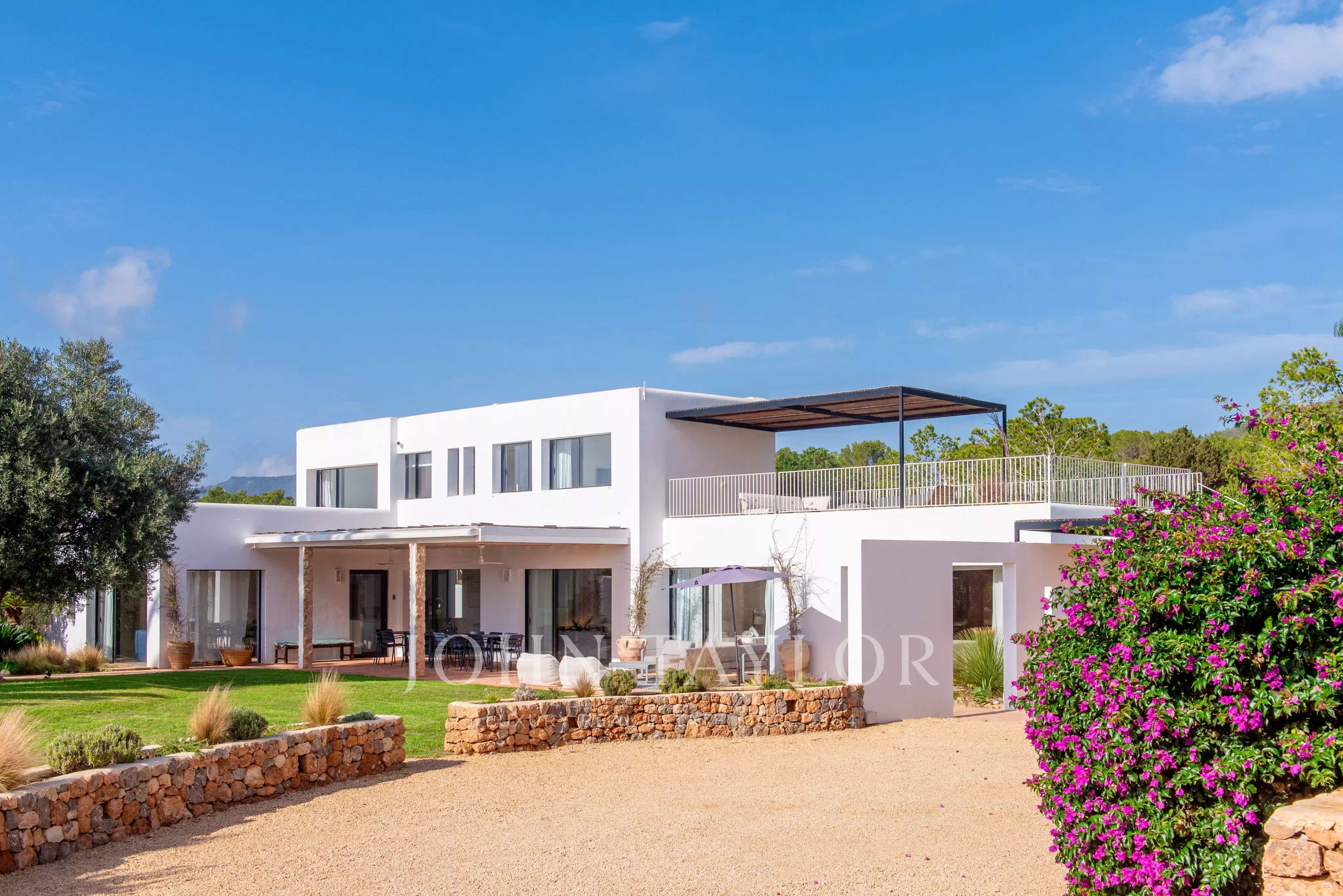 Située à quelques minutes seulement des plages prisées de Sa Caleta et Cala Jondal, cette villa offre un refuge paisible après une journée au soleil ou un après-midi dans les lieux les plus exclusifs de l'île.
